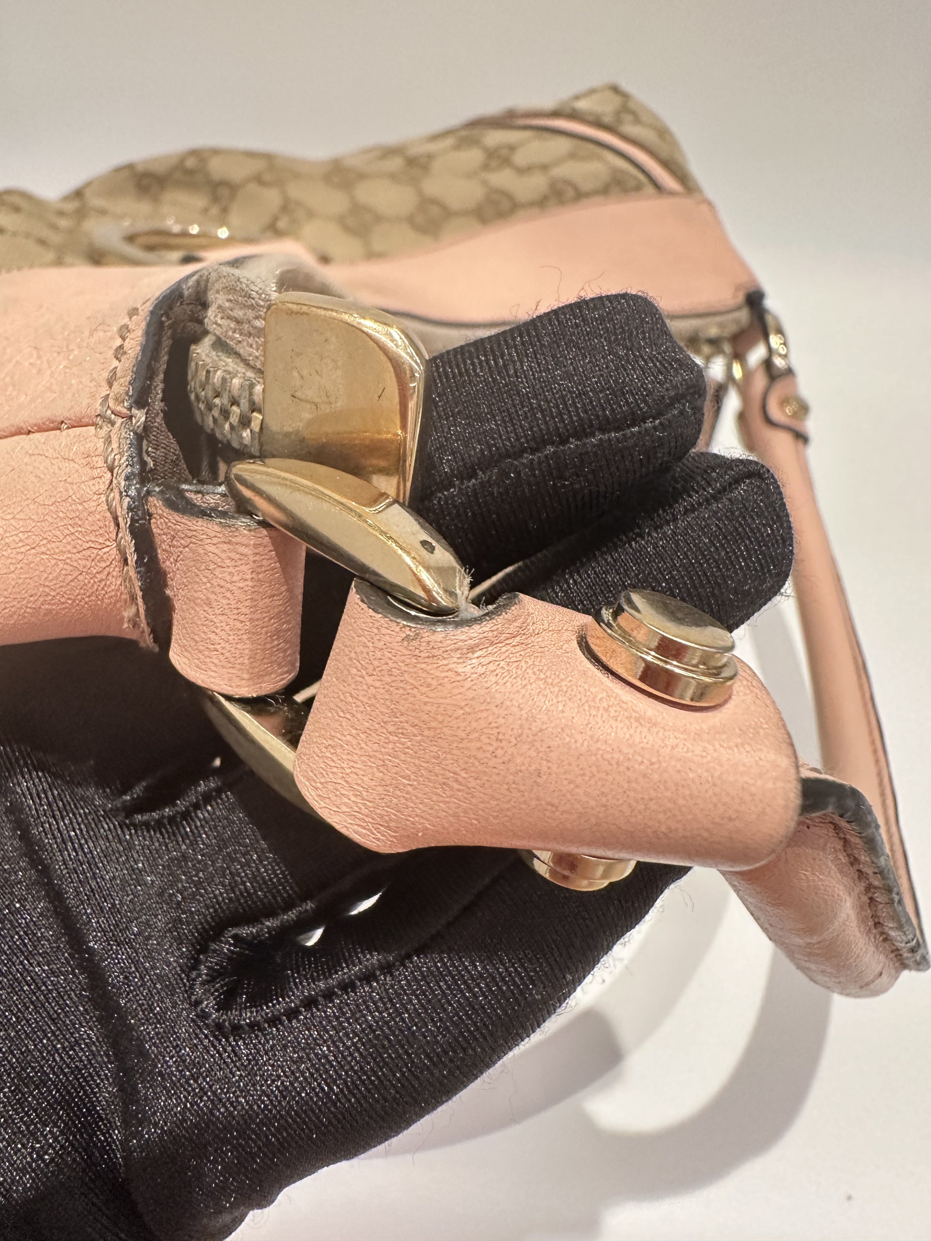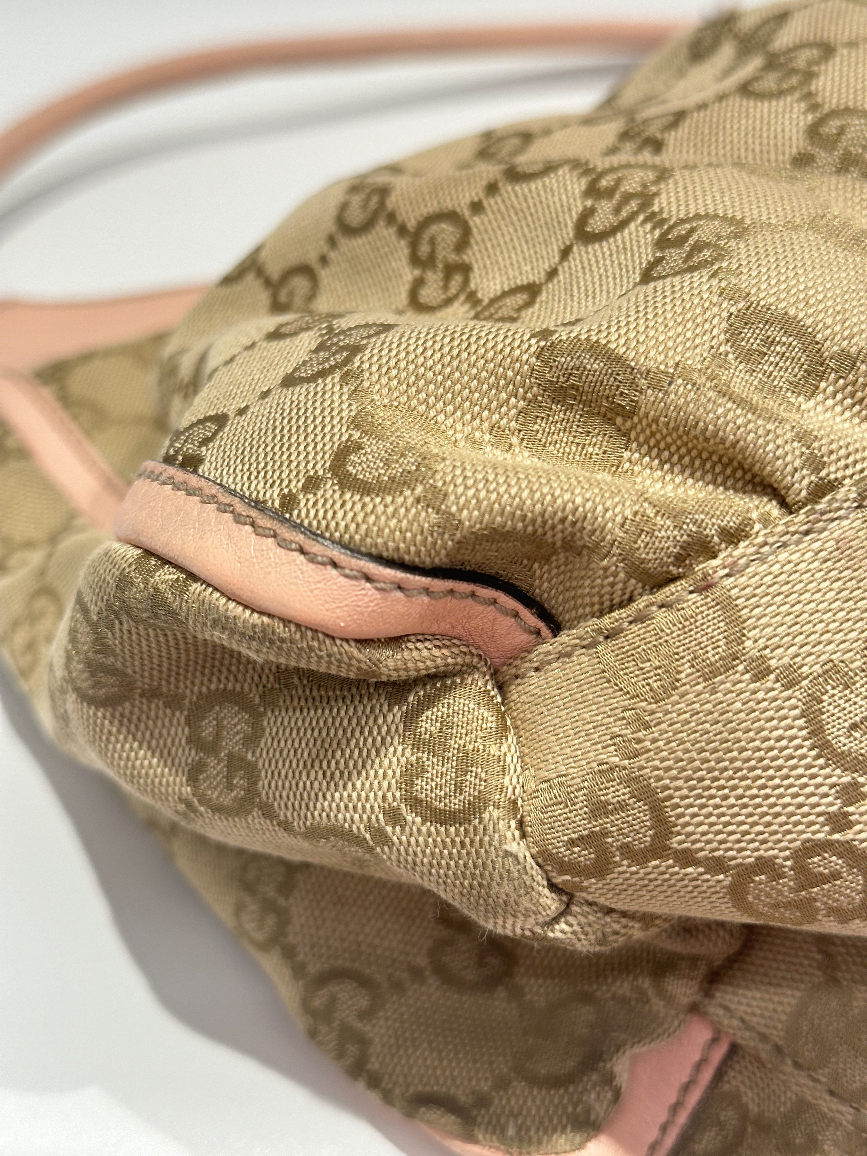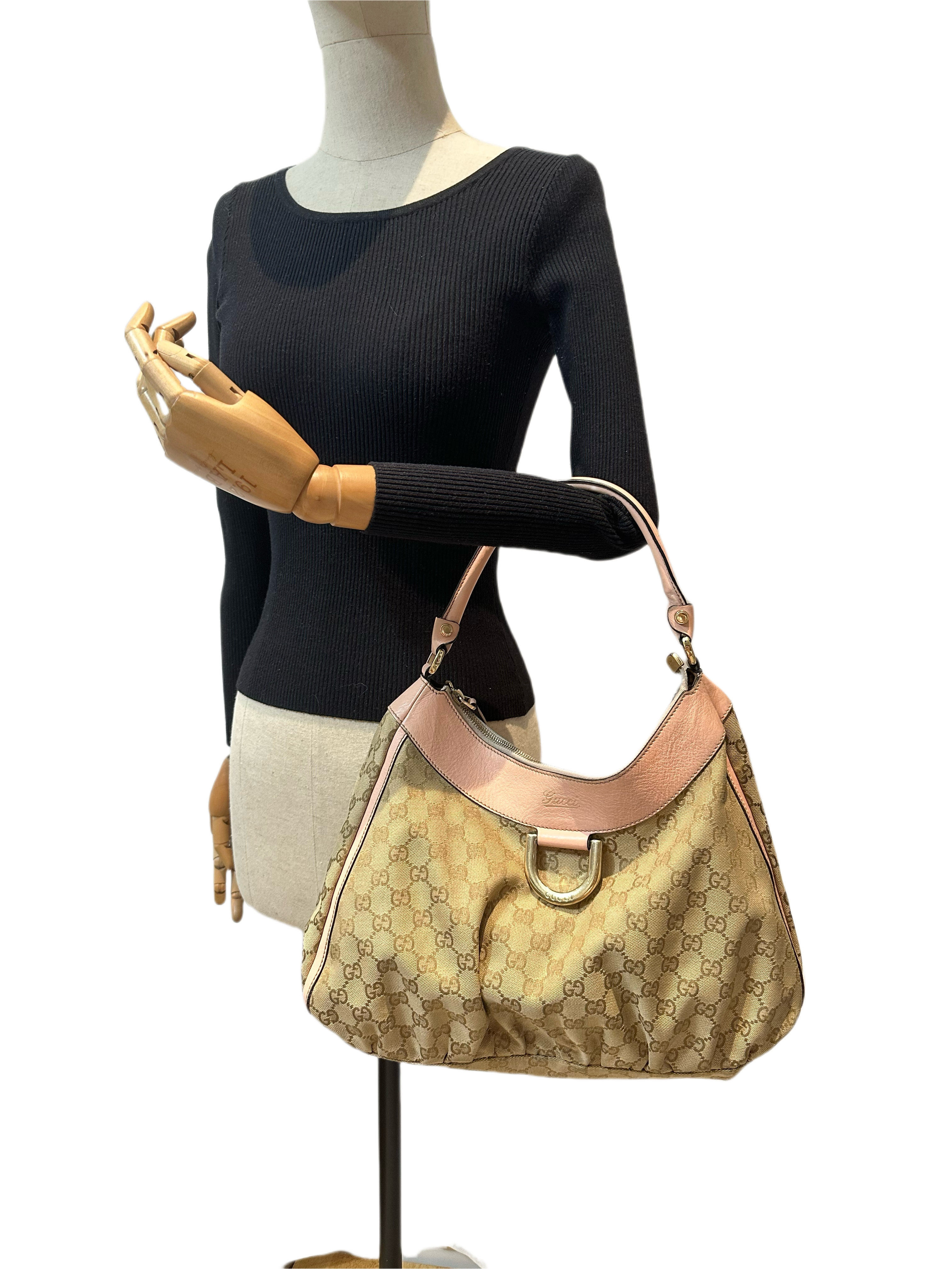 Gucci D-ring pink brown GG canvas shoulder bag