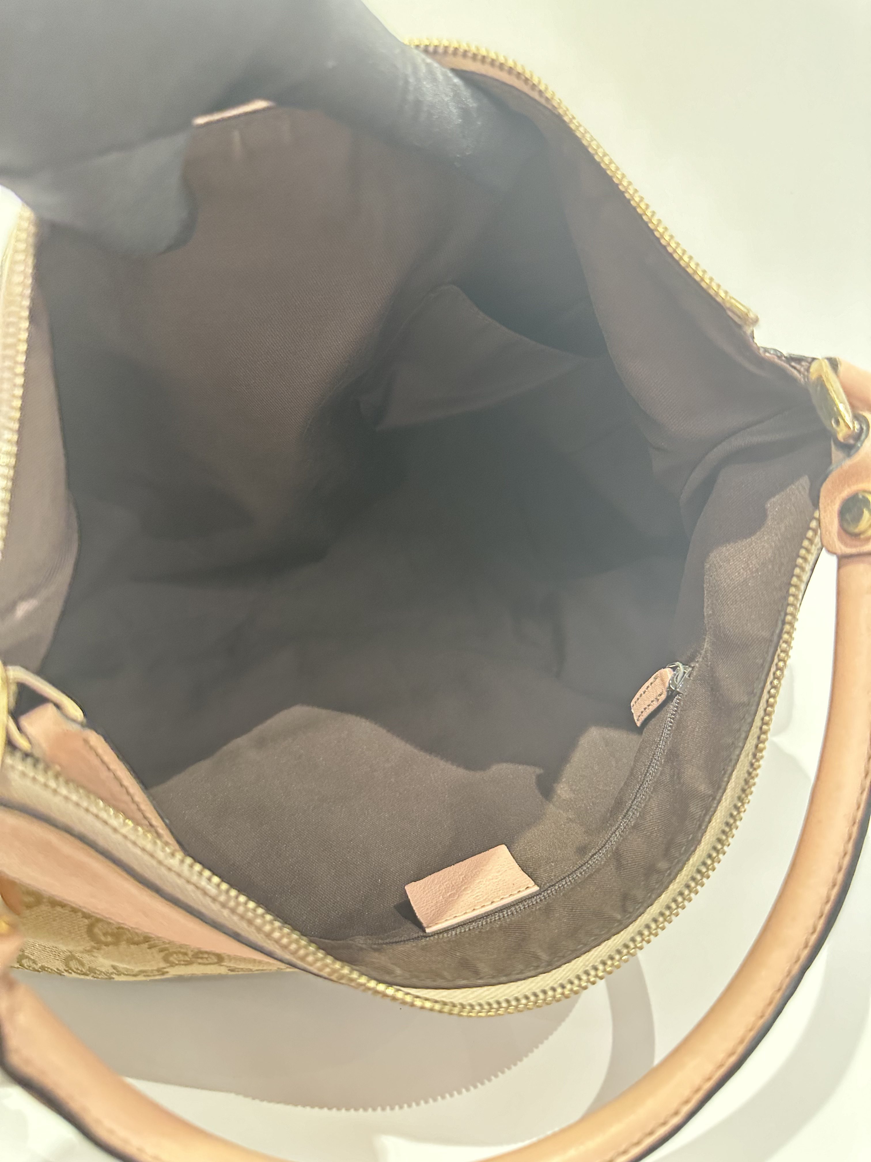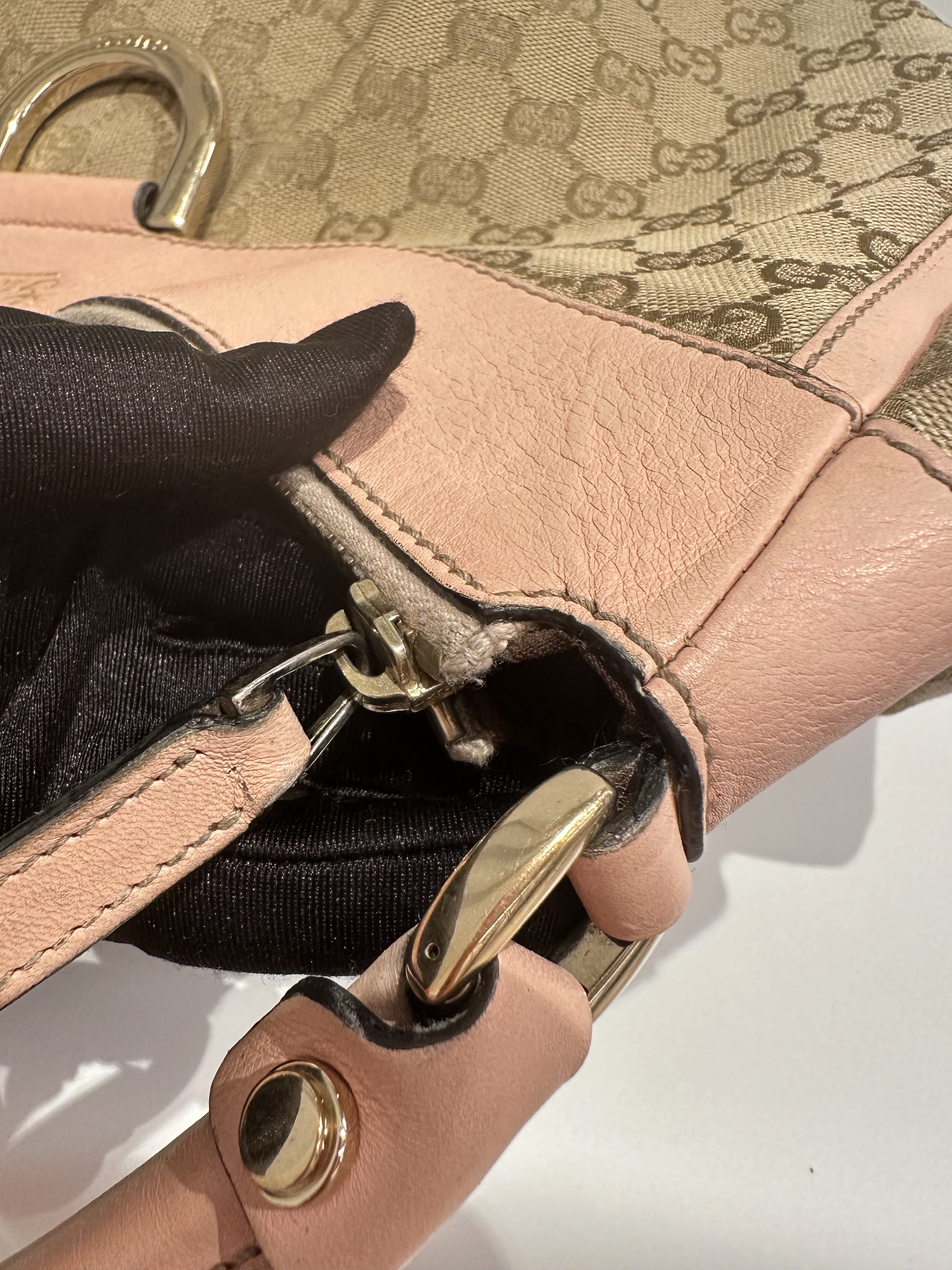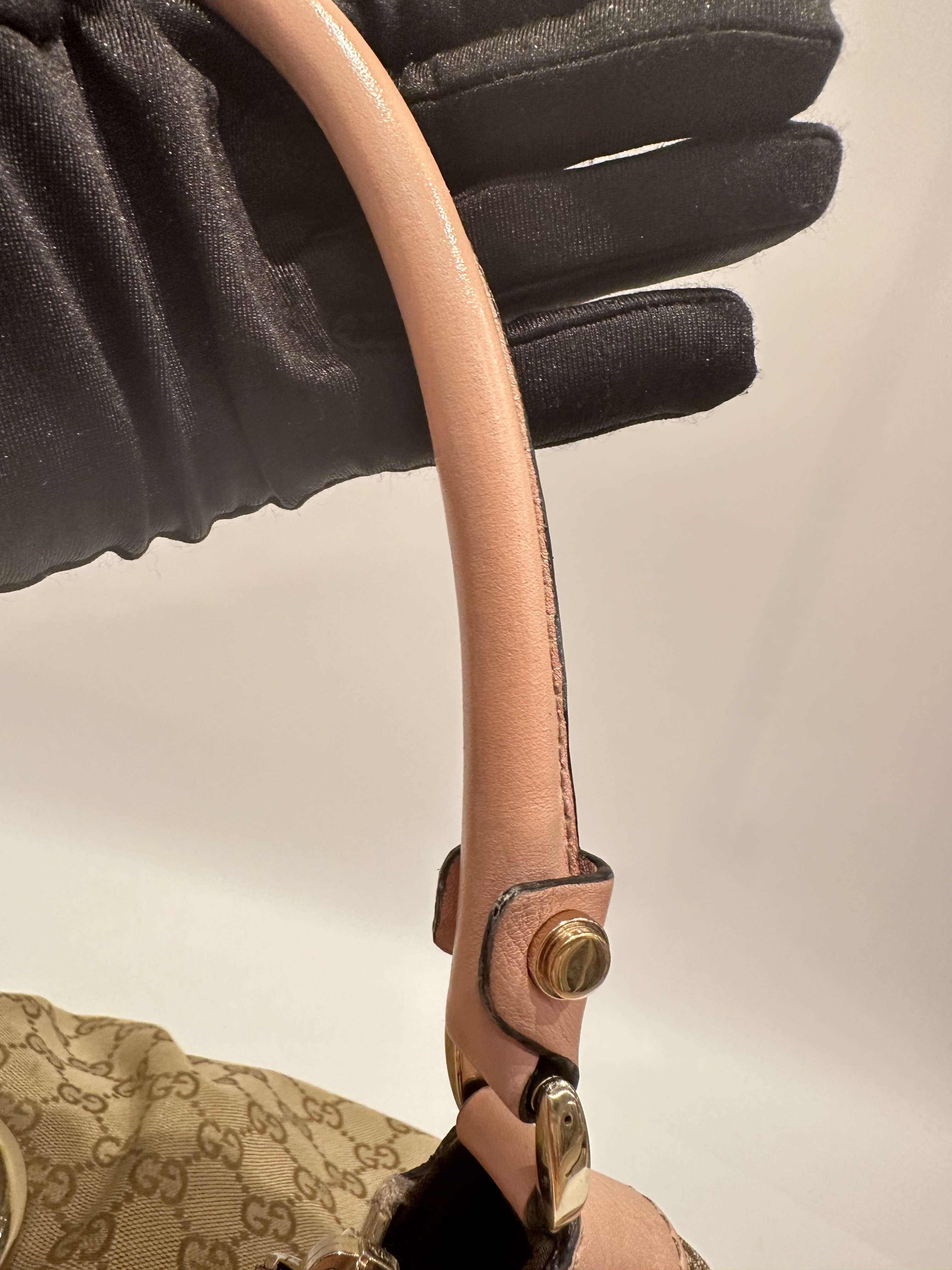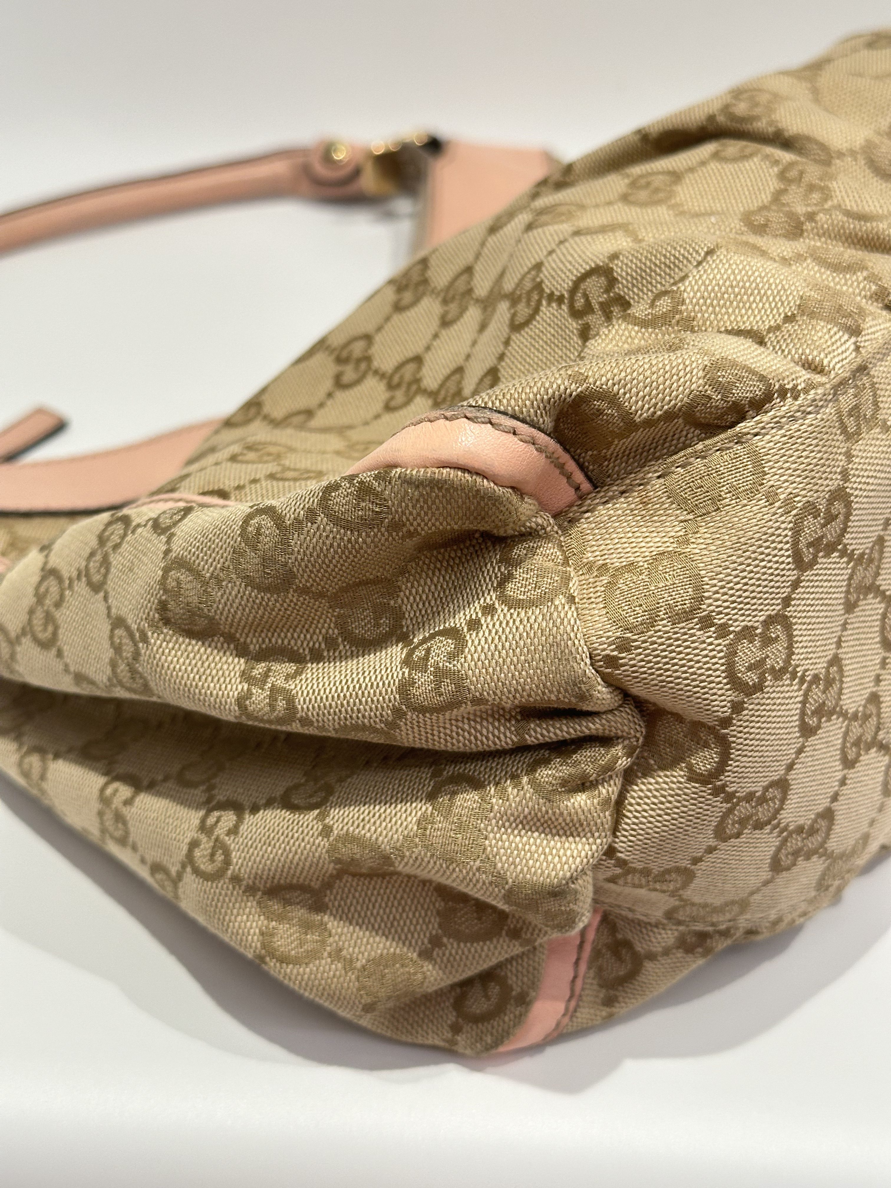 Gucci D-ring pink brown GG canvas shoulder bag