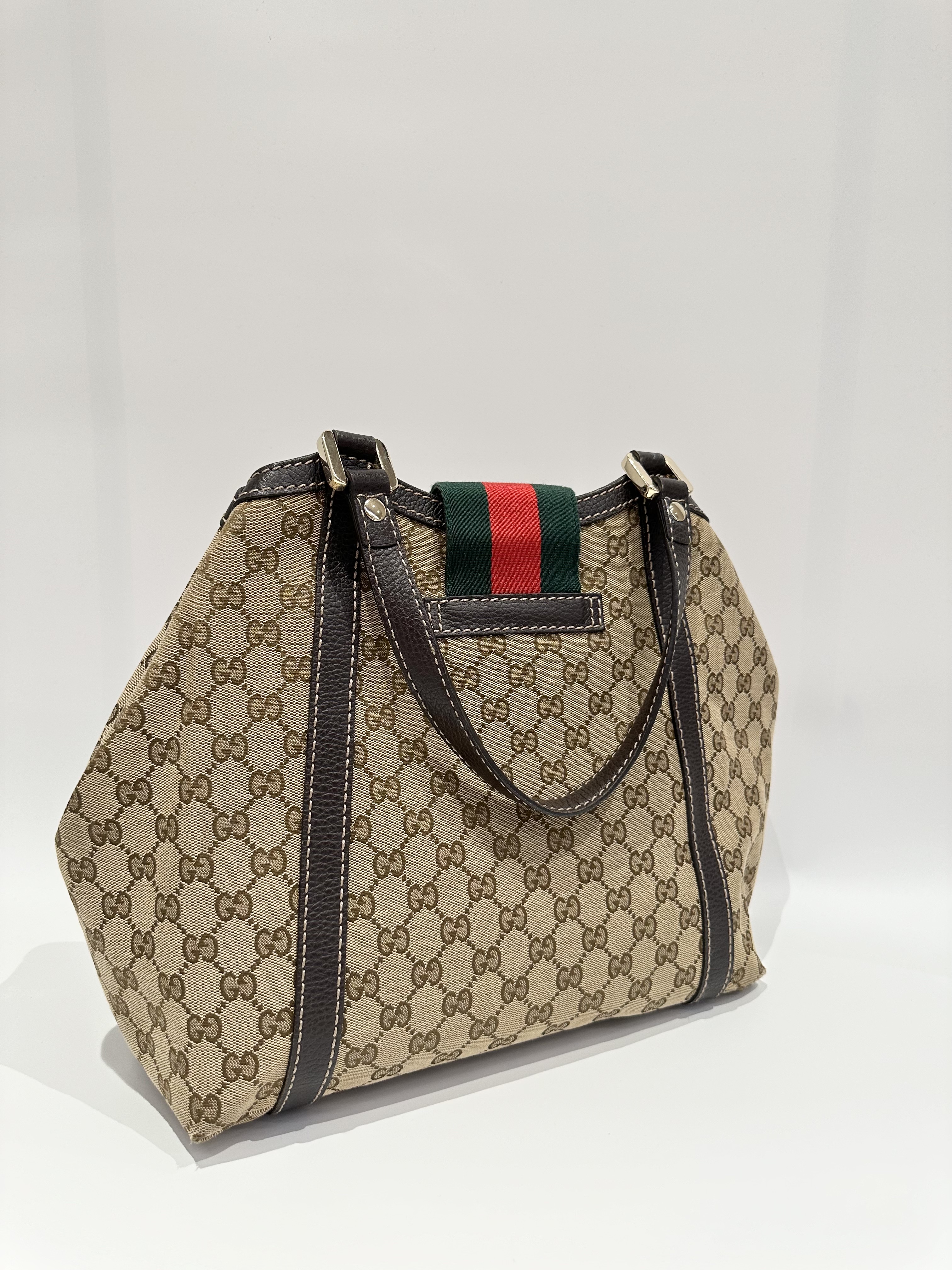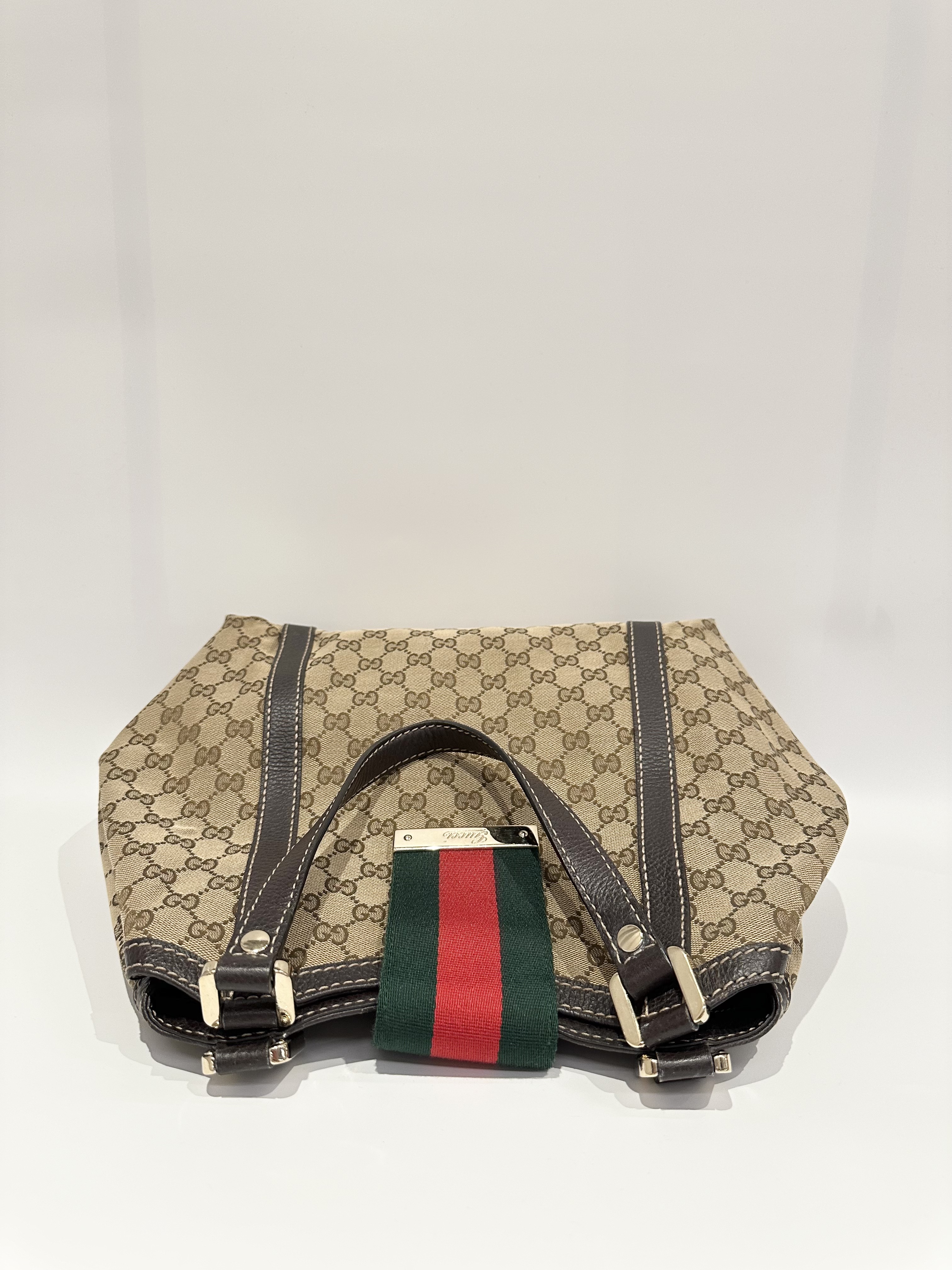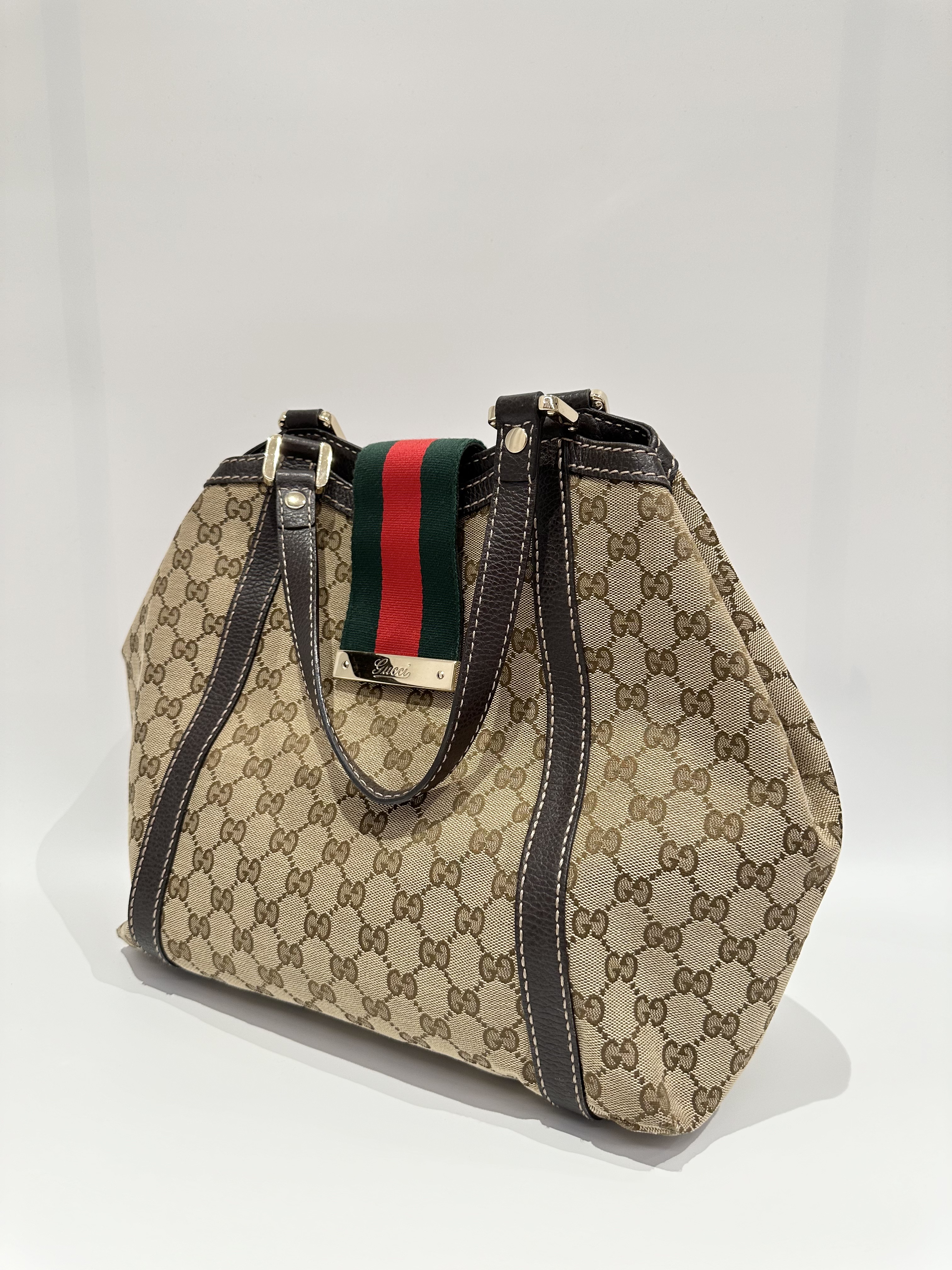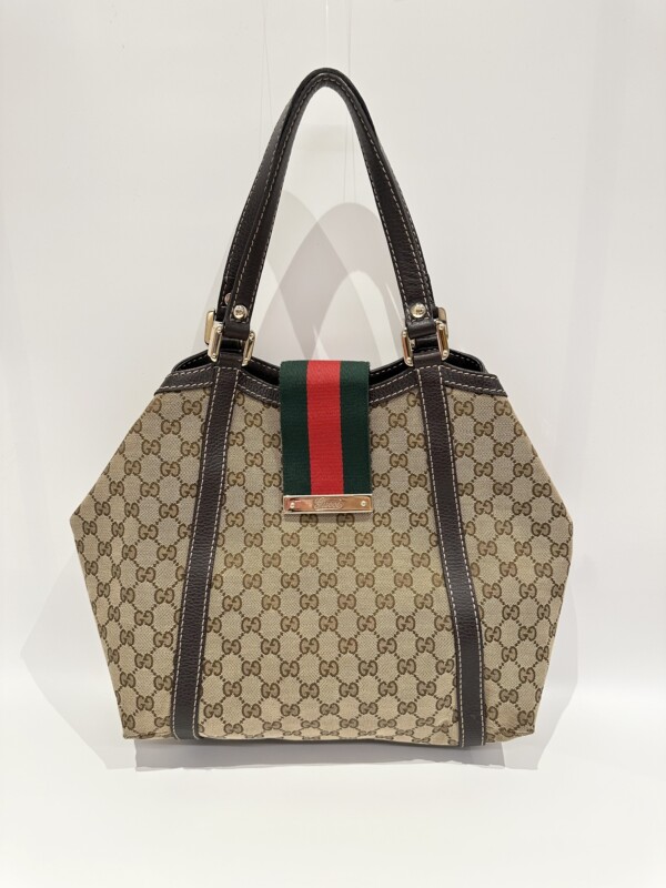 Gucci GG Canvas Ladies Web Beige Brown Tote Bag