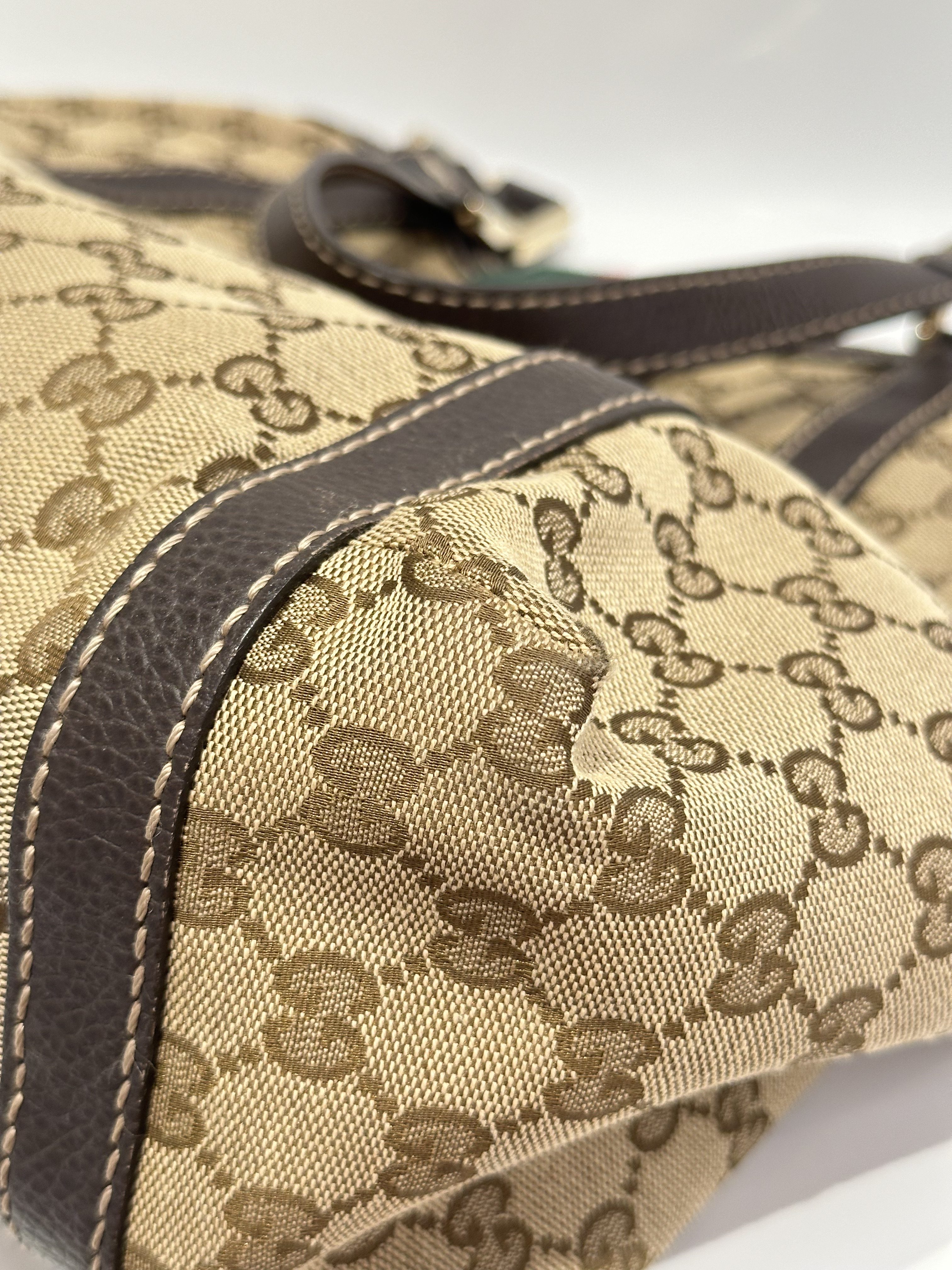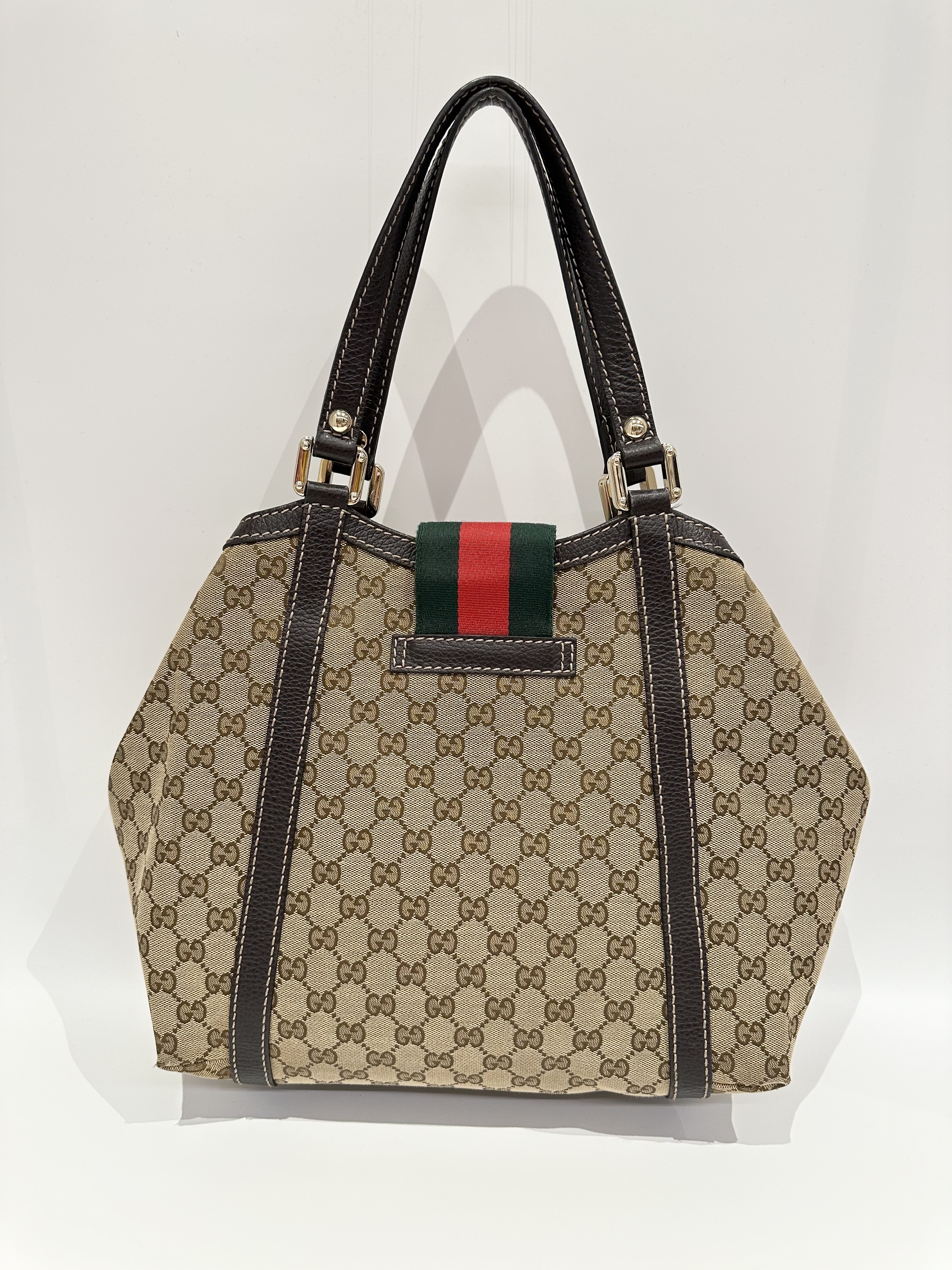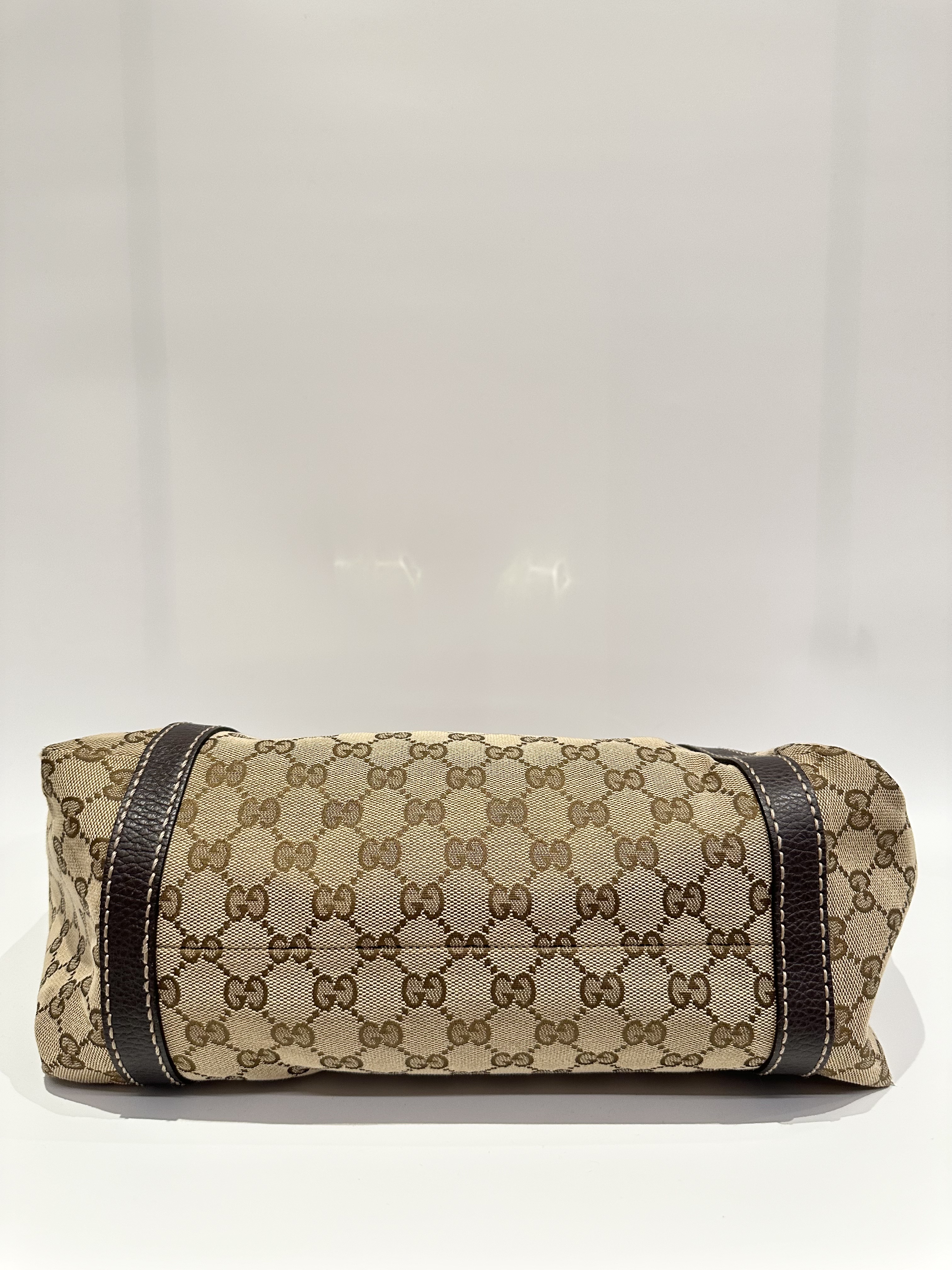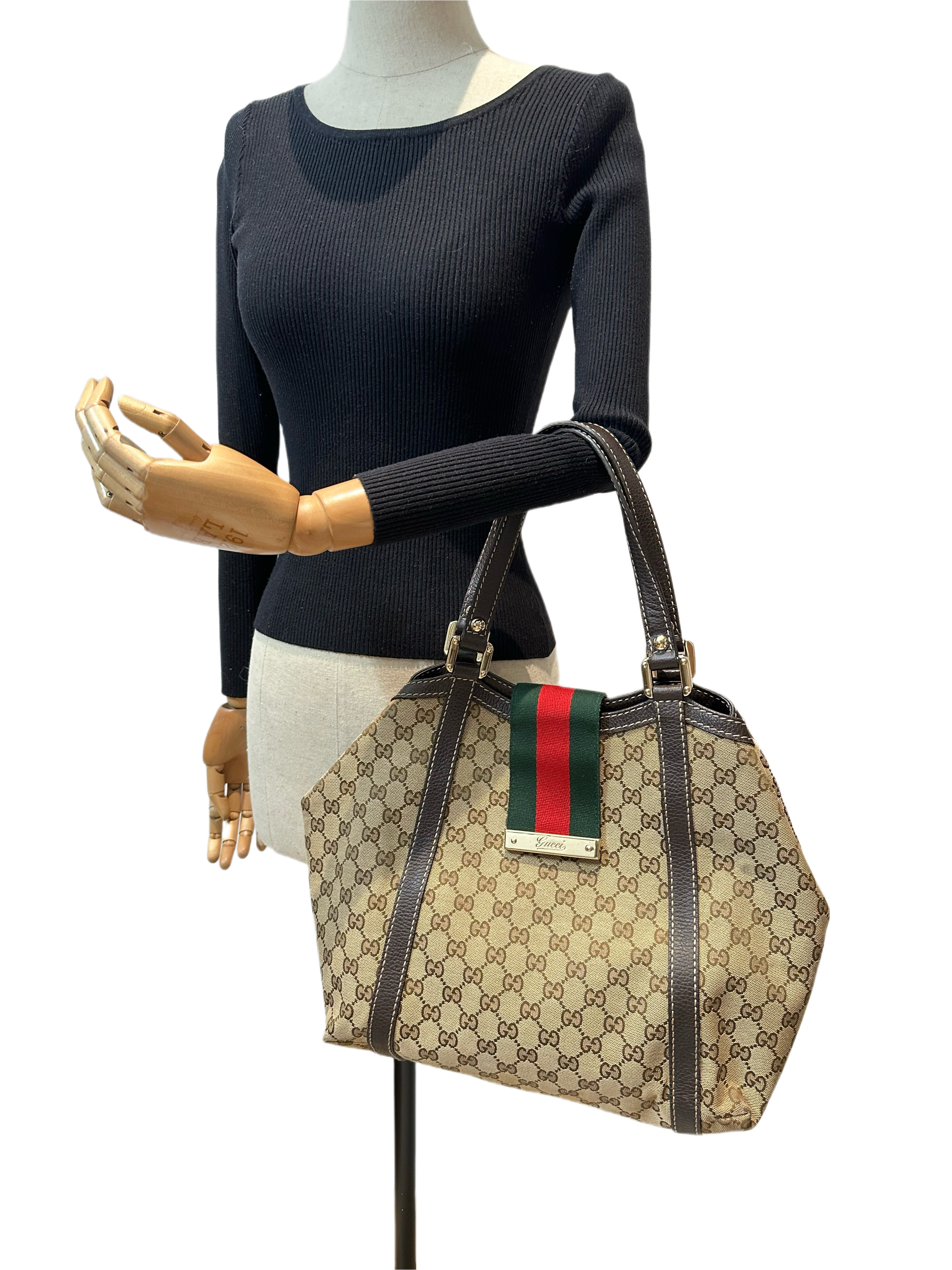 Gucci GG Canvas Ladies Web Beige Brown Tote Bag