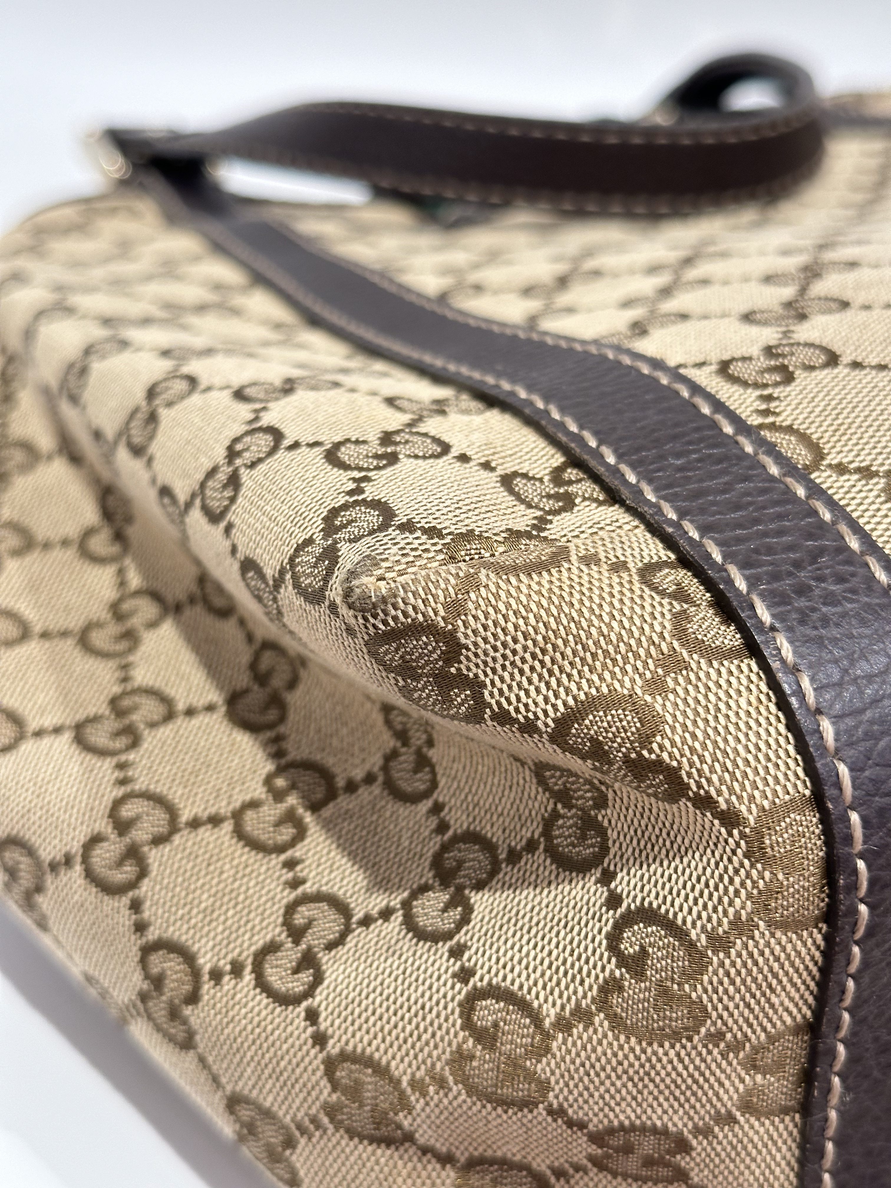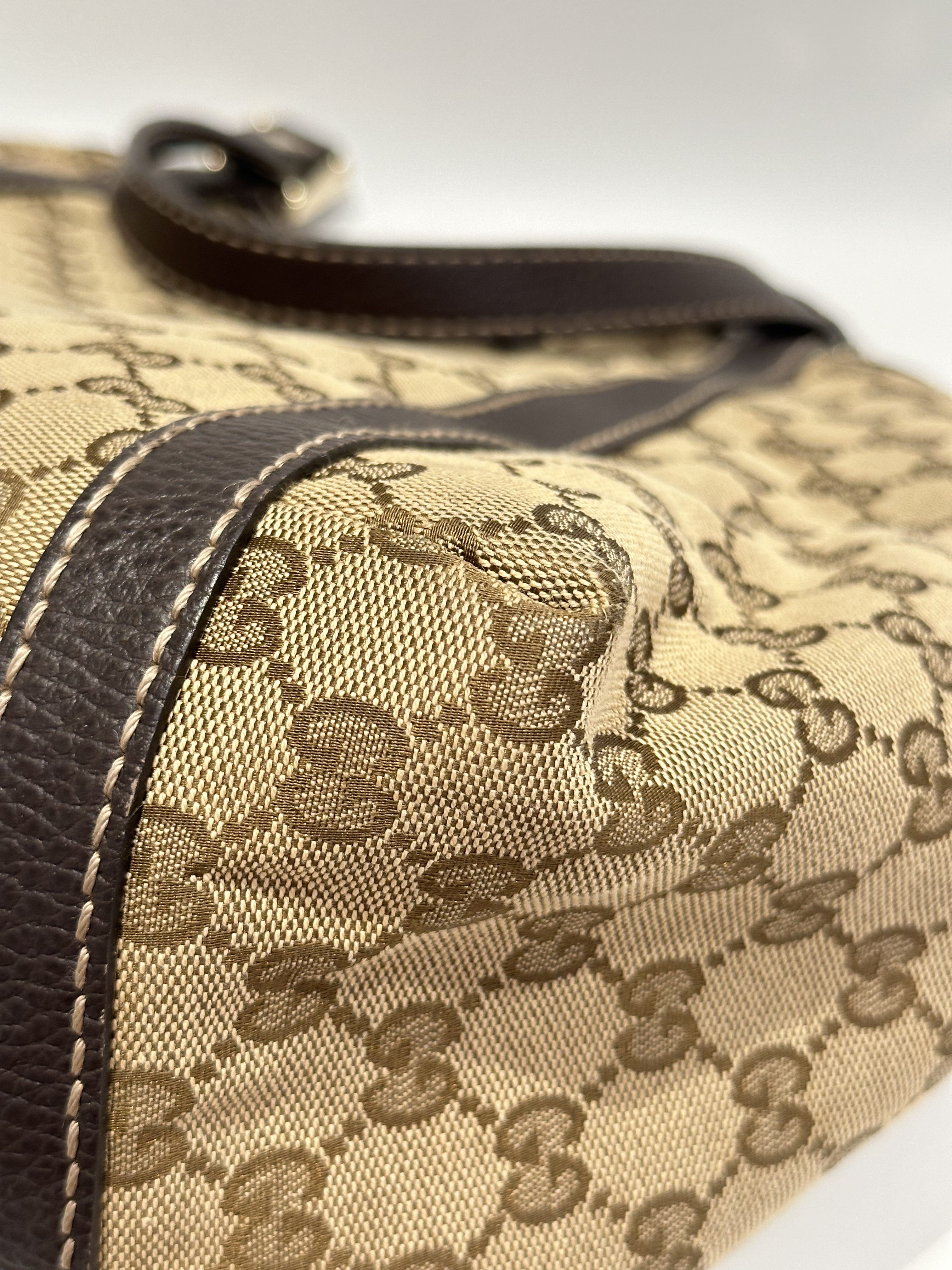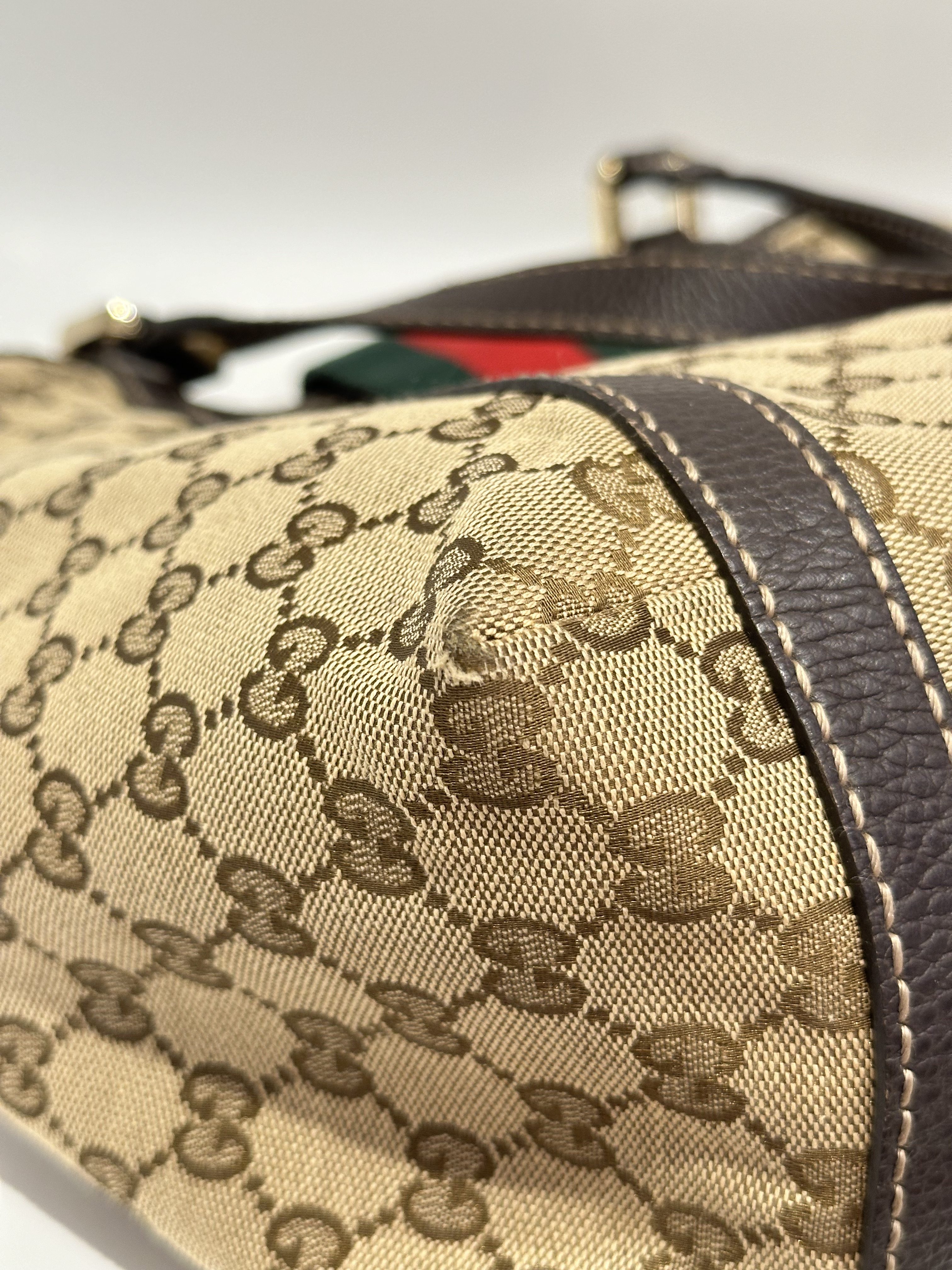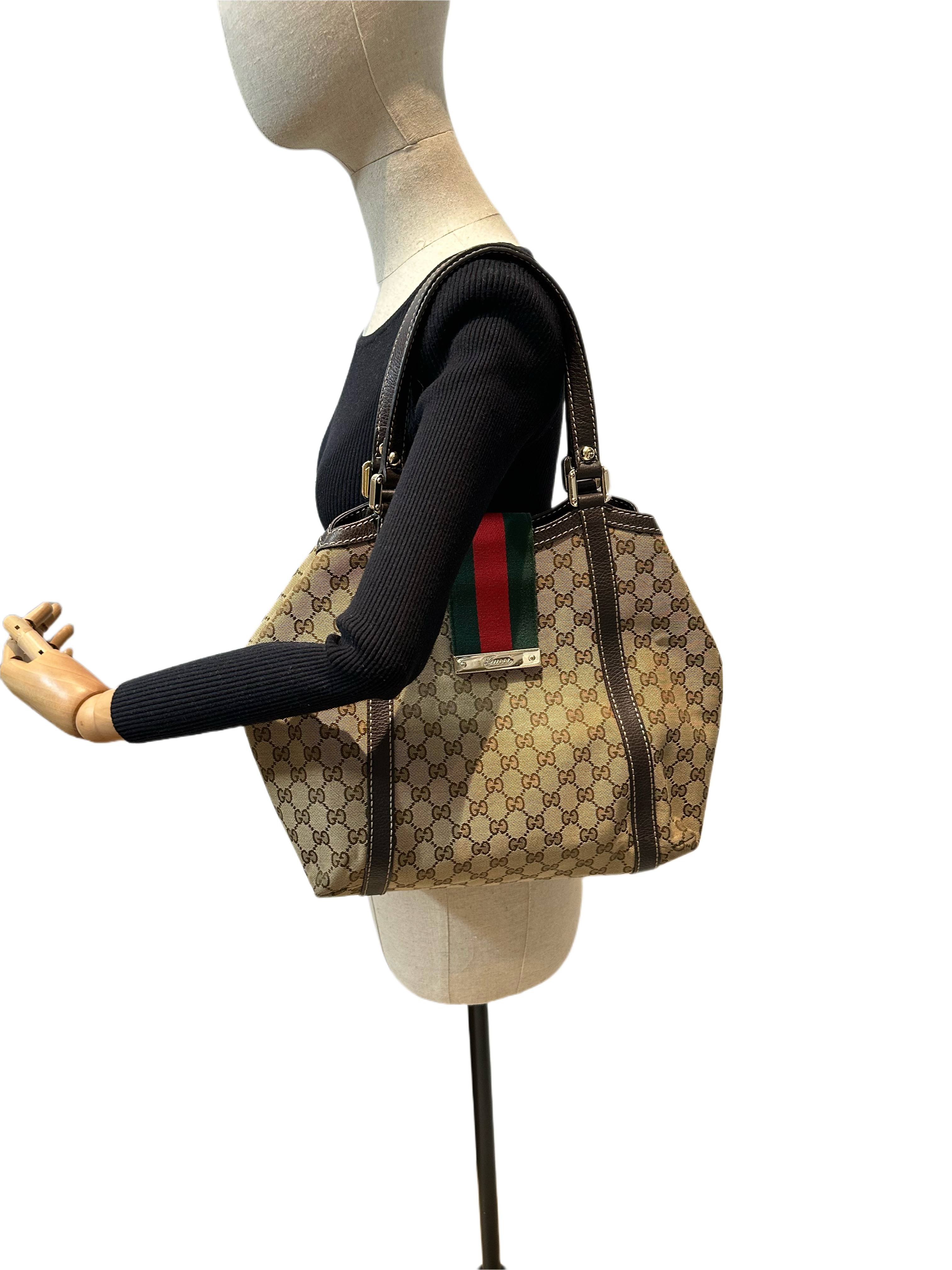 Gucci GG Canvas Ladies Web Beige Brown Tote Bag