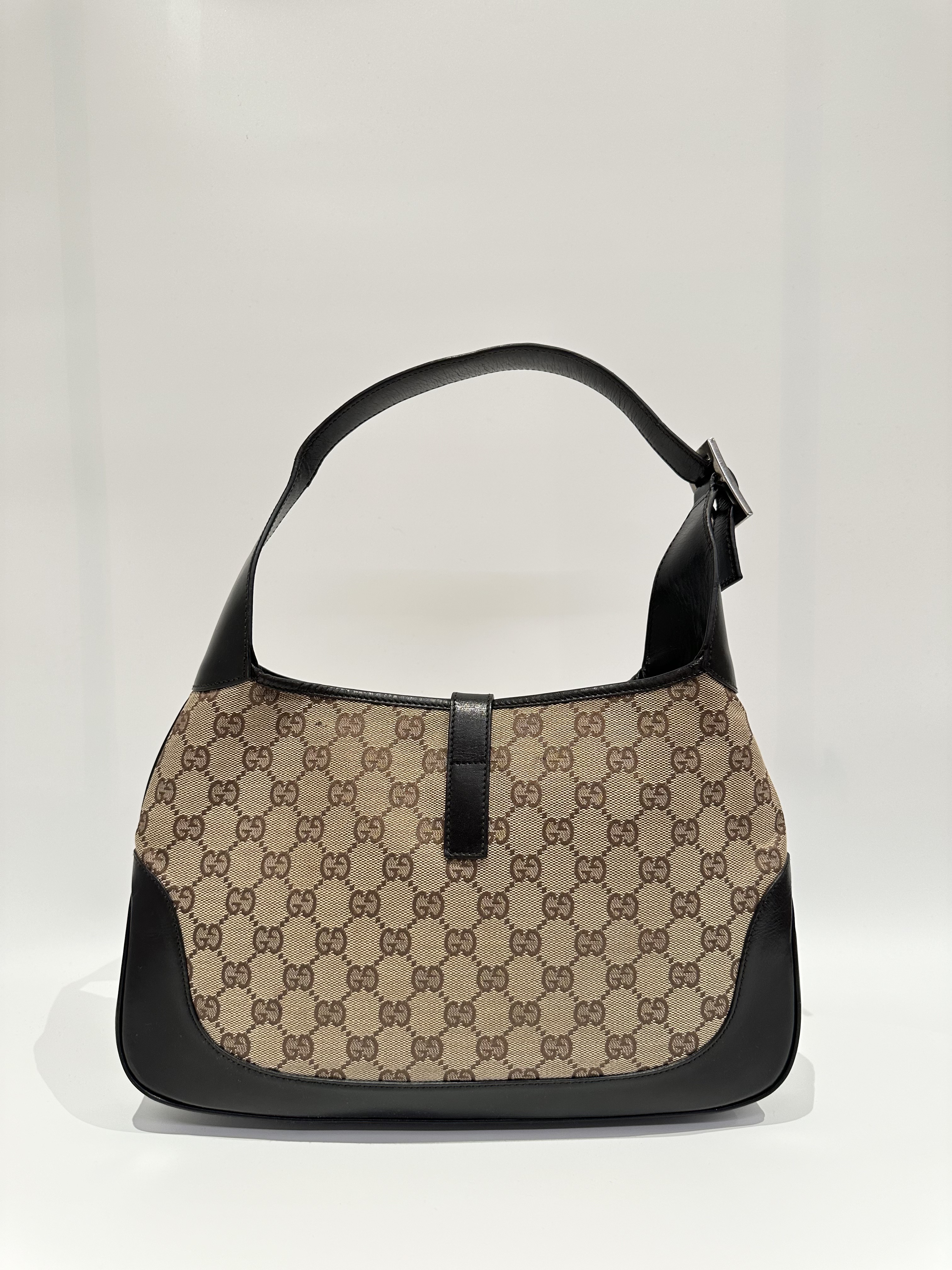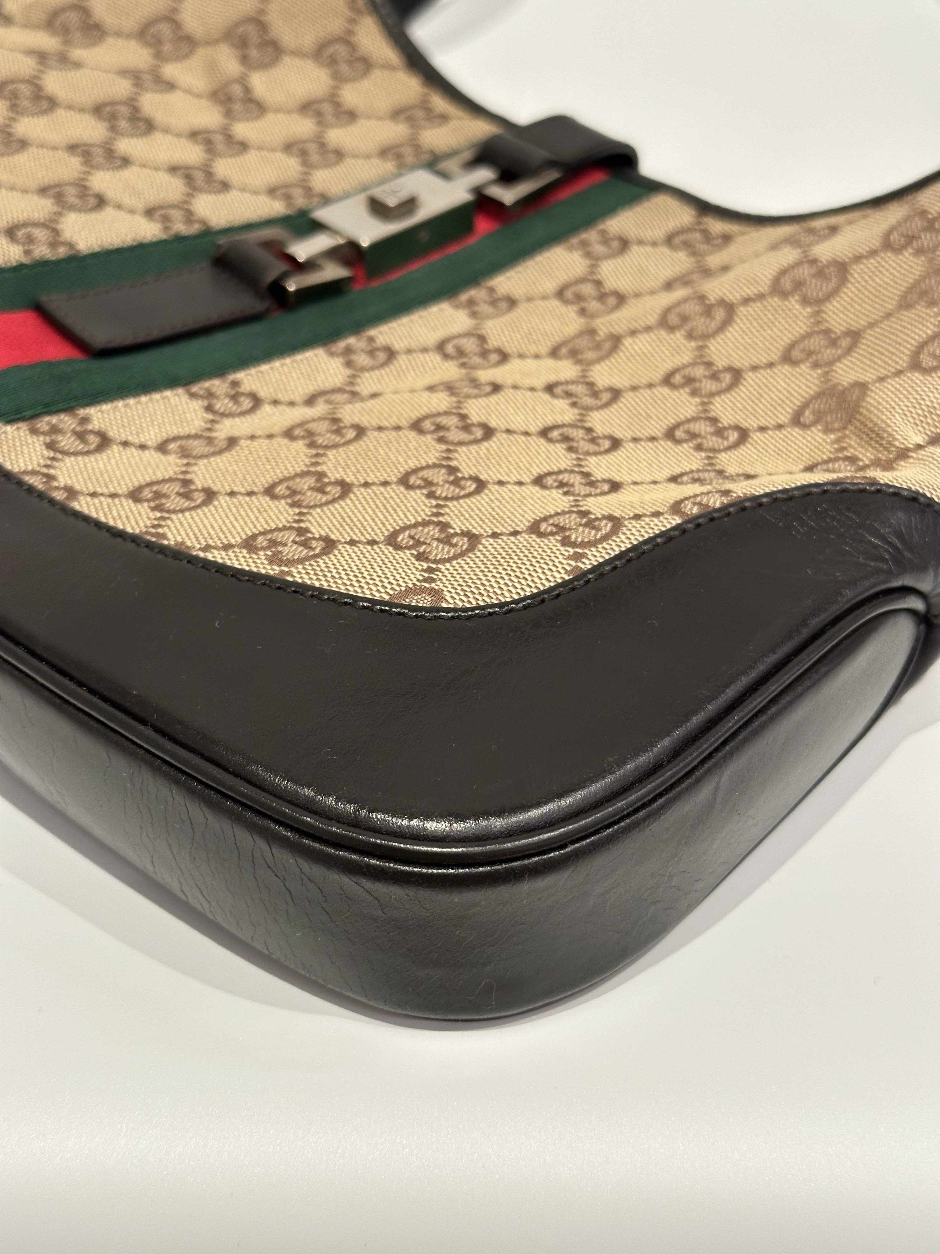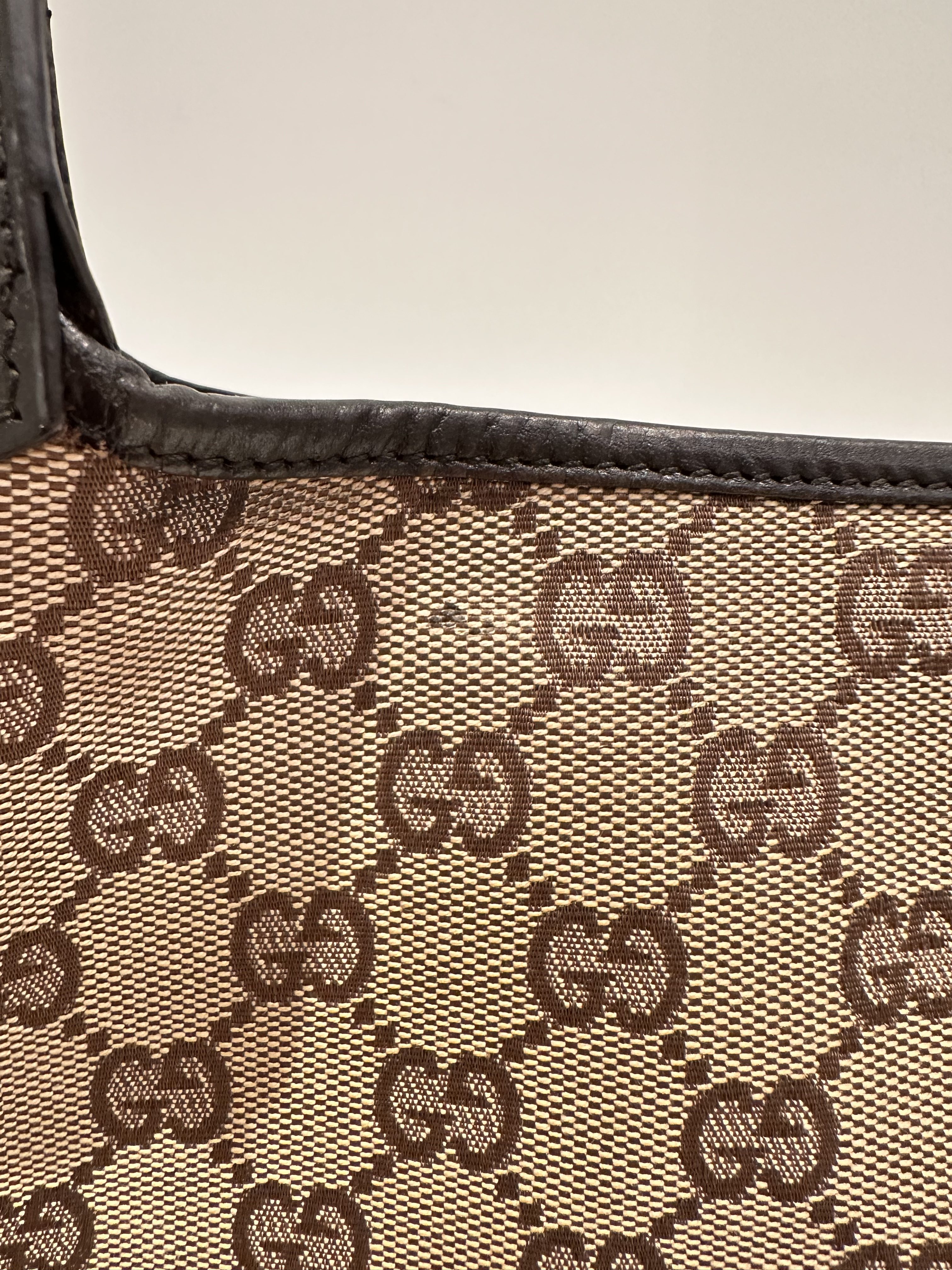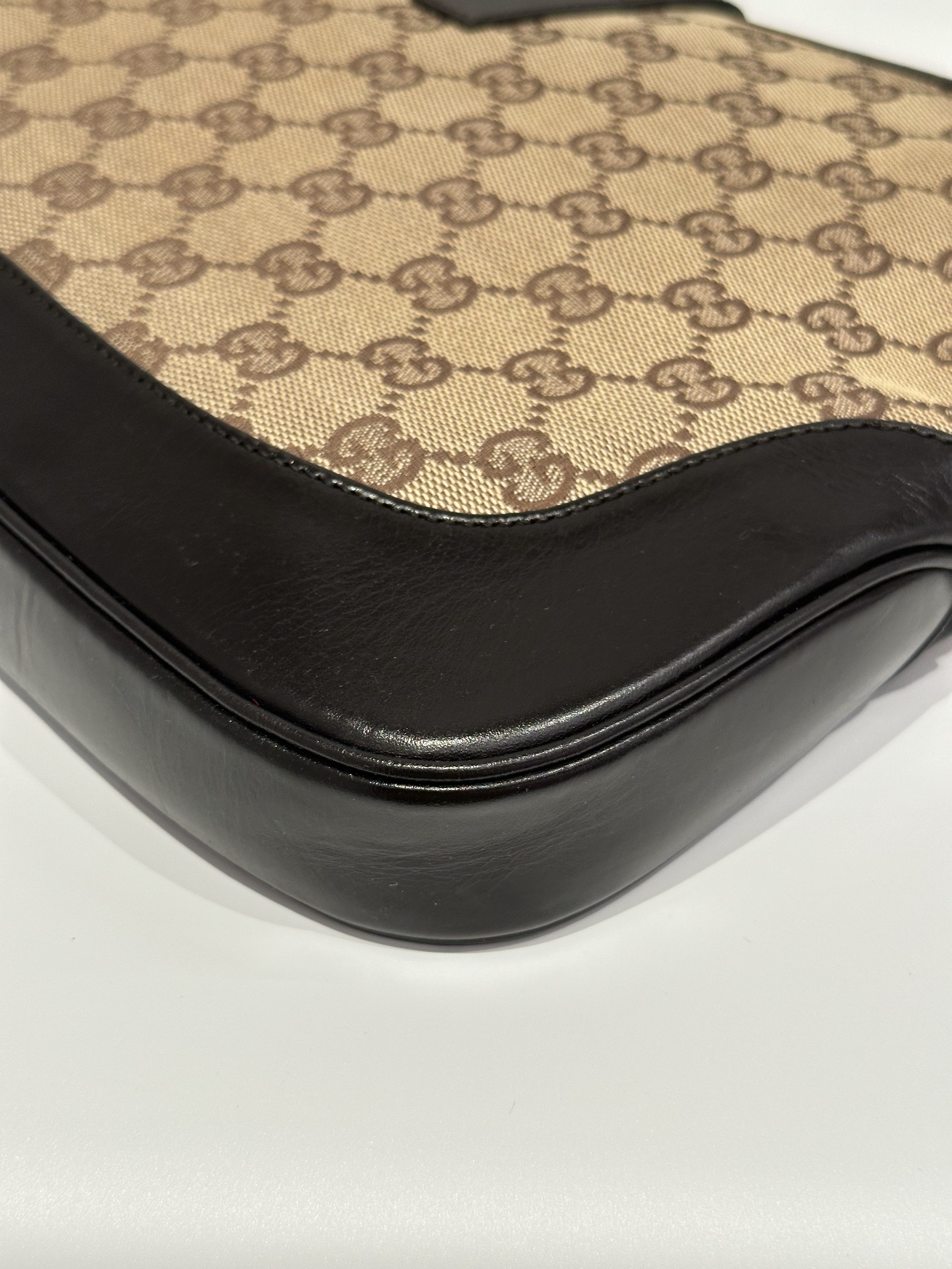 GUCCI Vintage Jackie GG Canvas Leather Shoulder Bag Beige Brown