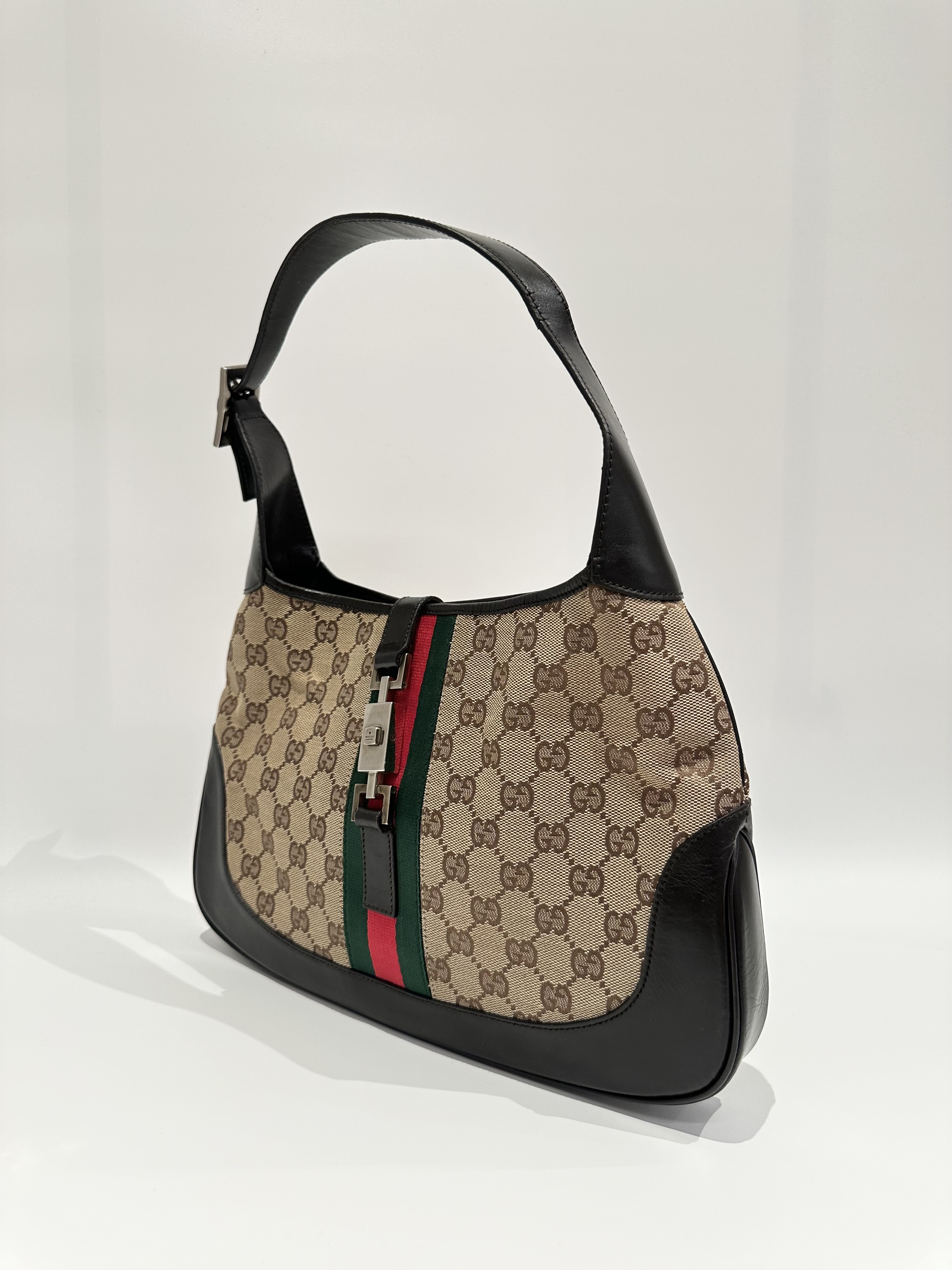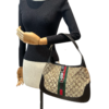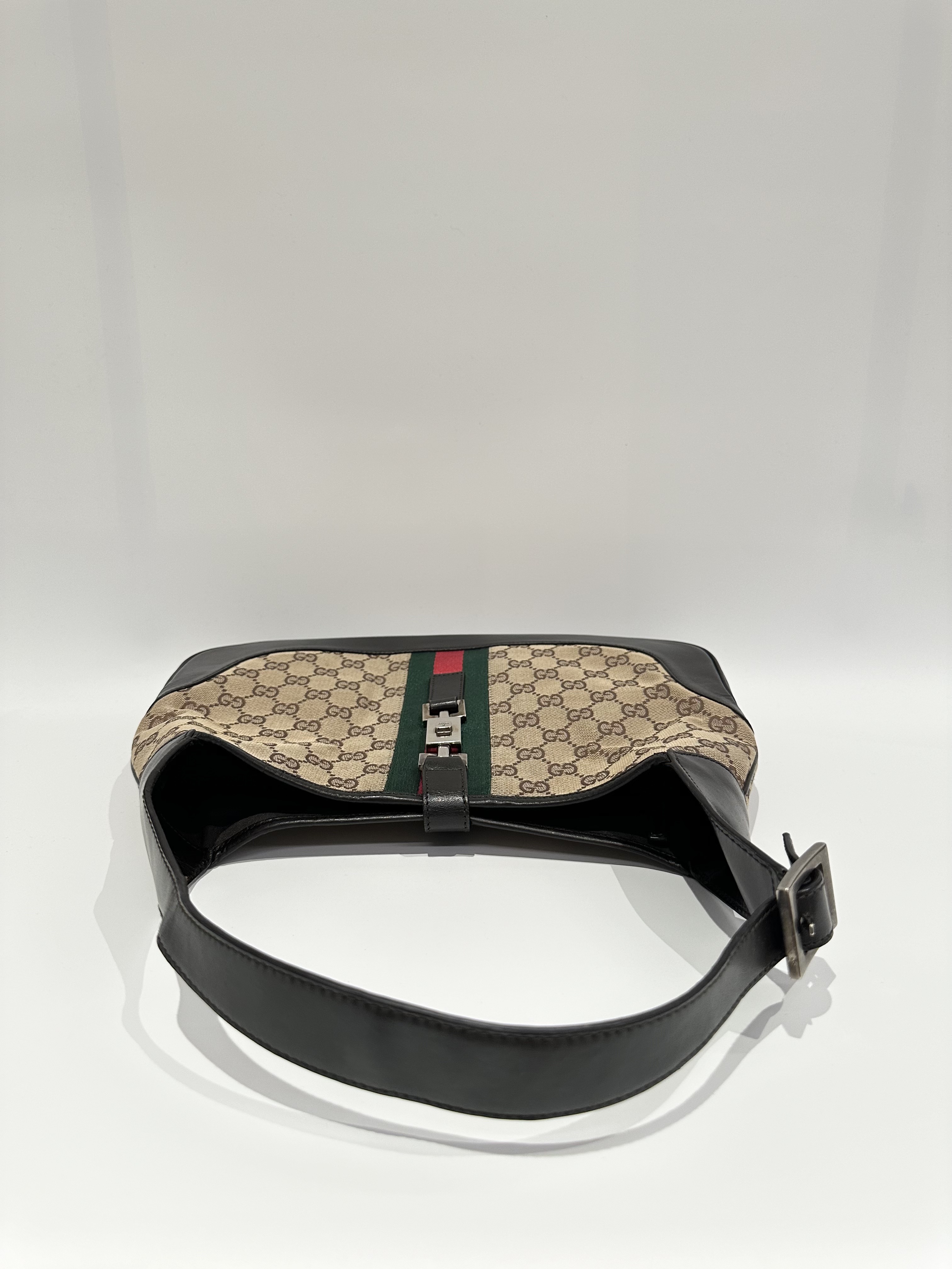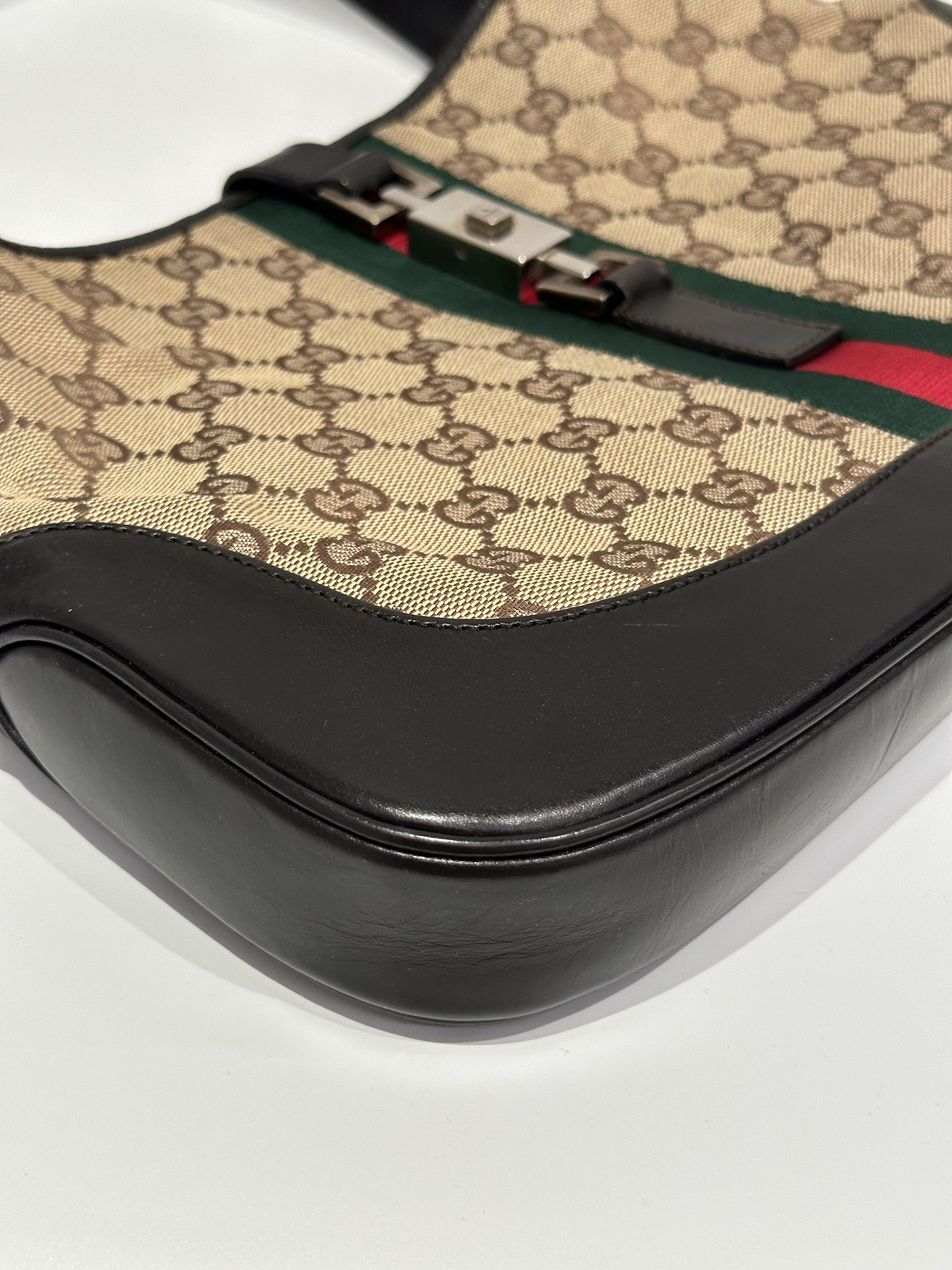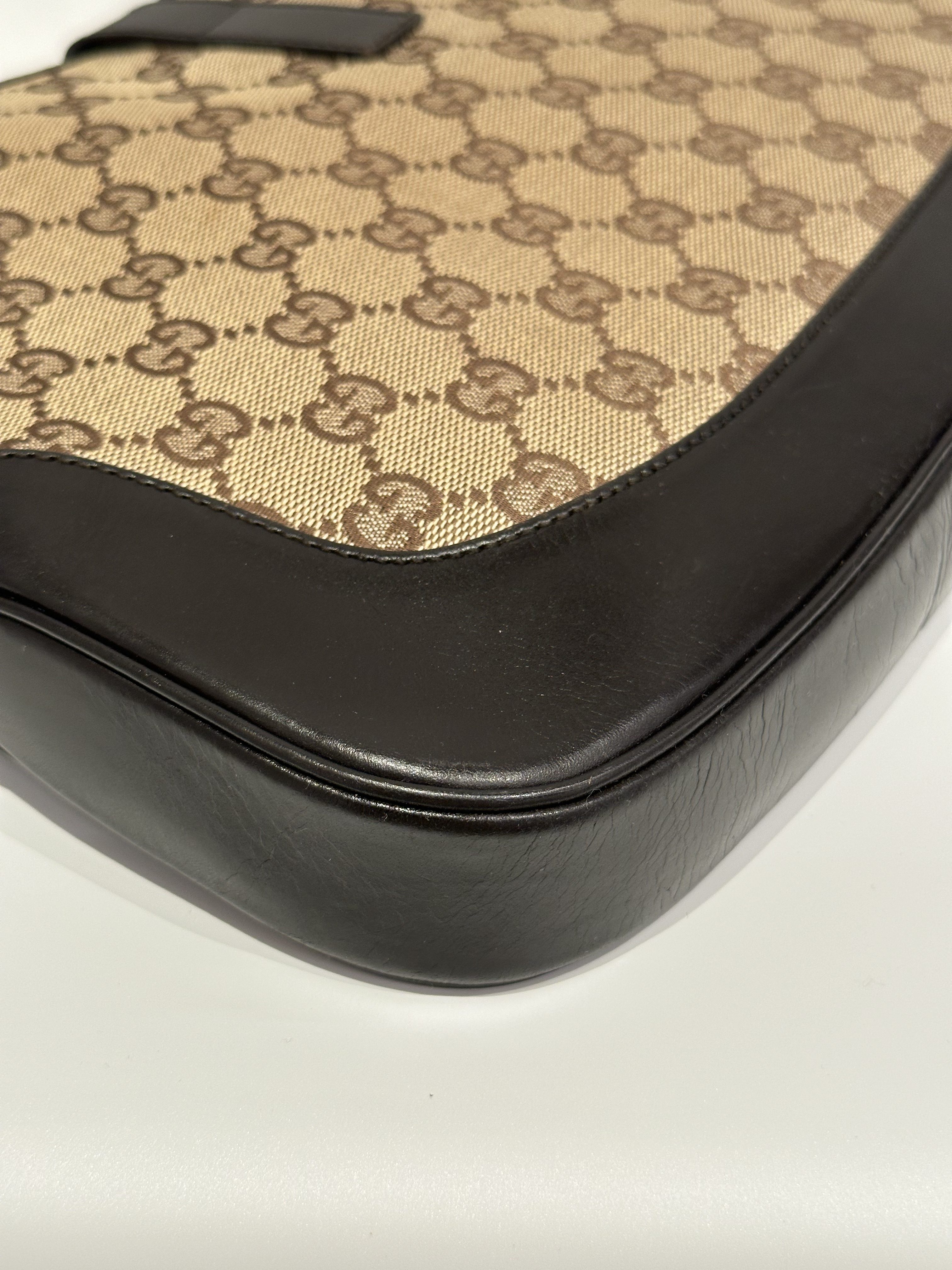 GUCCI Vintage Jackie GG Canvas Leather Shoulder Bag Beige Brown