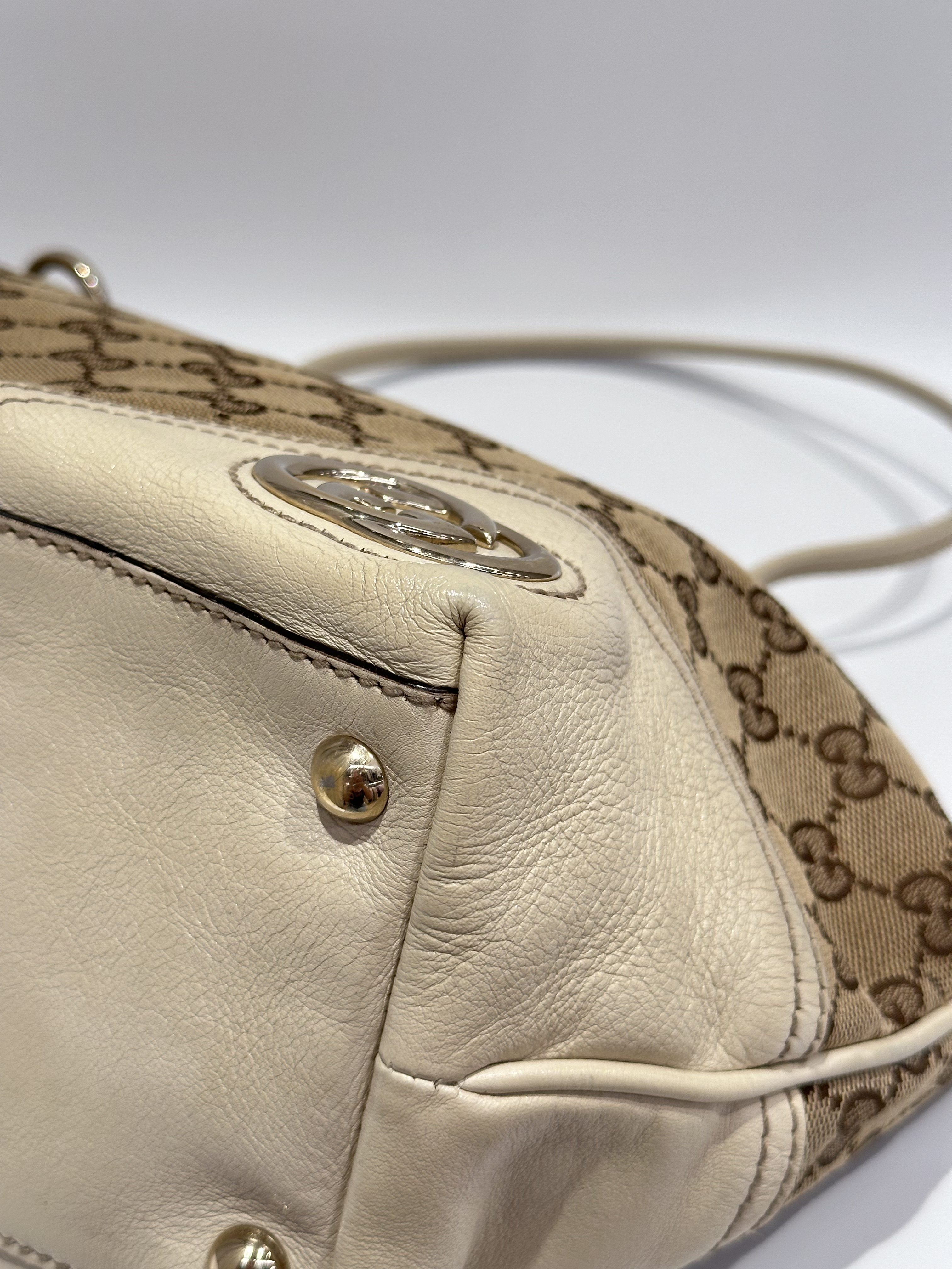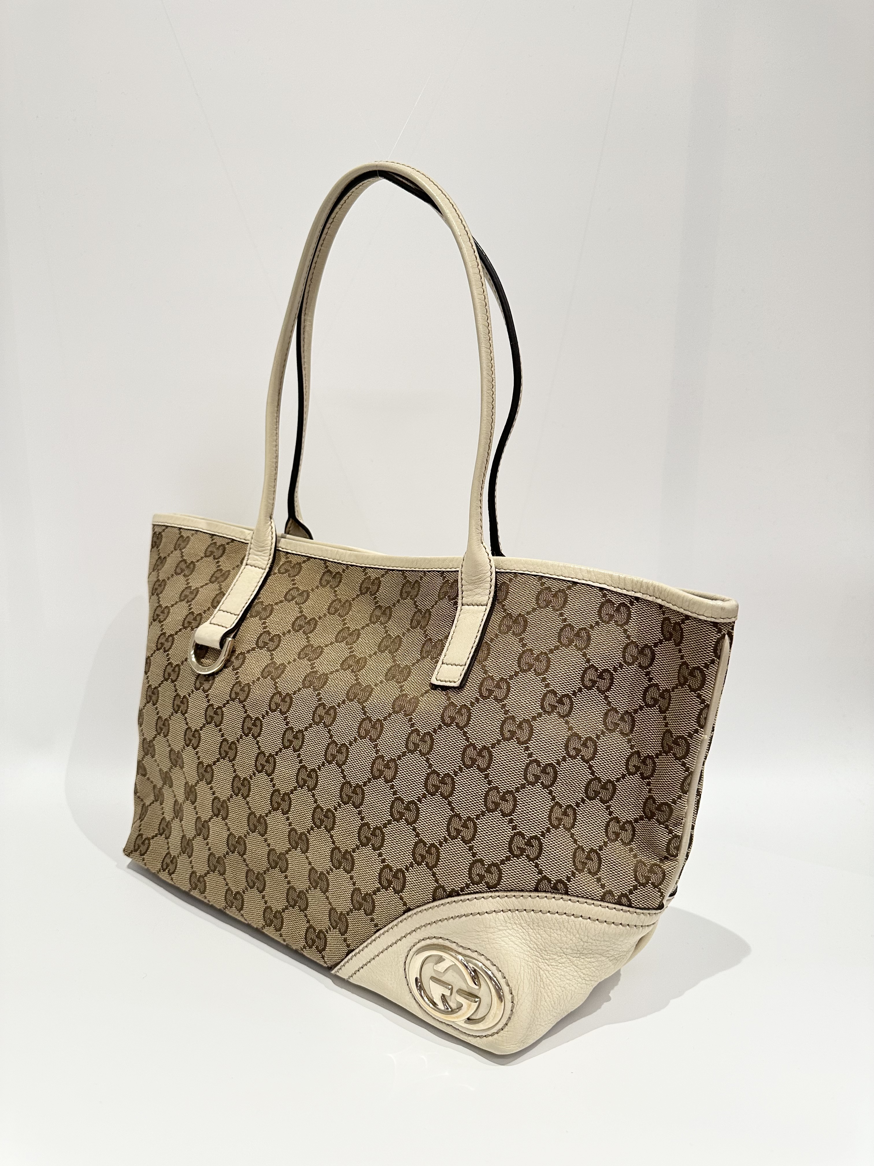 Gucci White GG Canvas Tote Bag