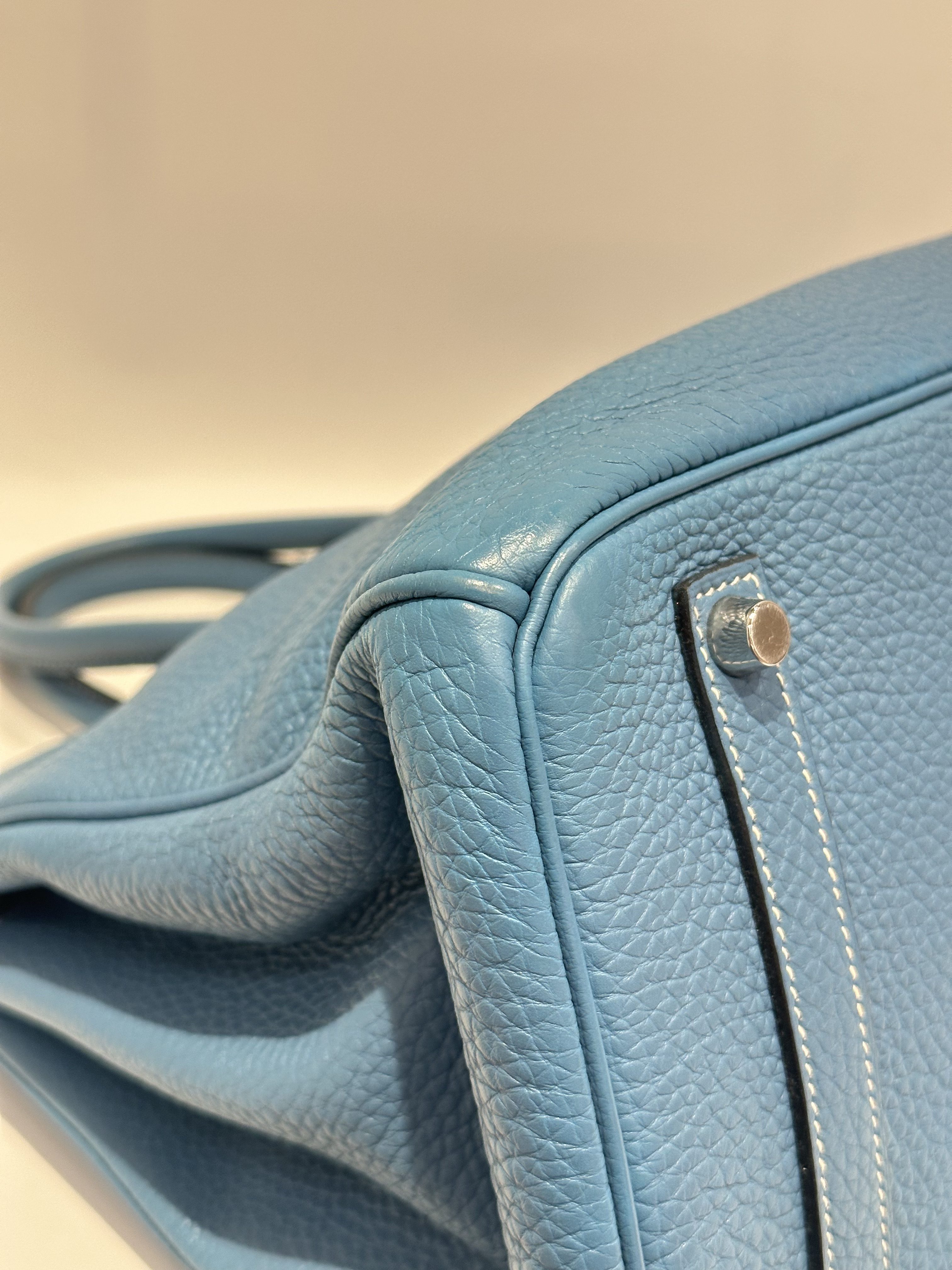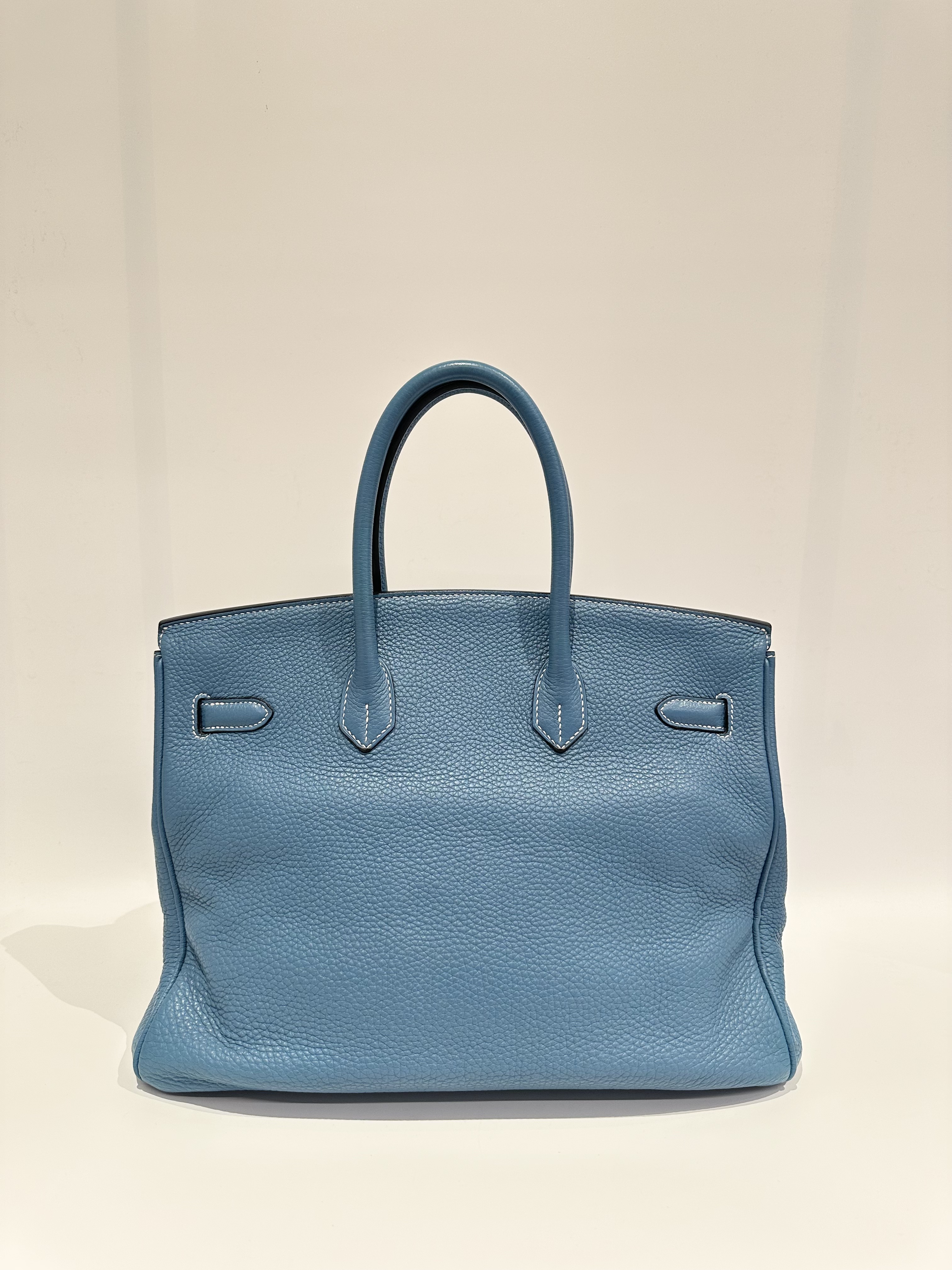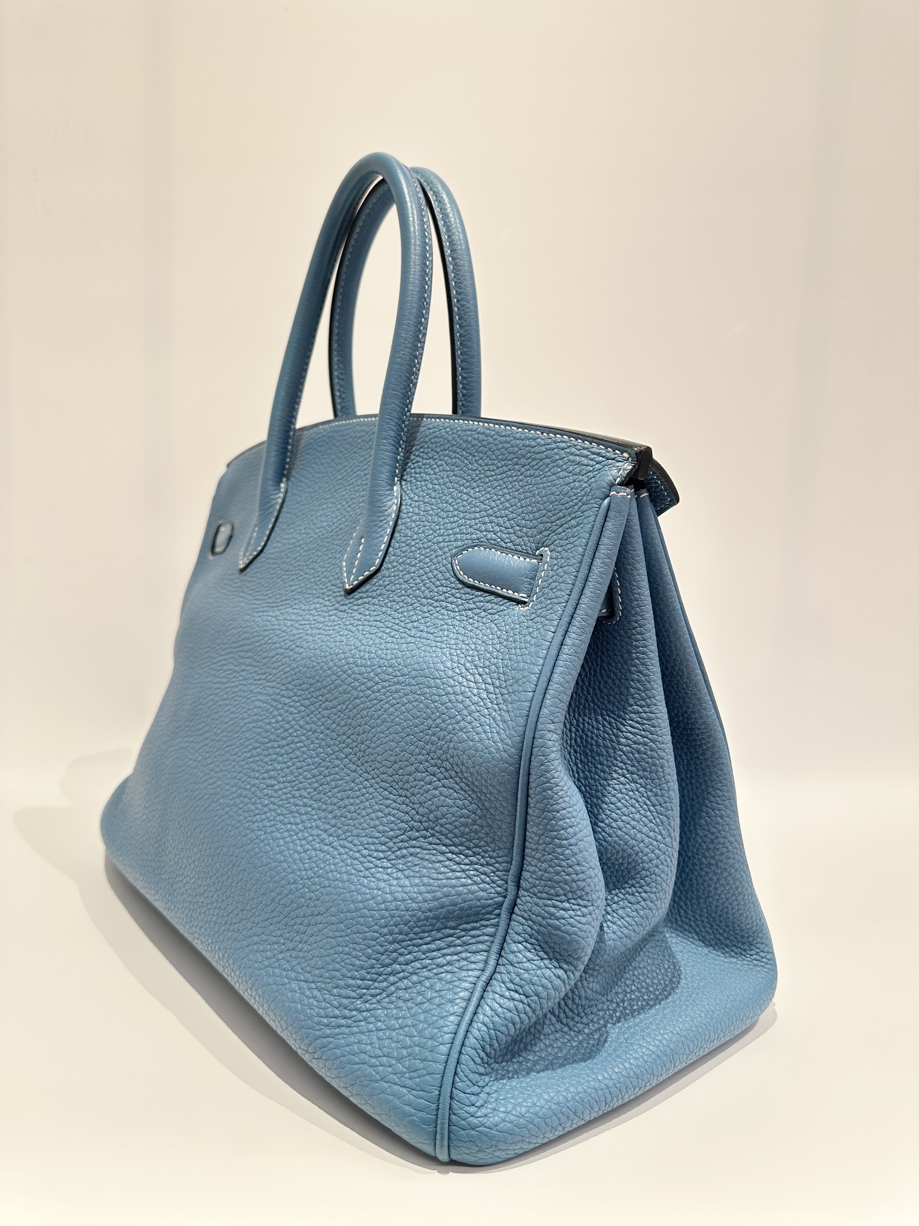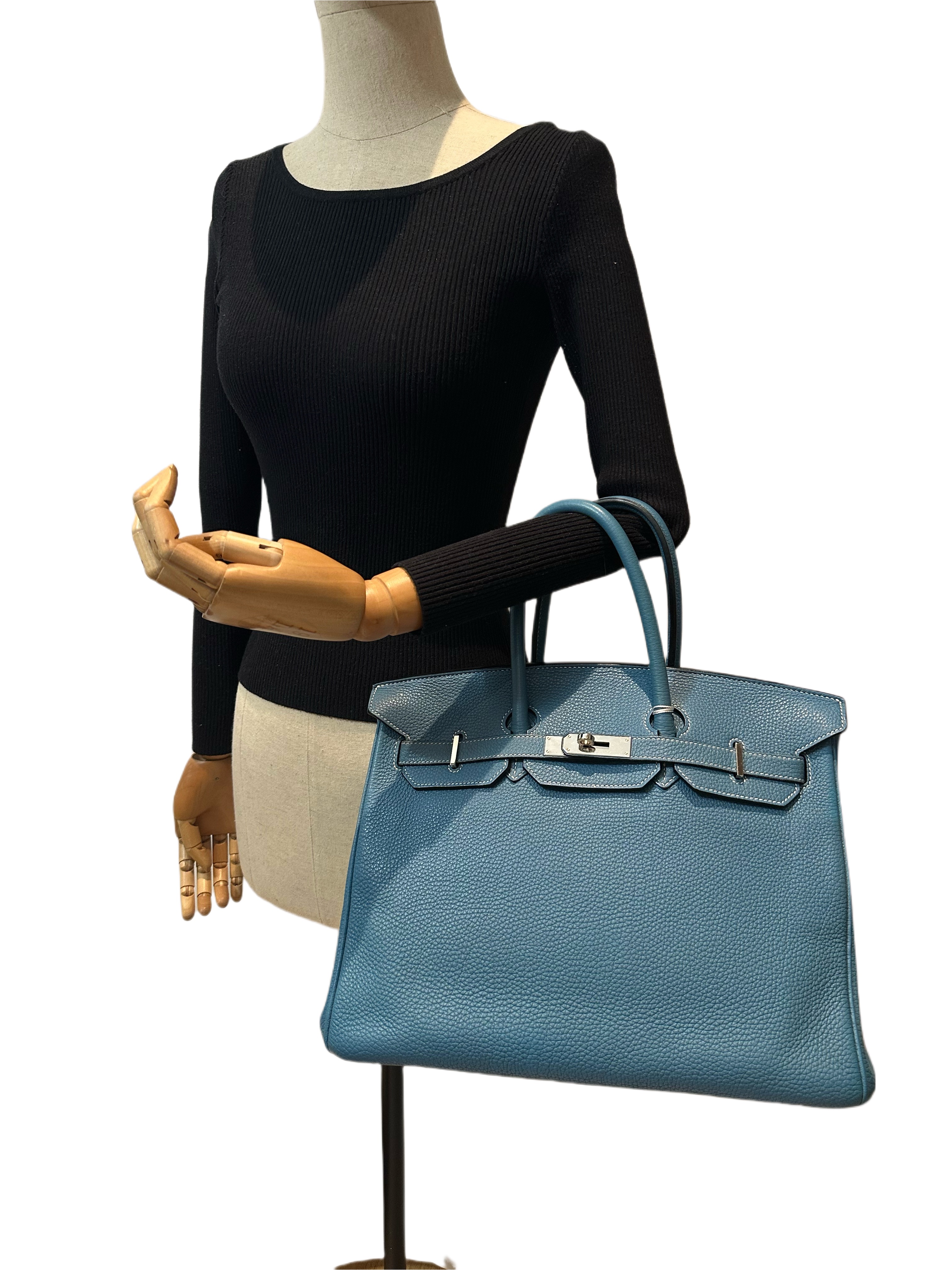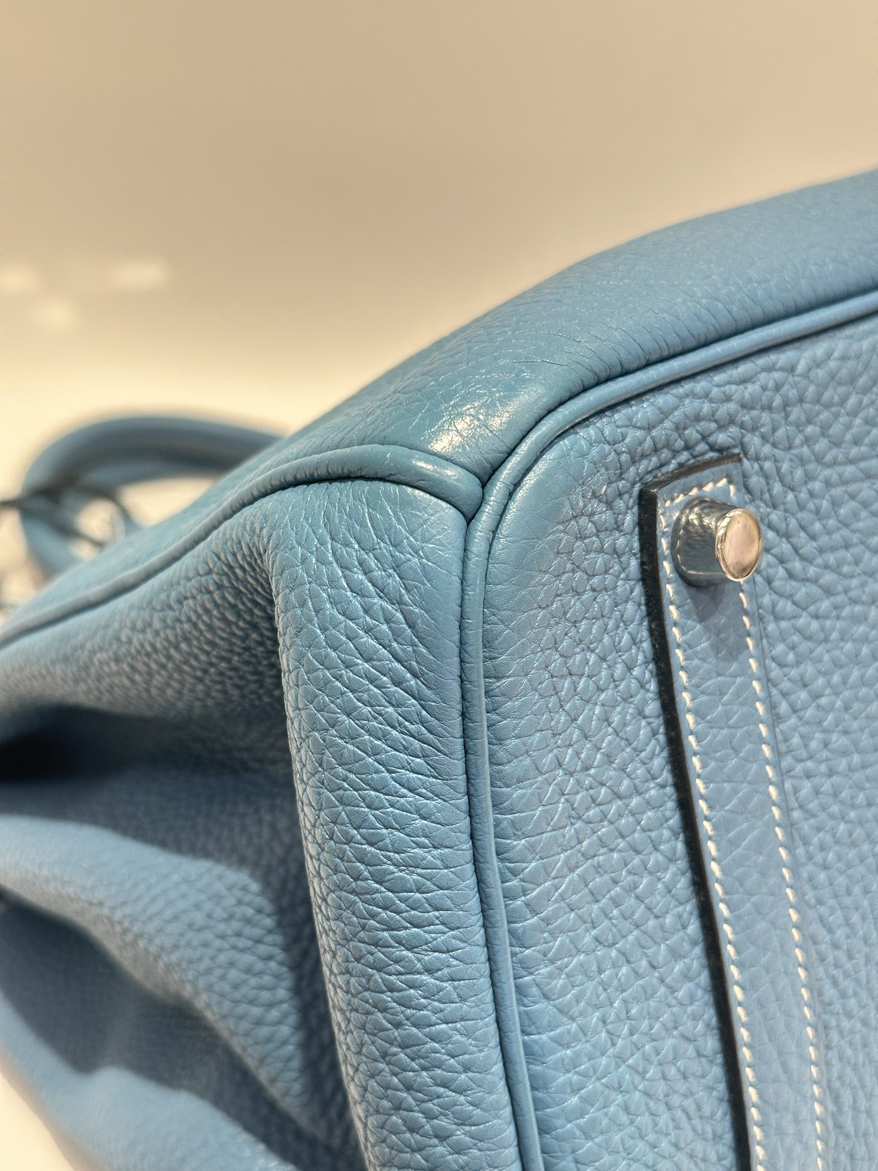 Hermes 75 Bleu Jean Birkin 35 Togo Leather Handbag Silver Hardware
