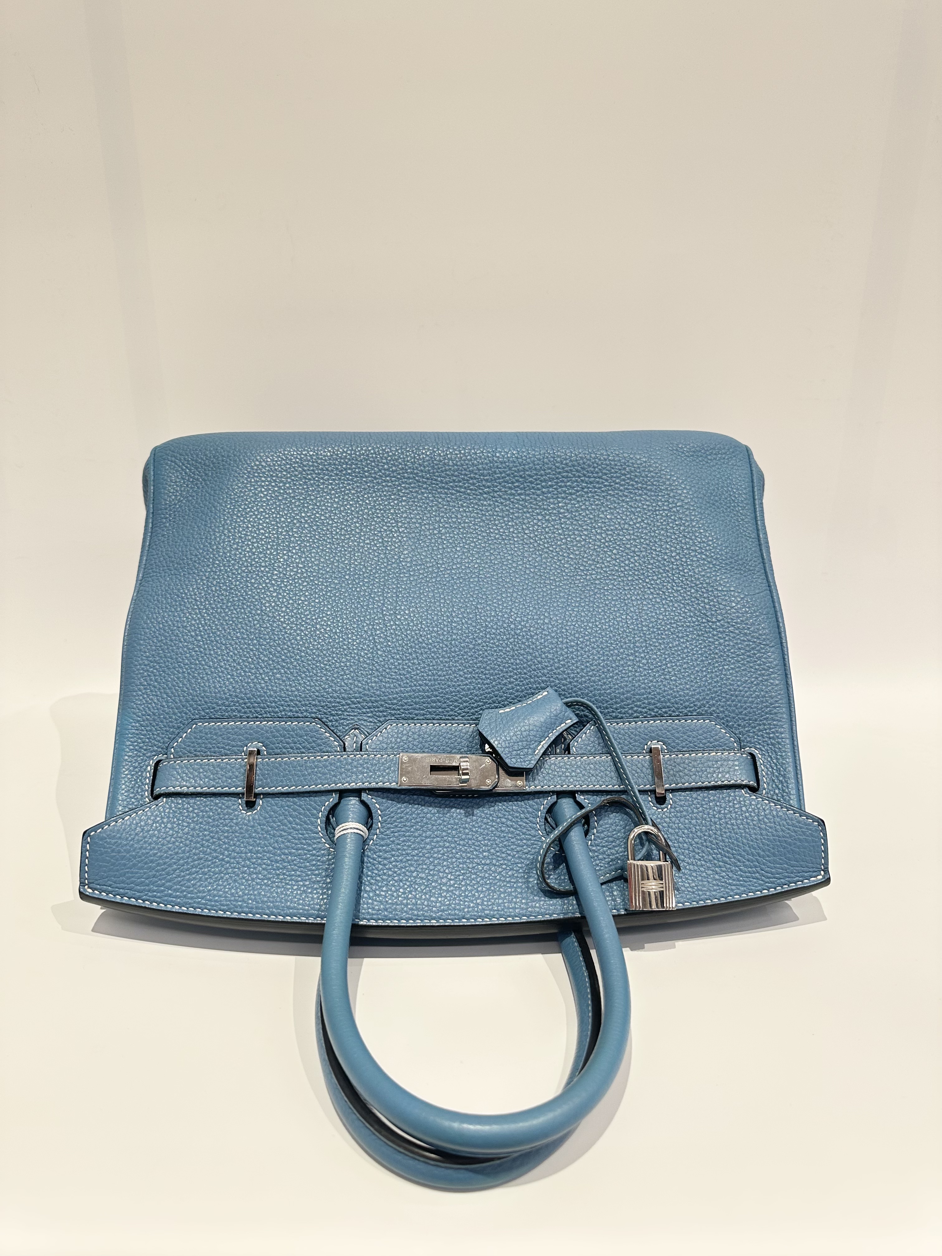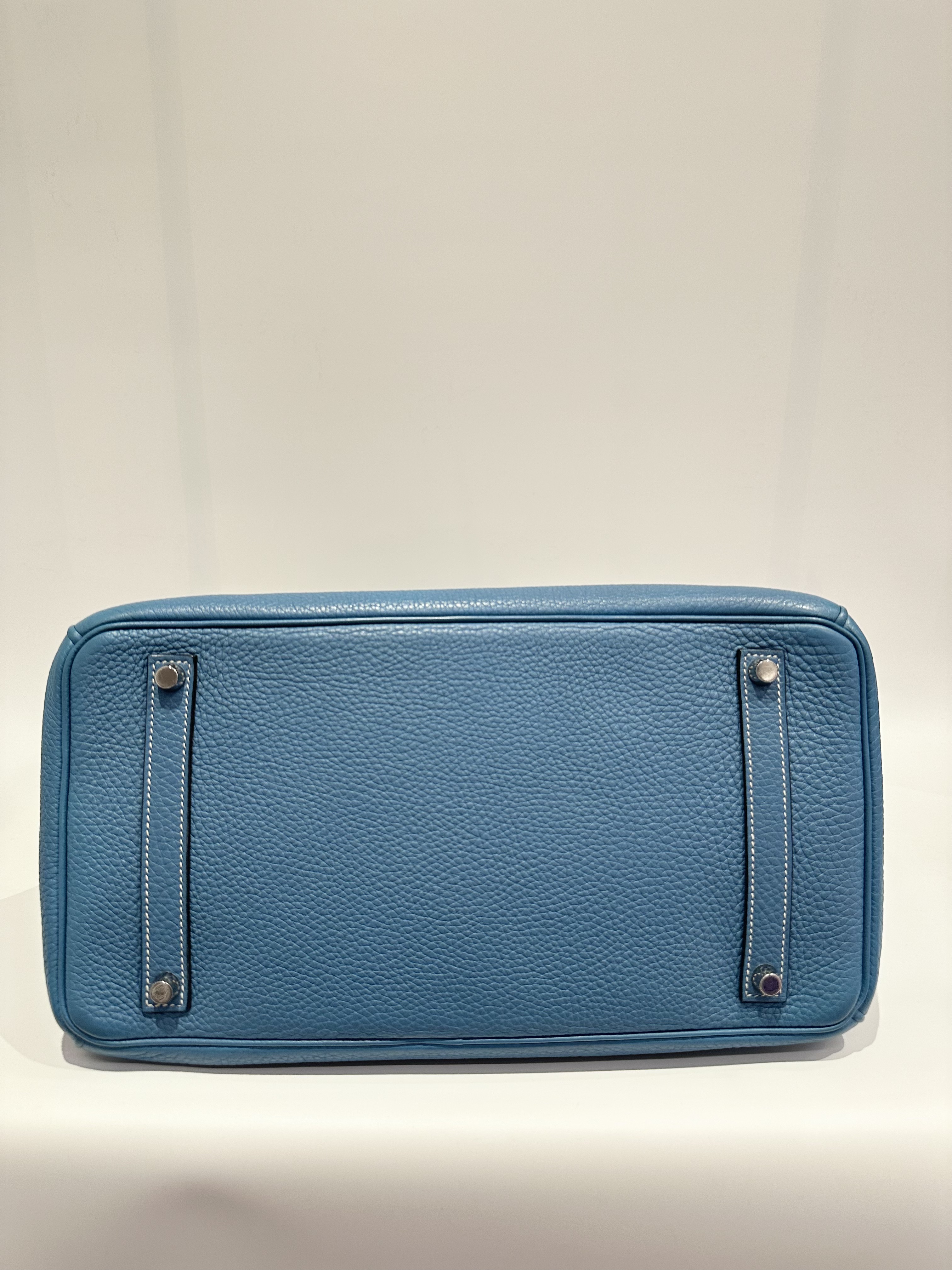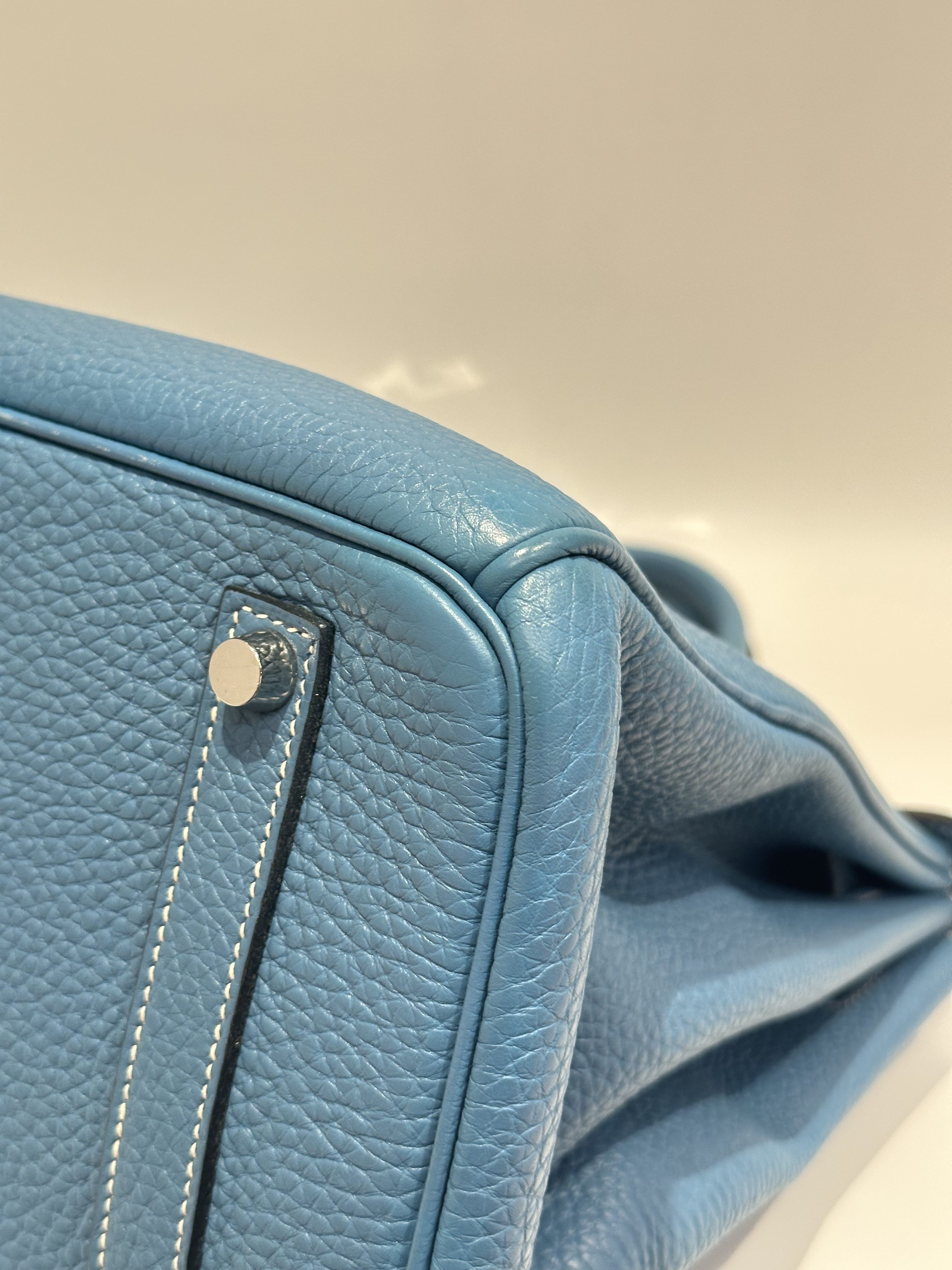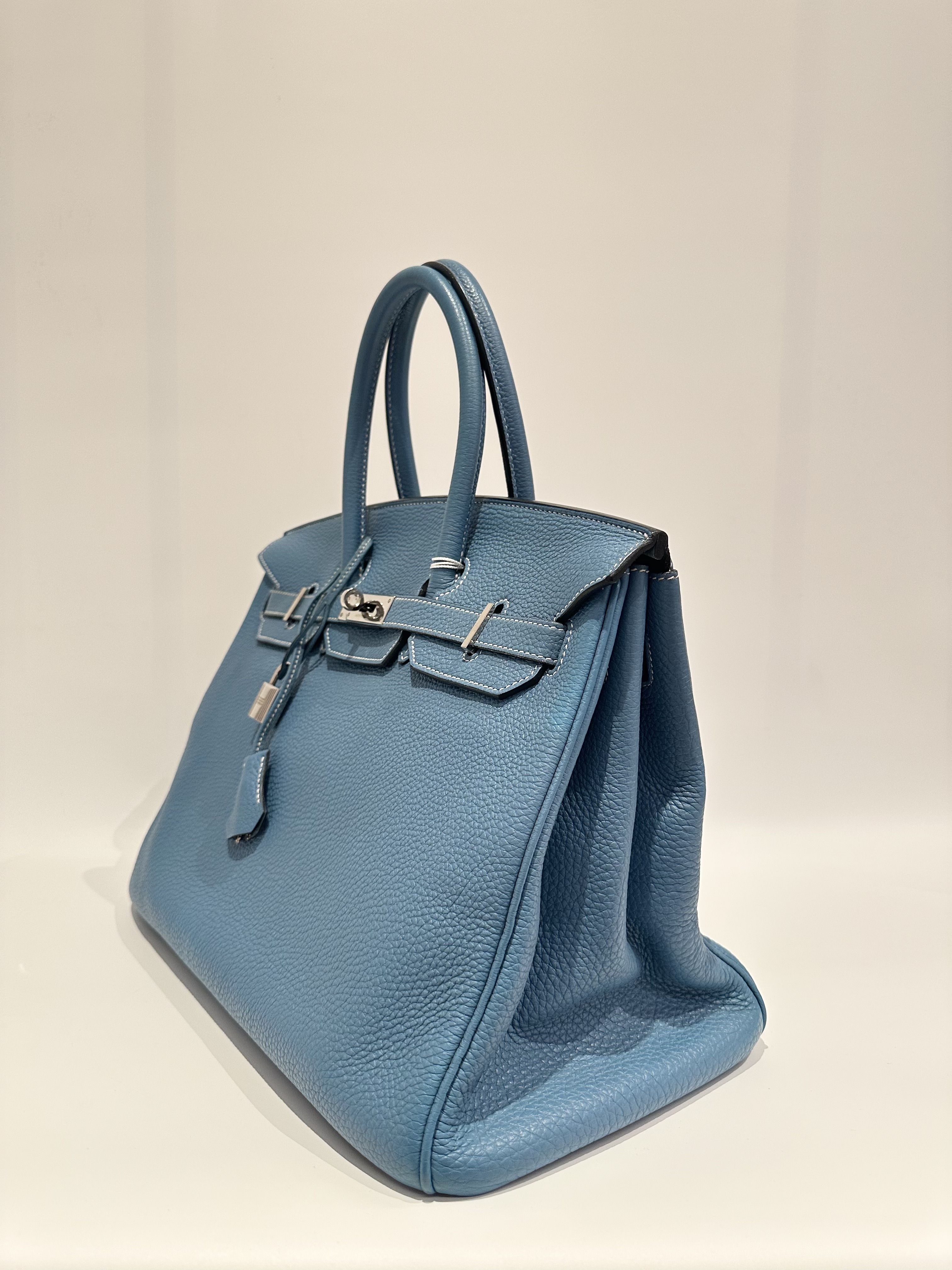 Hermes 75 Bleu Jean Birkin 35 Togo Leather Handbag Silver Hardware