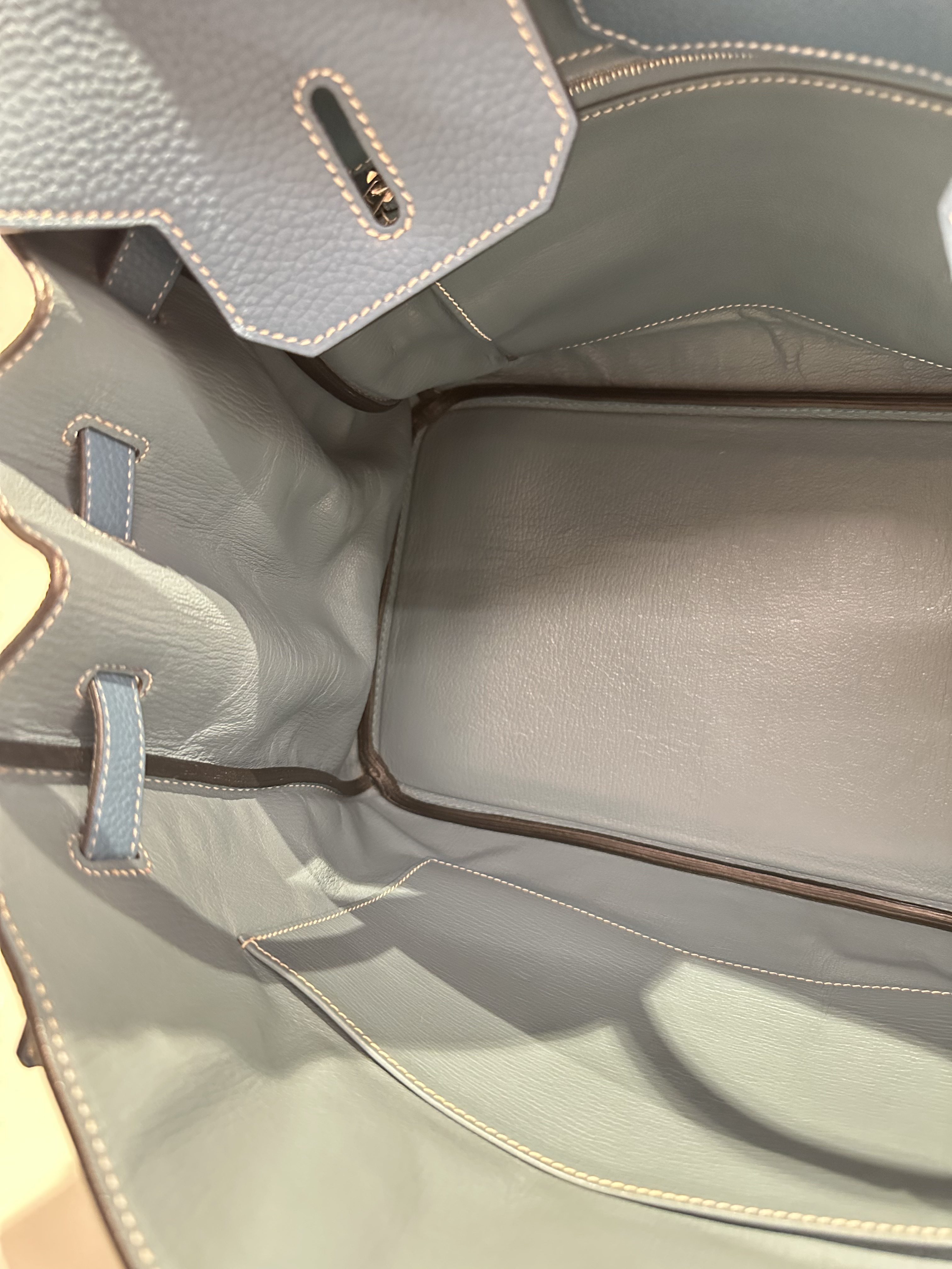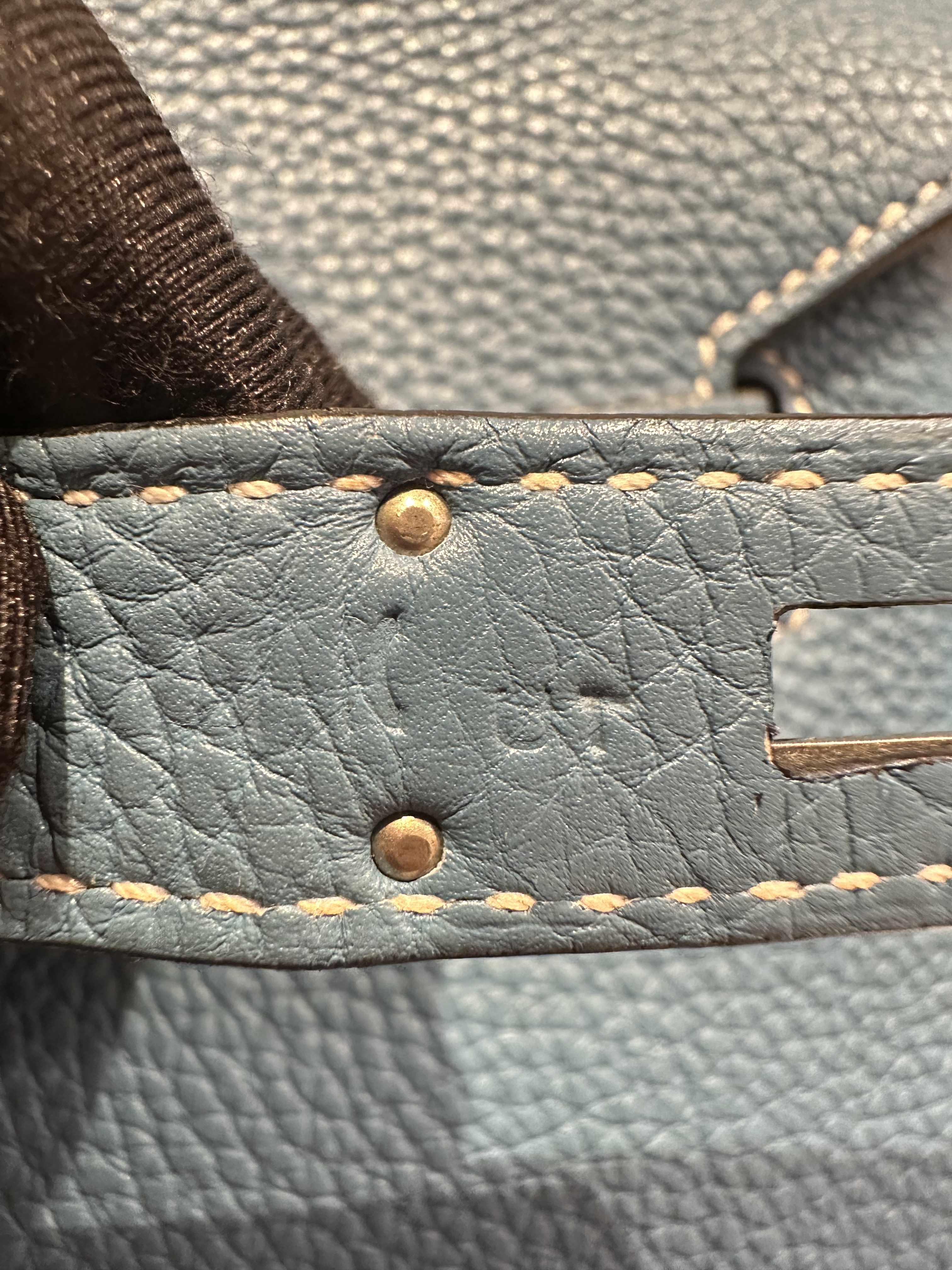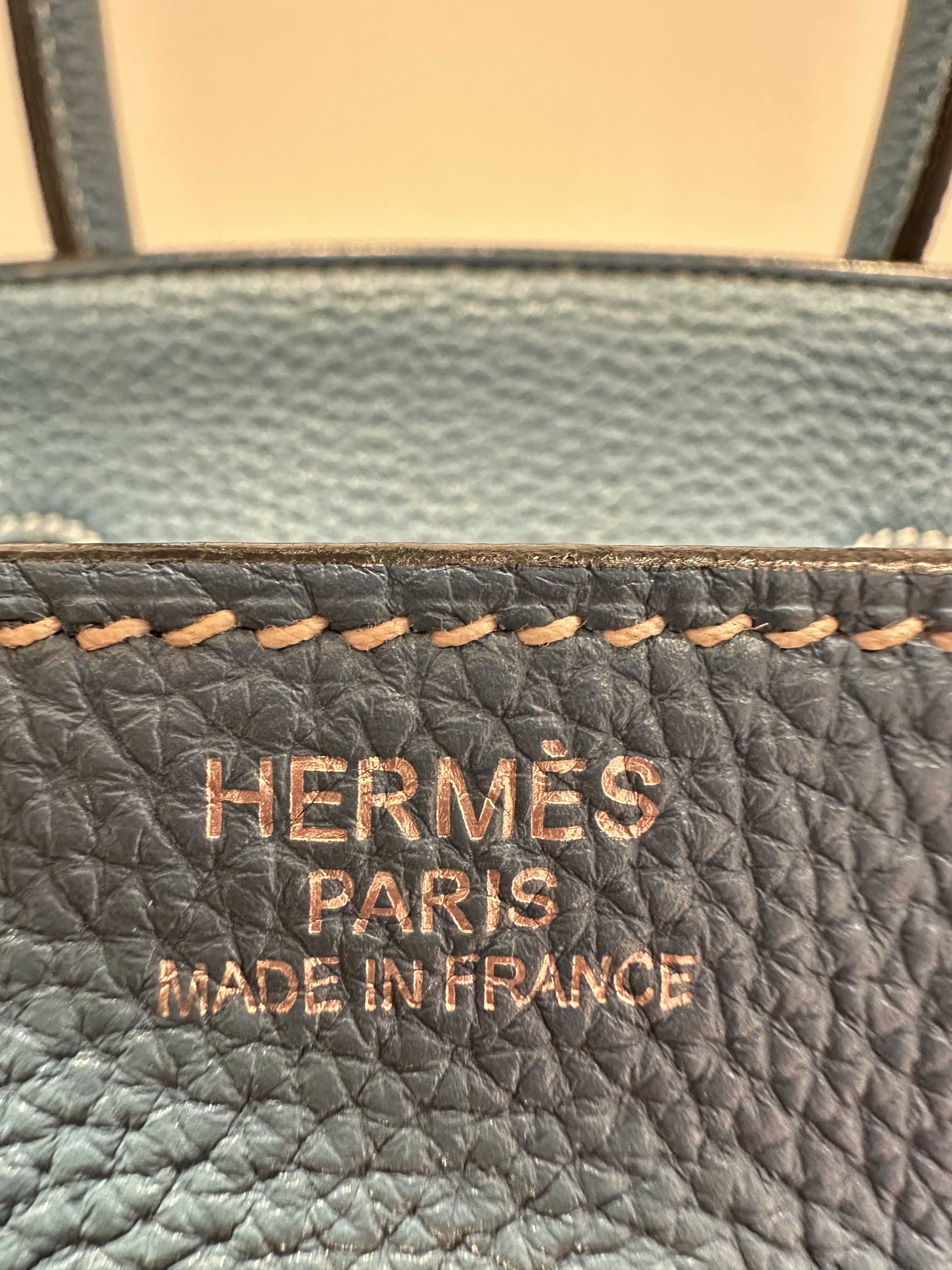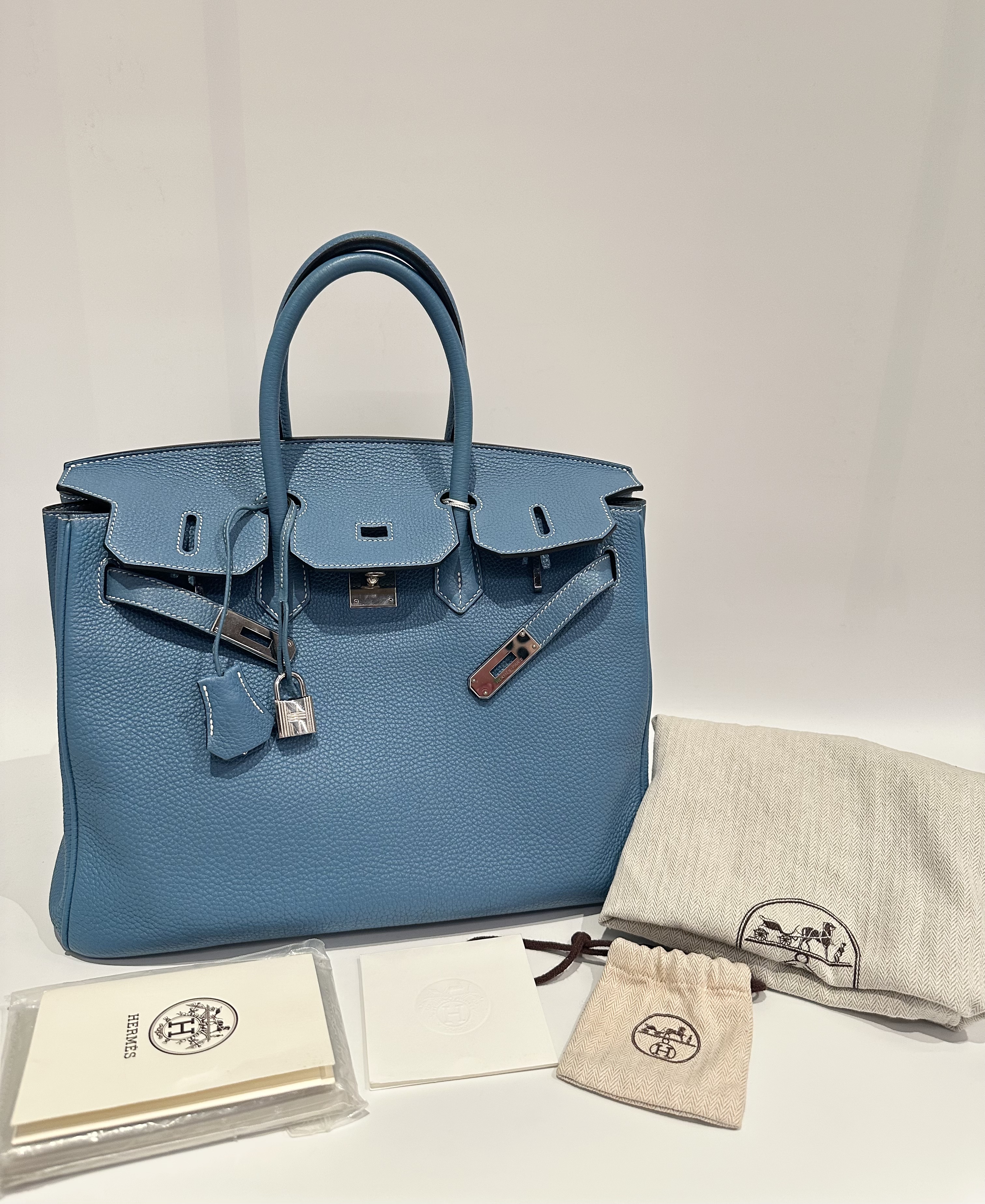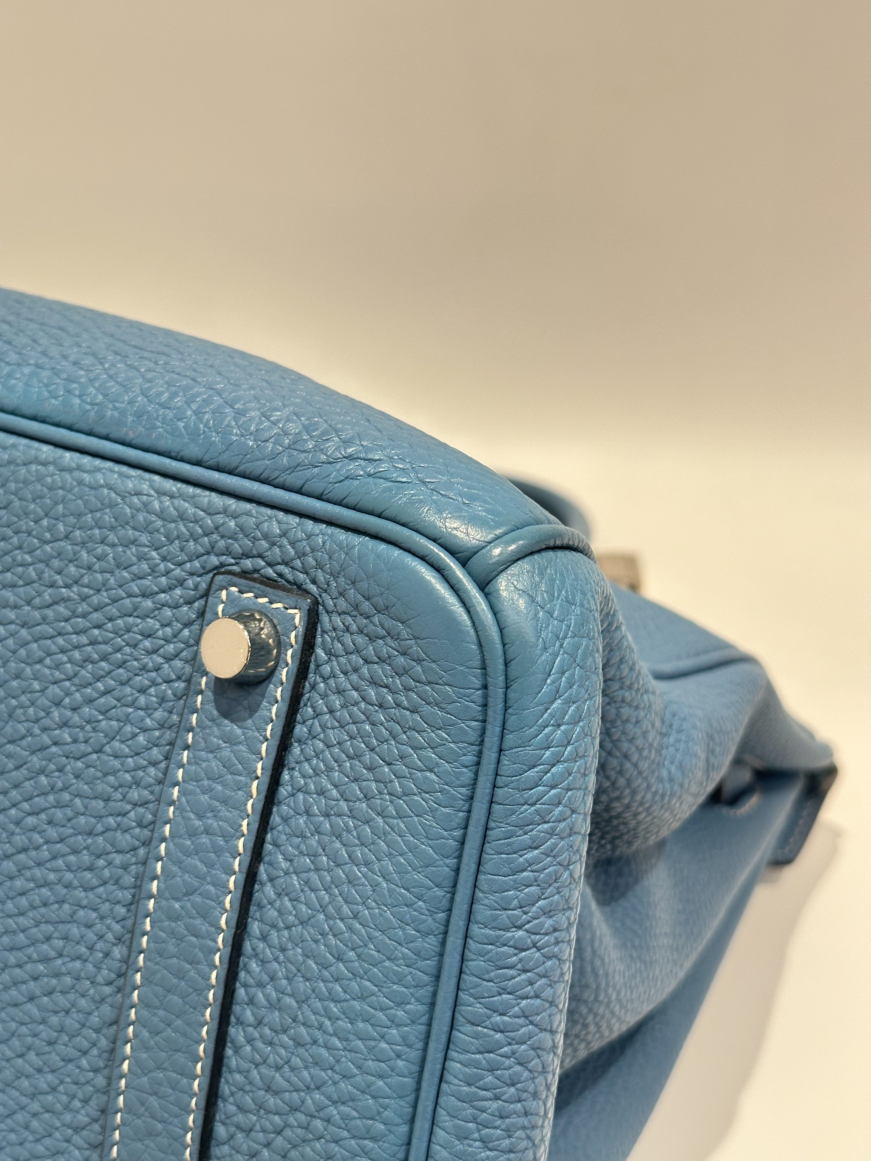 Hermes 75 Bleu Jean Birkin 35 Togo Leather Handbag Silver Hardware