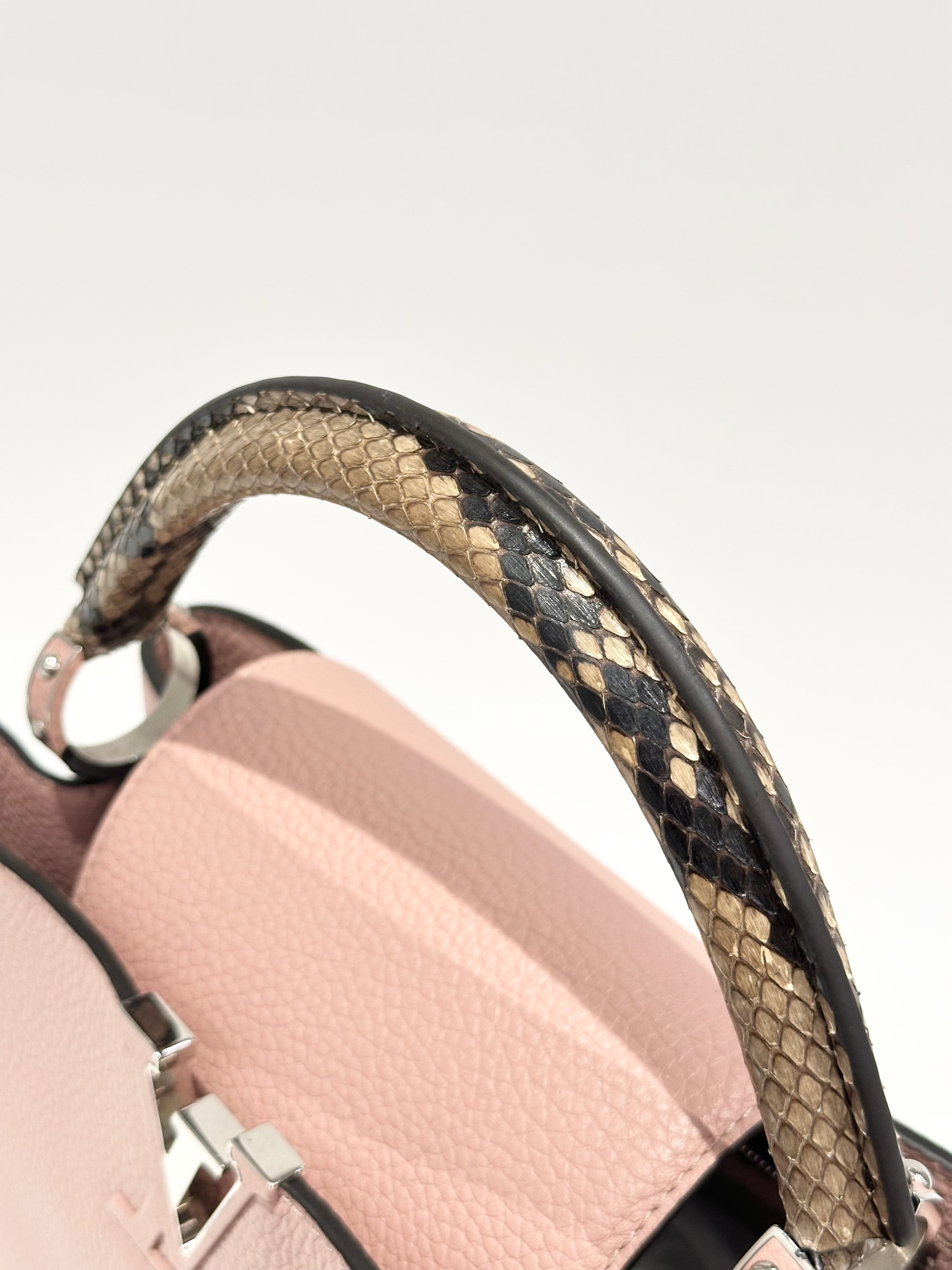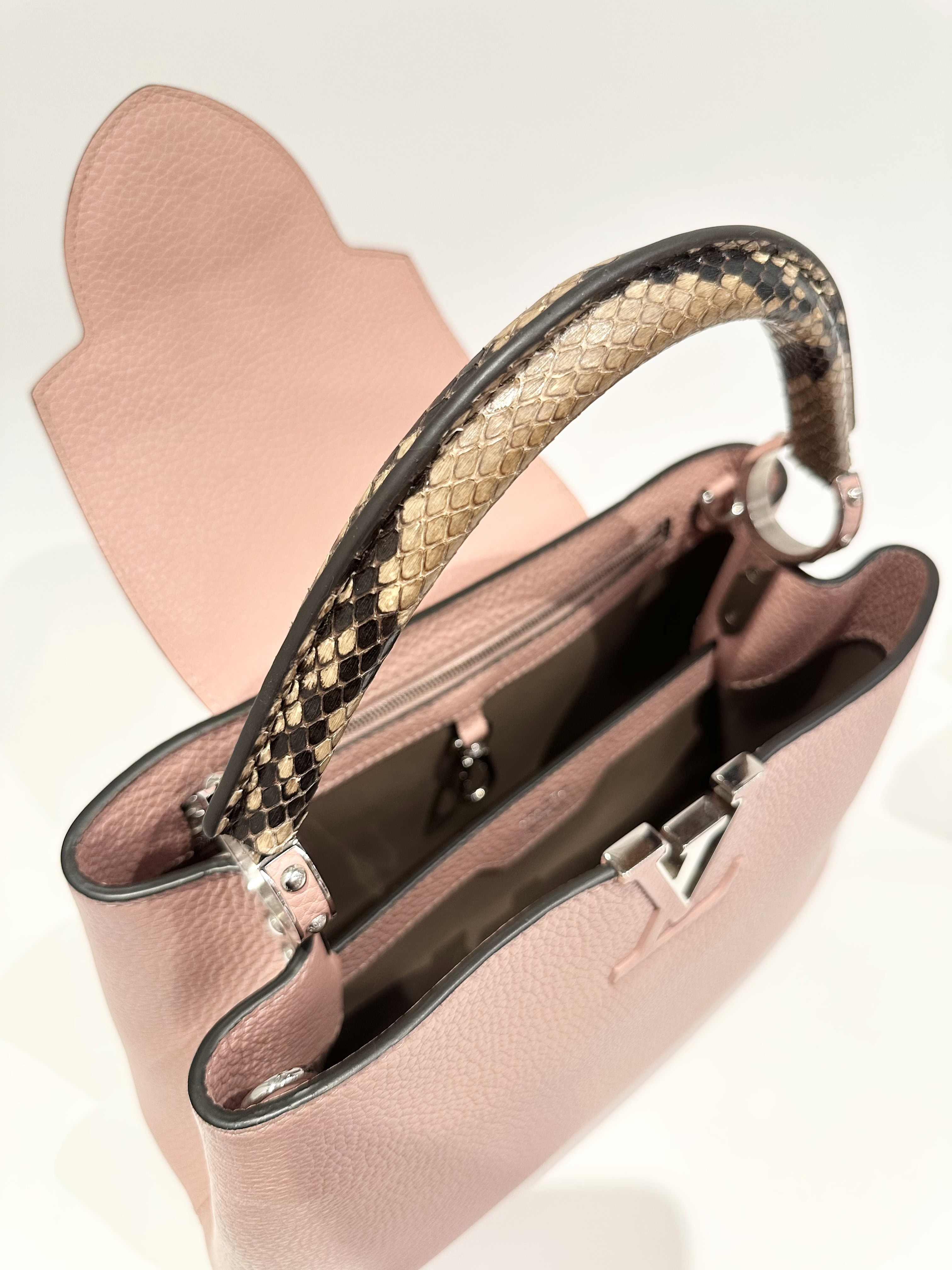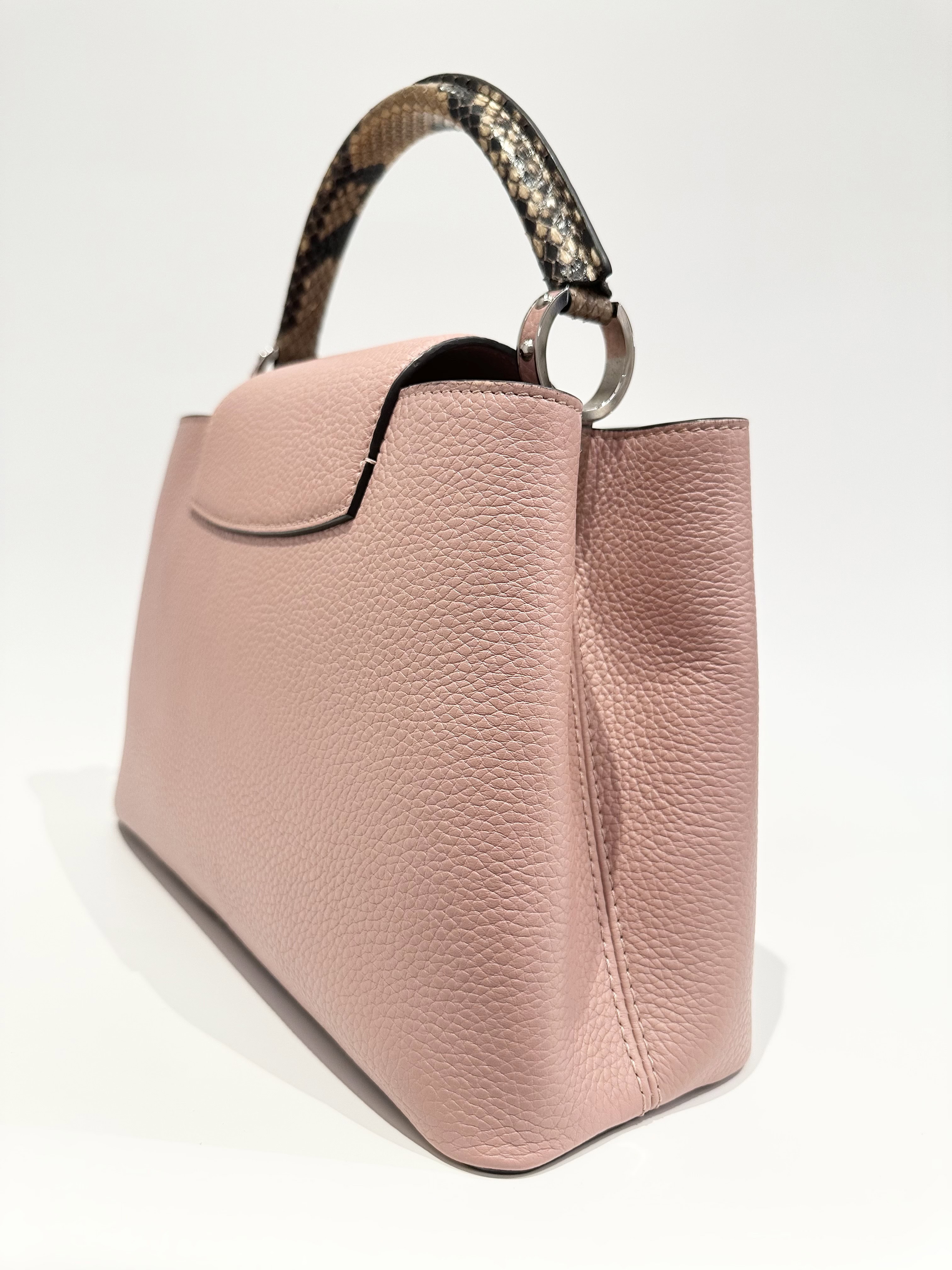 Louis Vuitton Pink Capucines MM Leather With Natural Python Top Handle Handbag