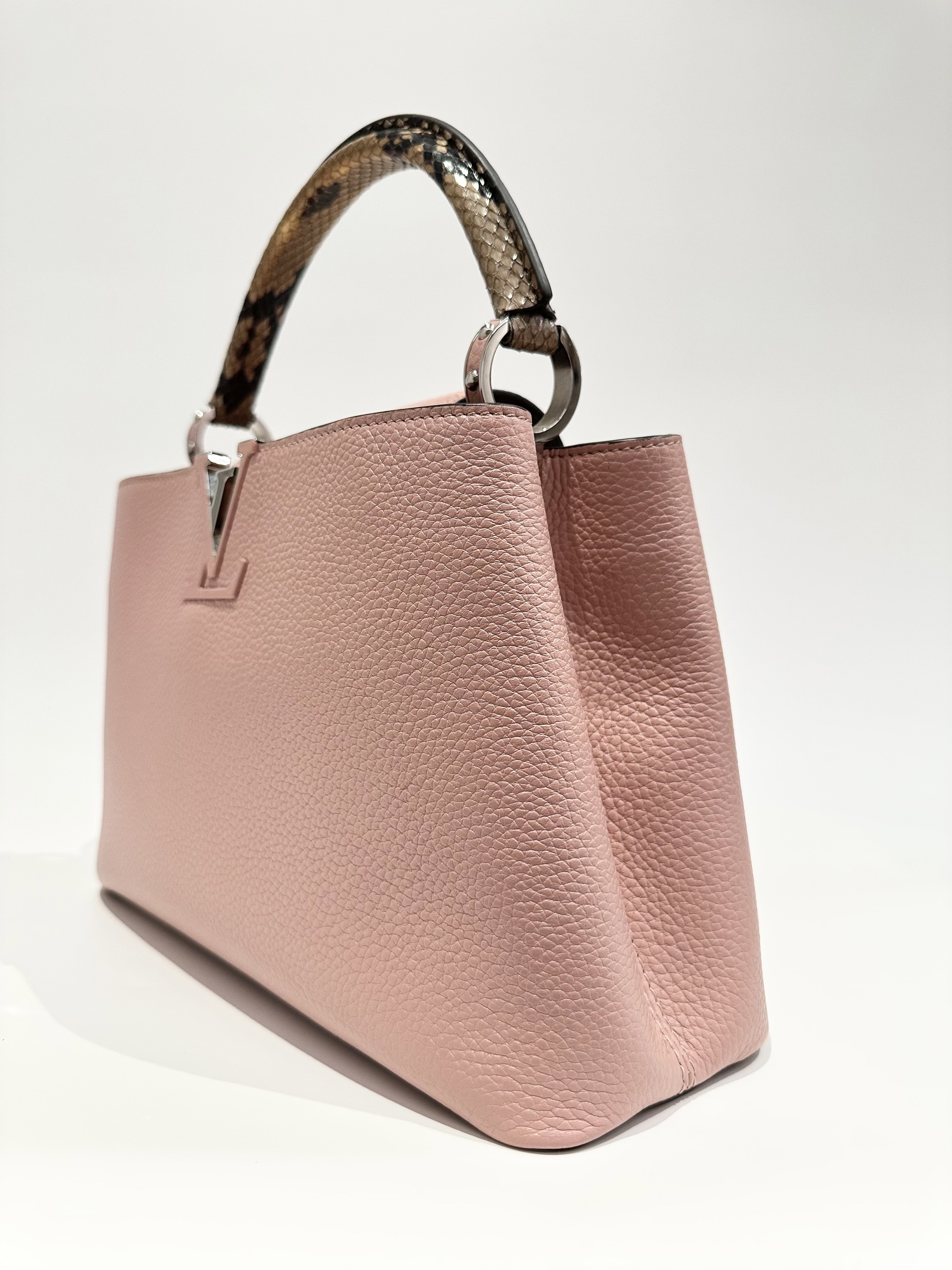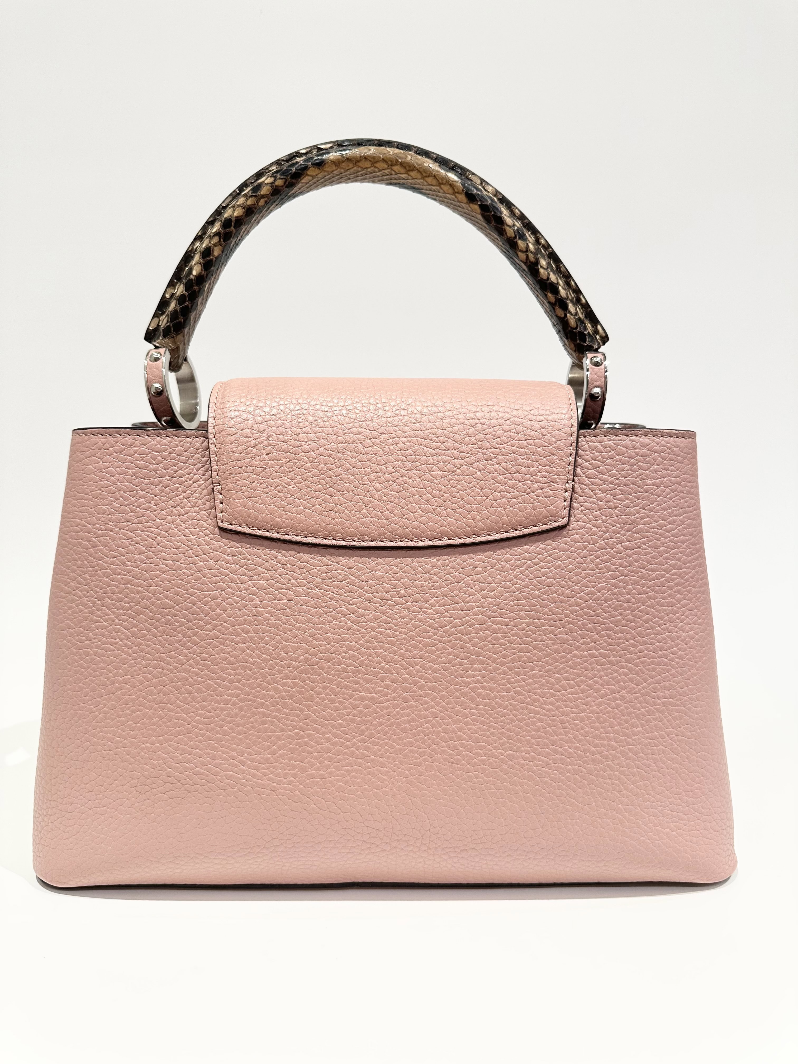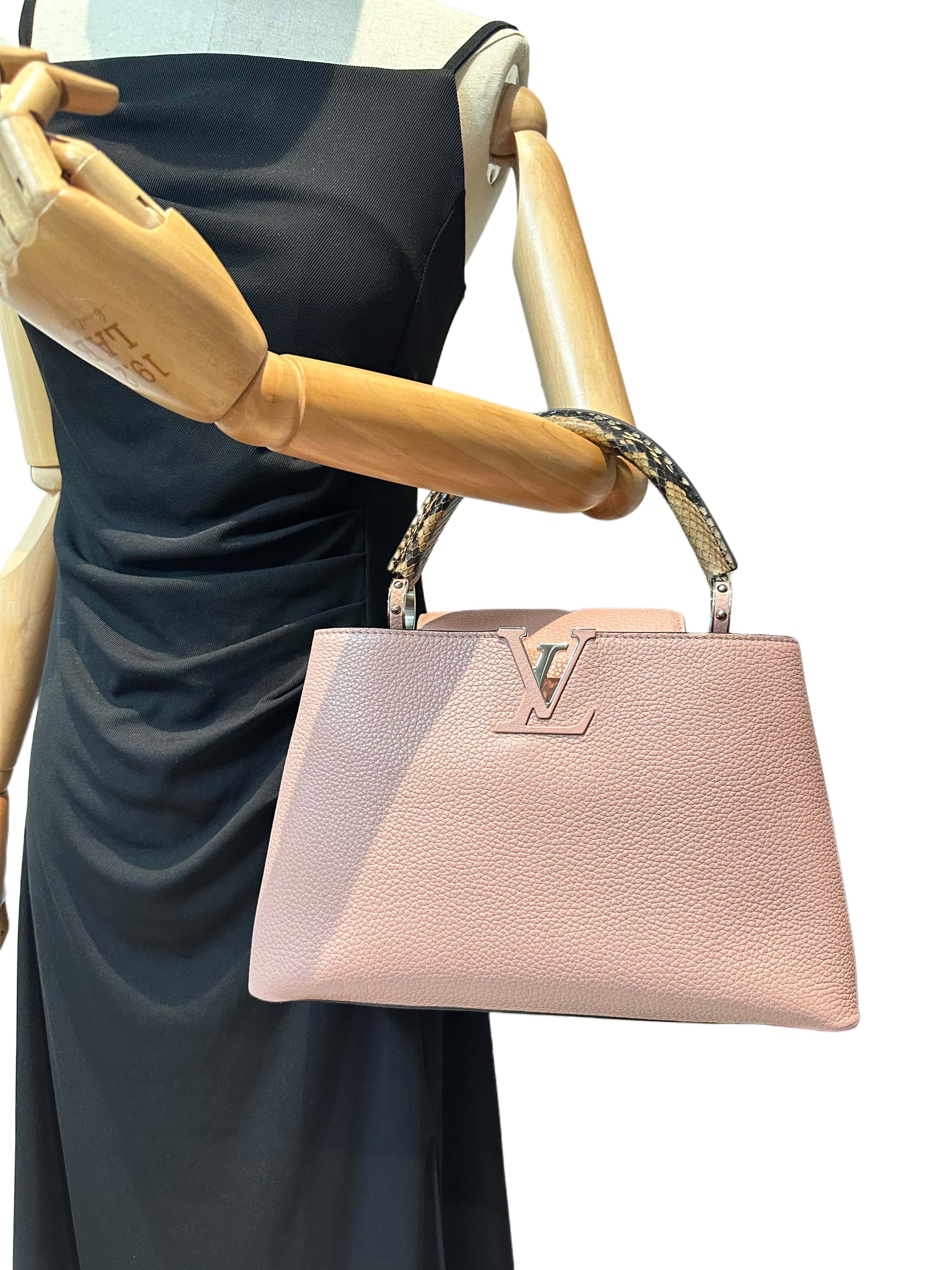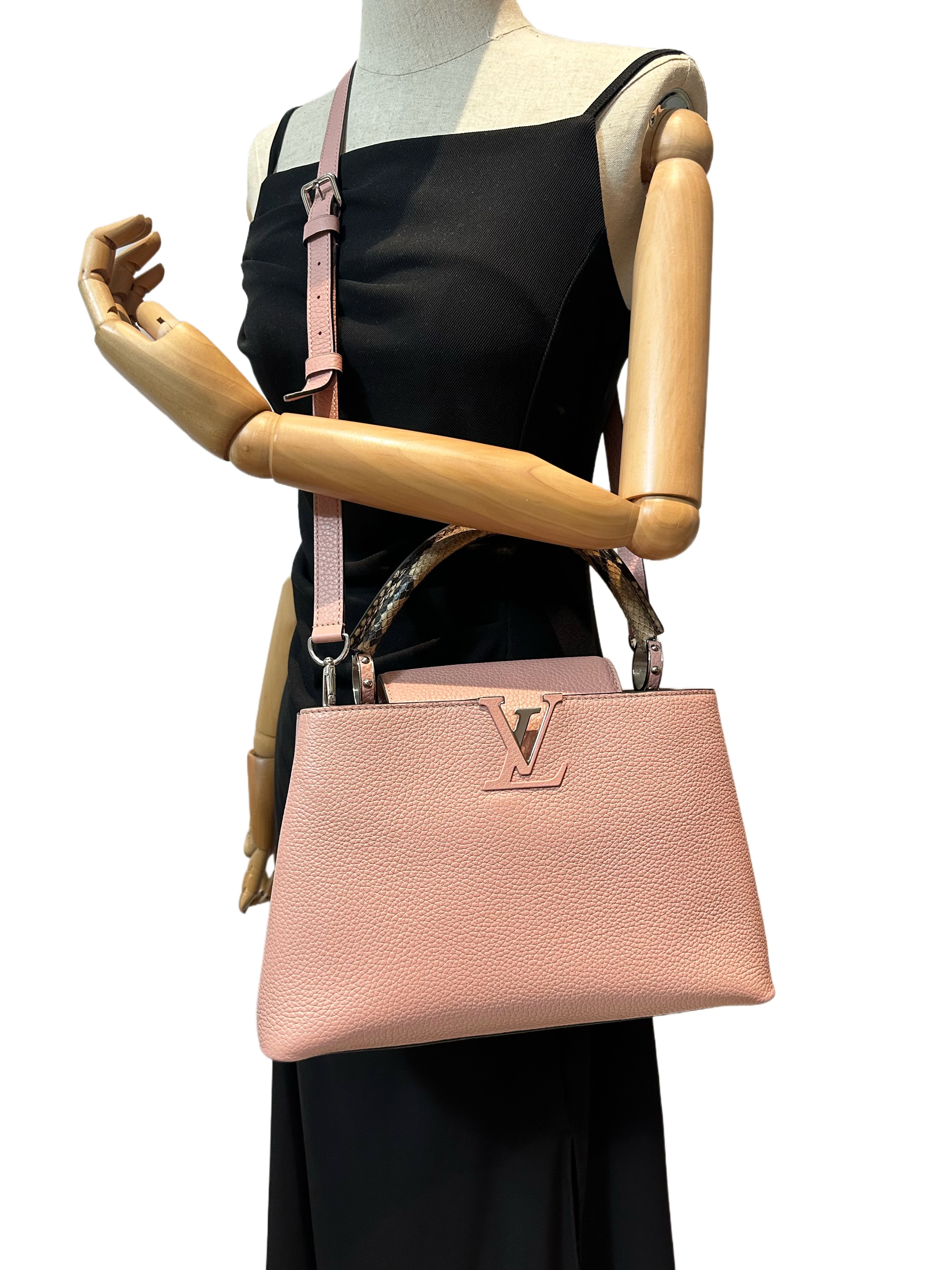 Louis Vuitton Pink Capucines MM Leather With Natural Python Top Handle Handbag