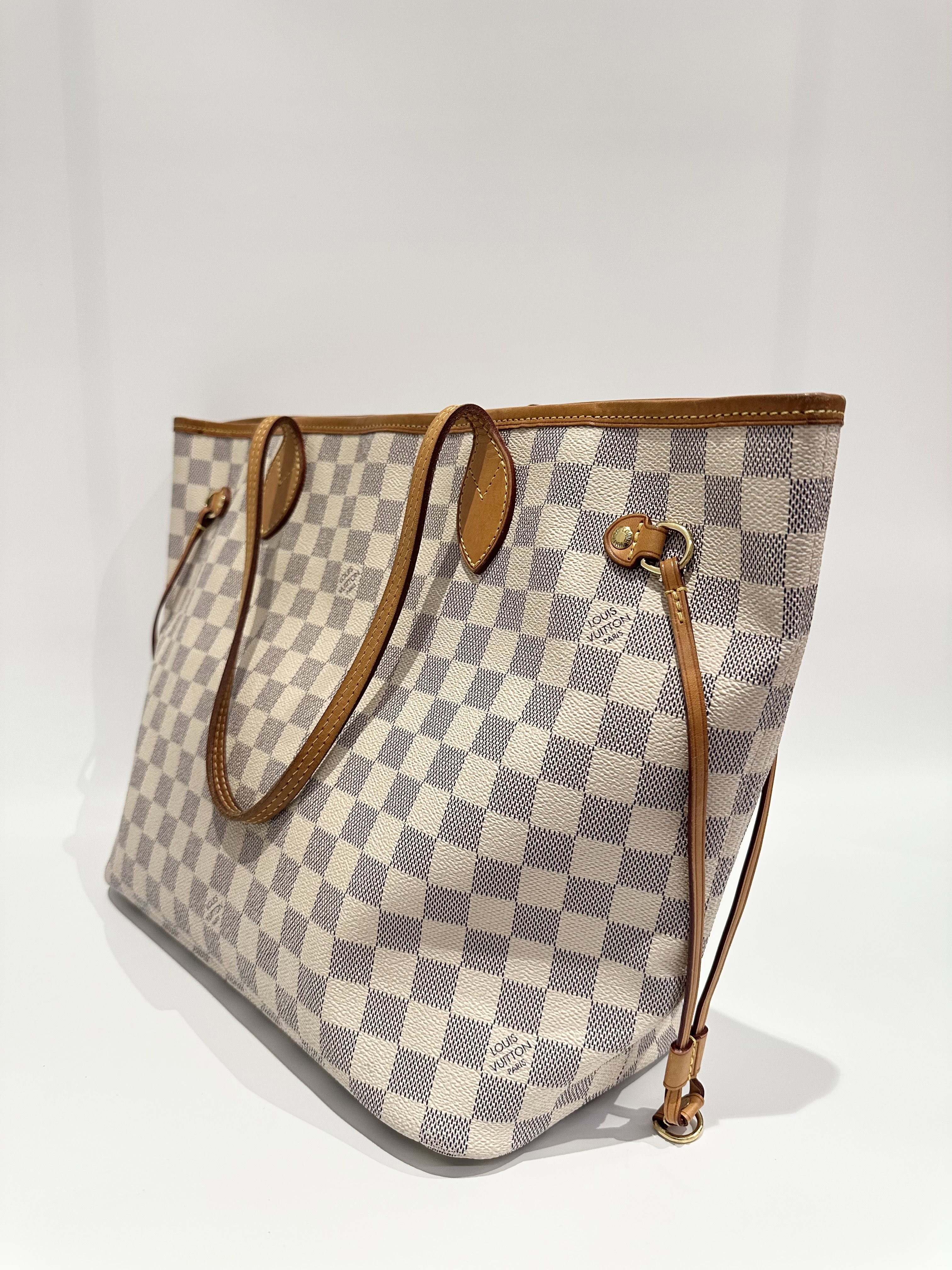 Louis Vuitton White Neverfull MM Canvas Tote Bag