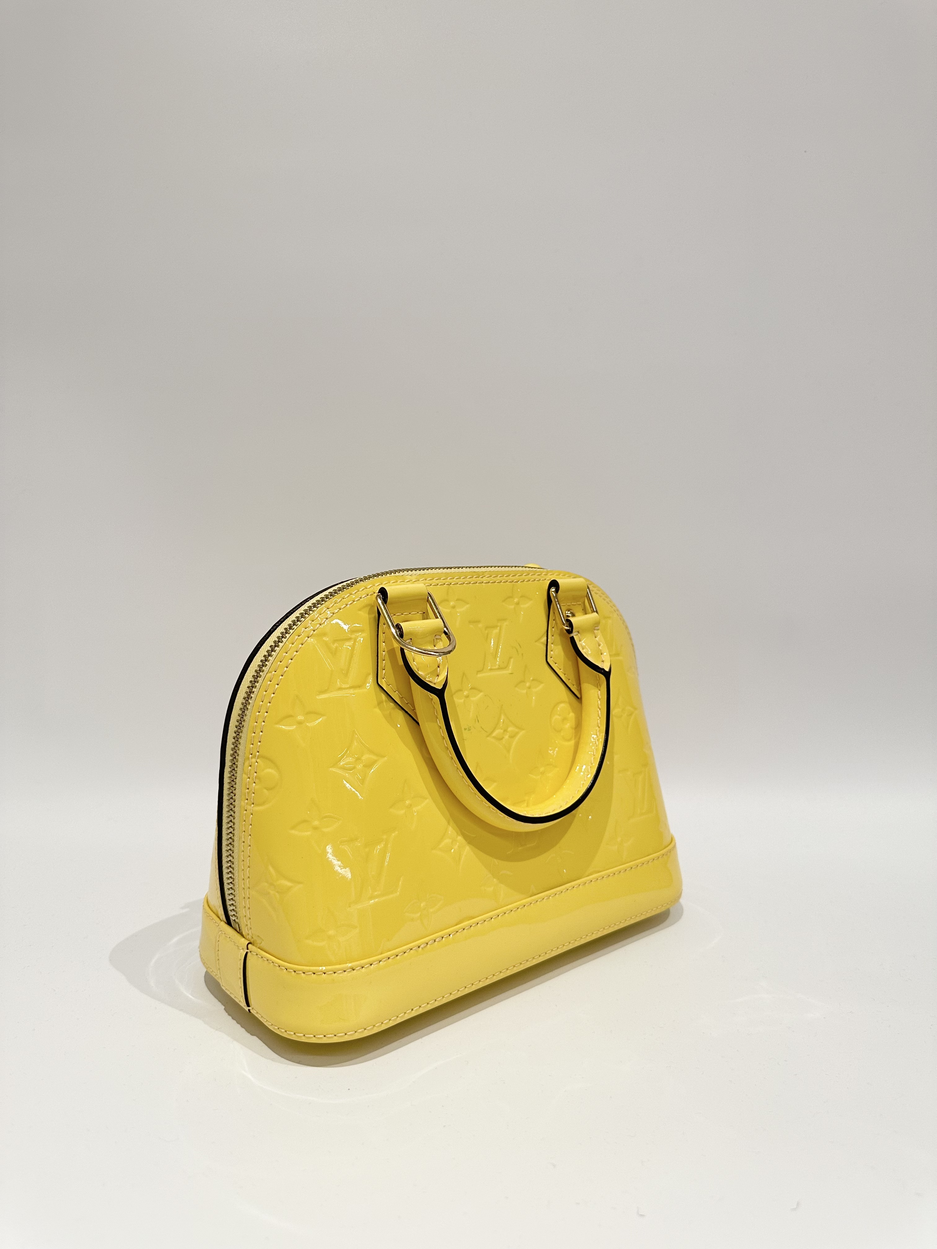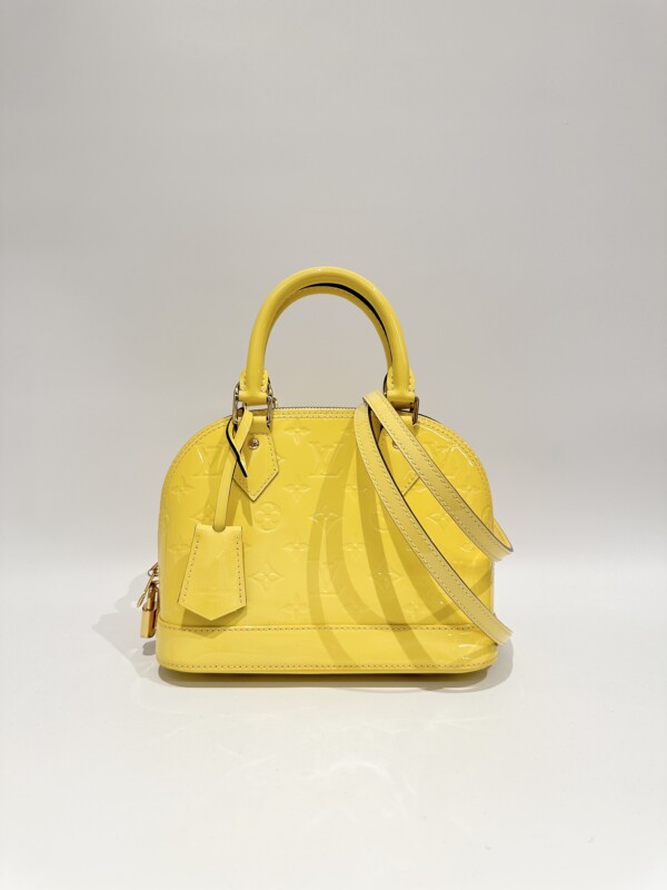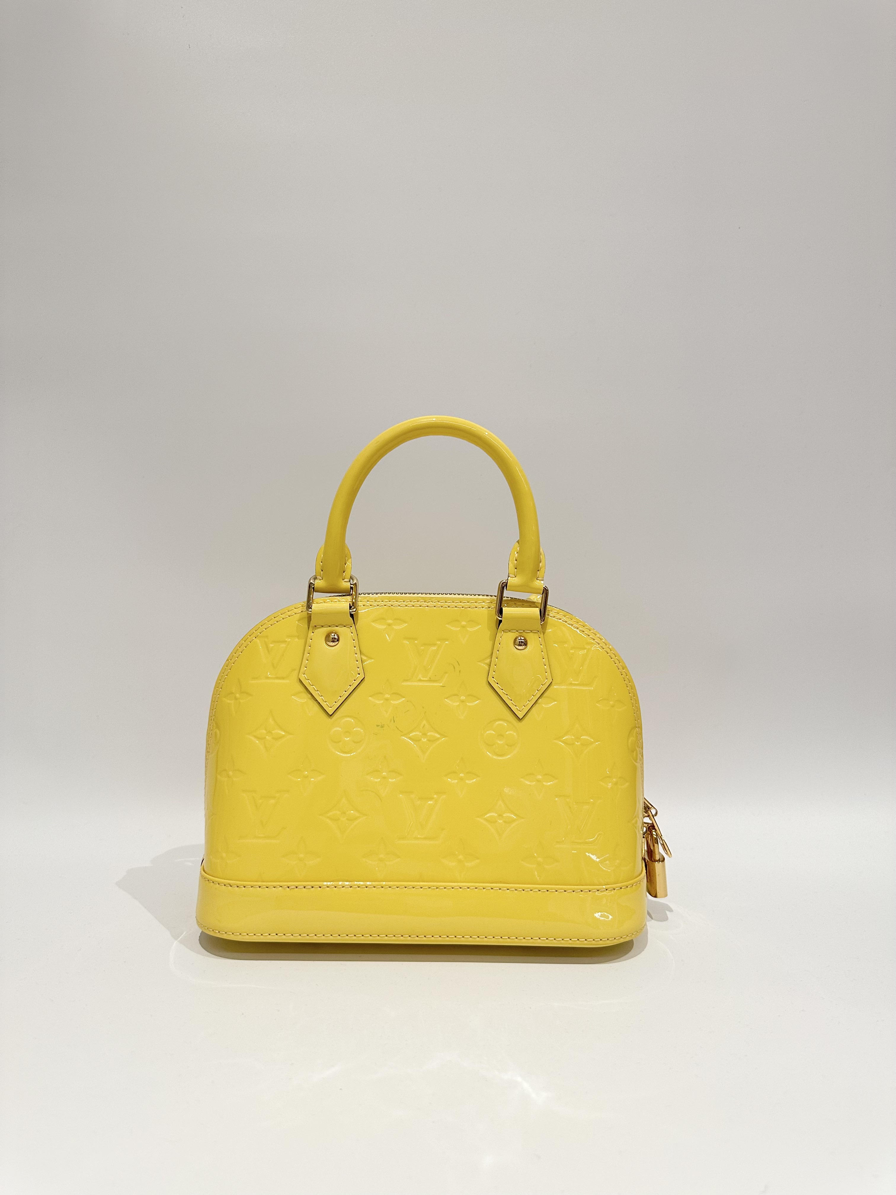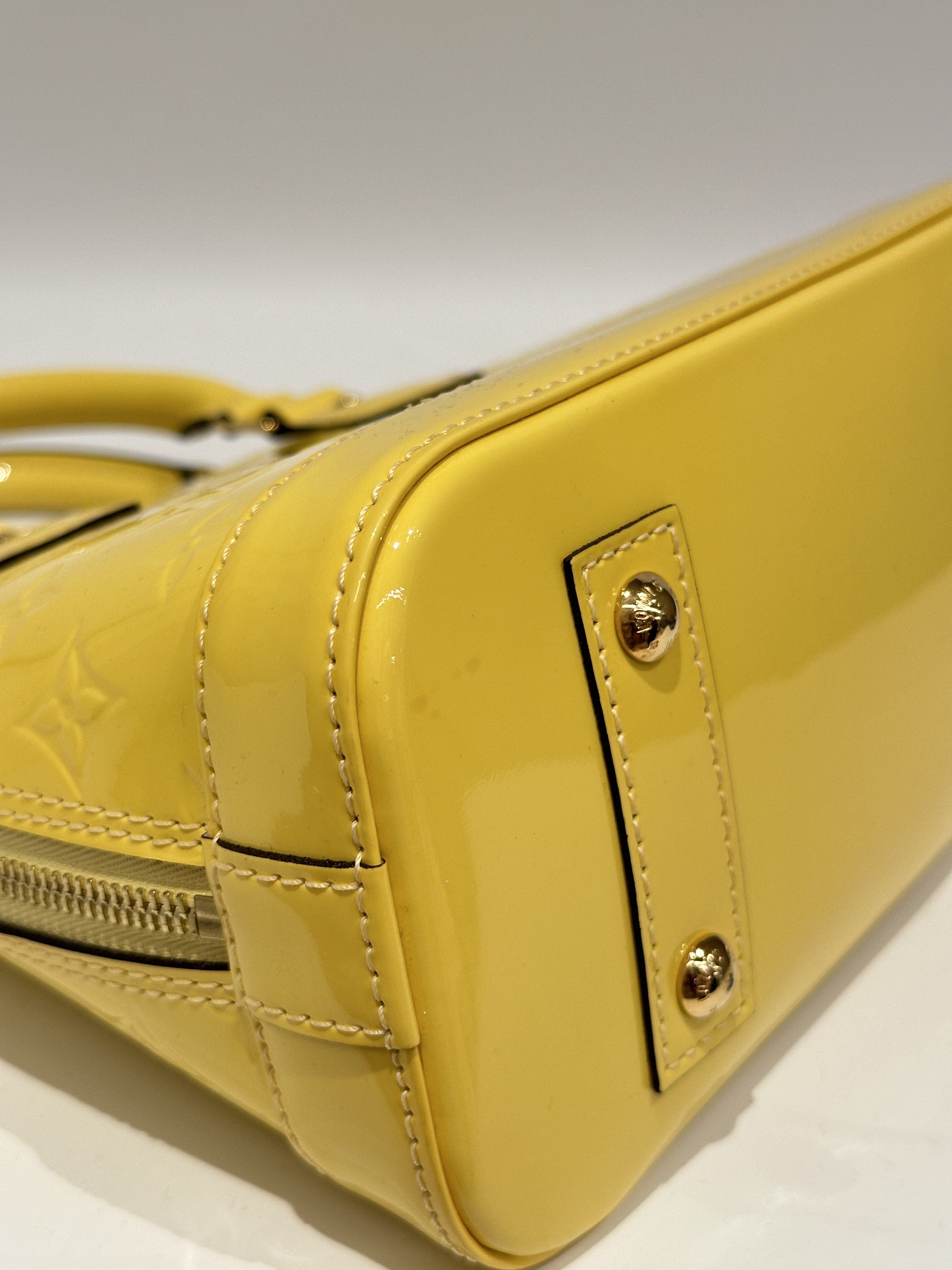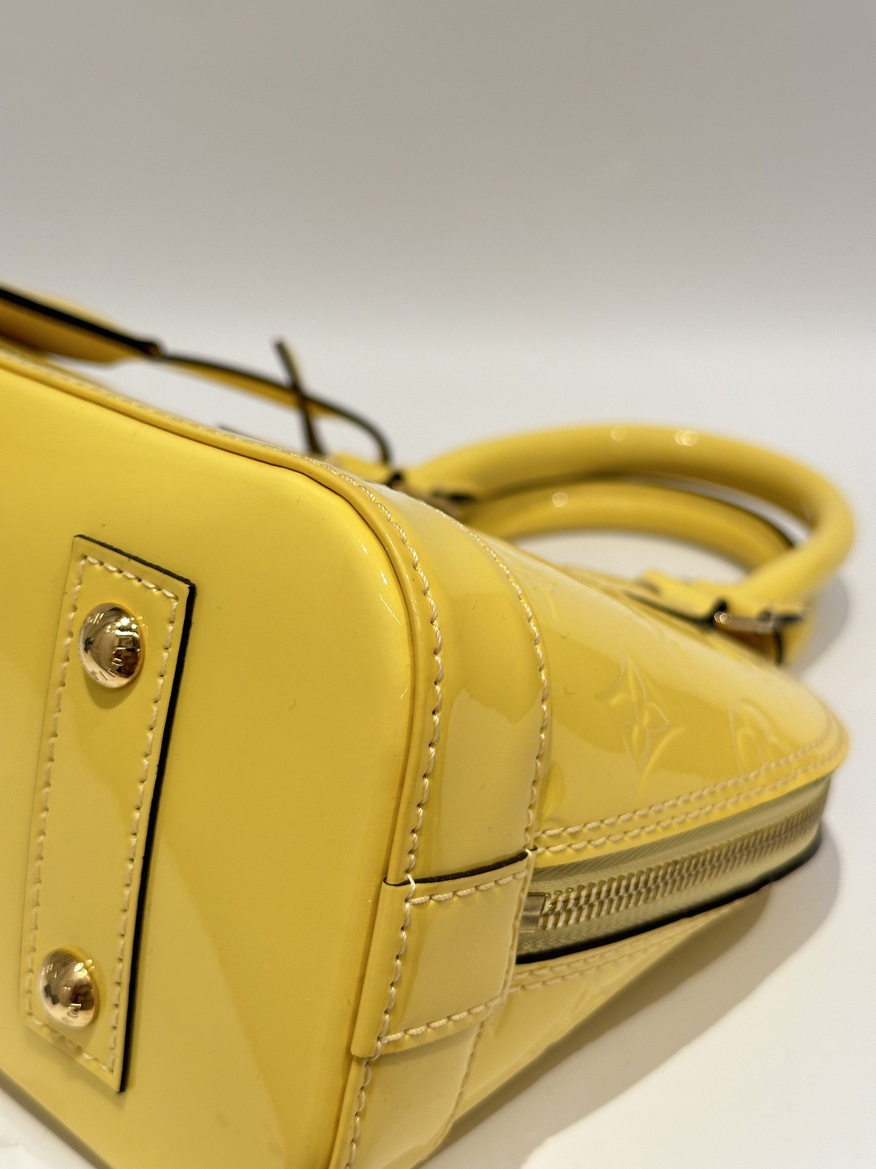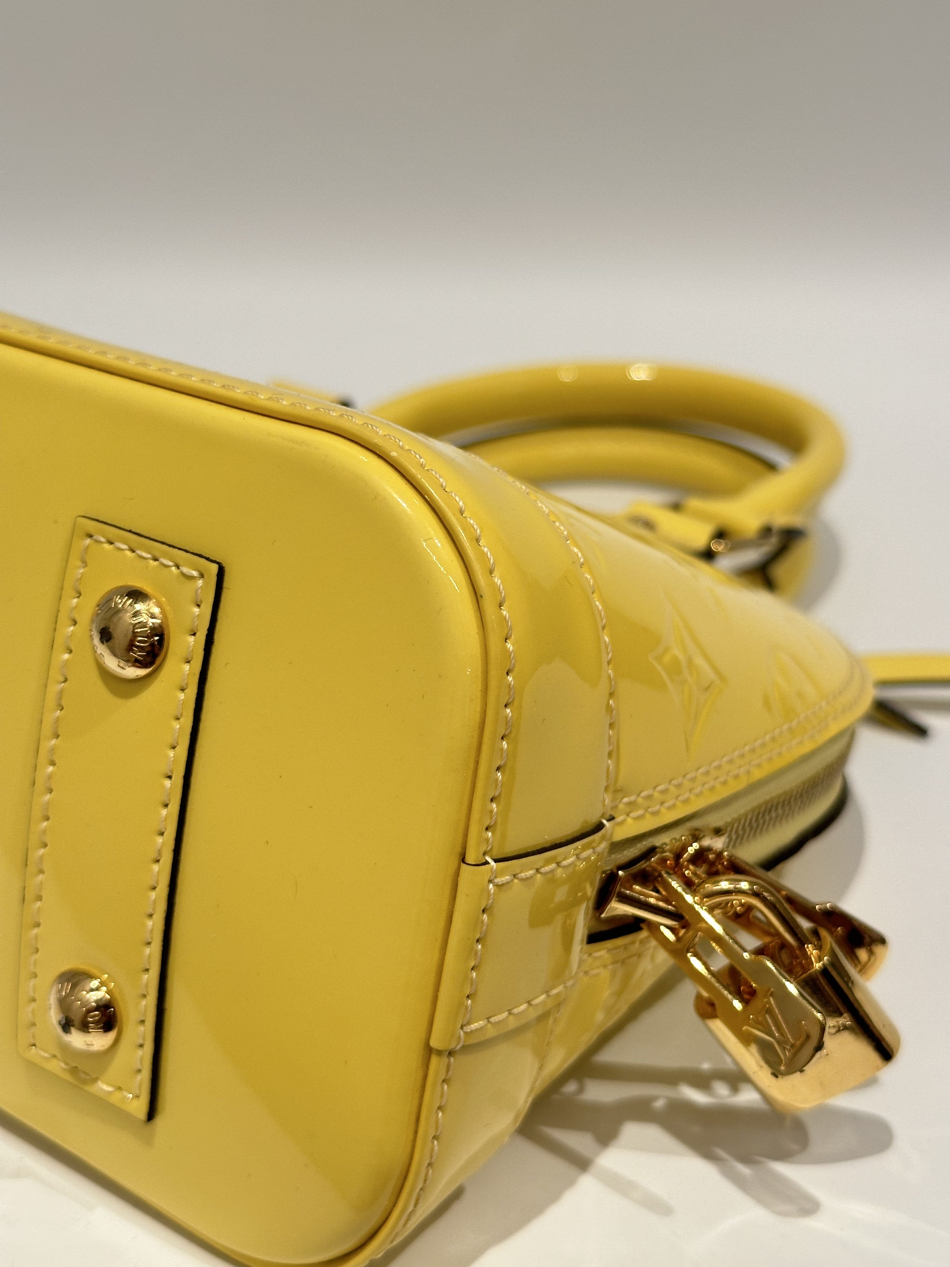 Louis vuitton yellow alma bb patent leather bag