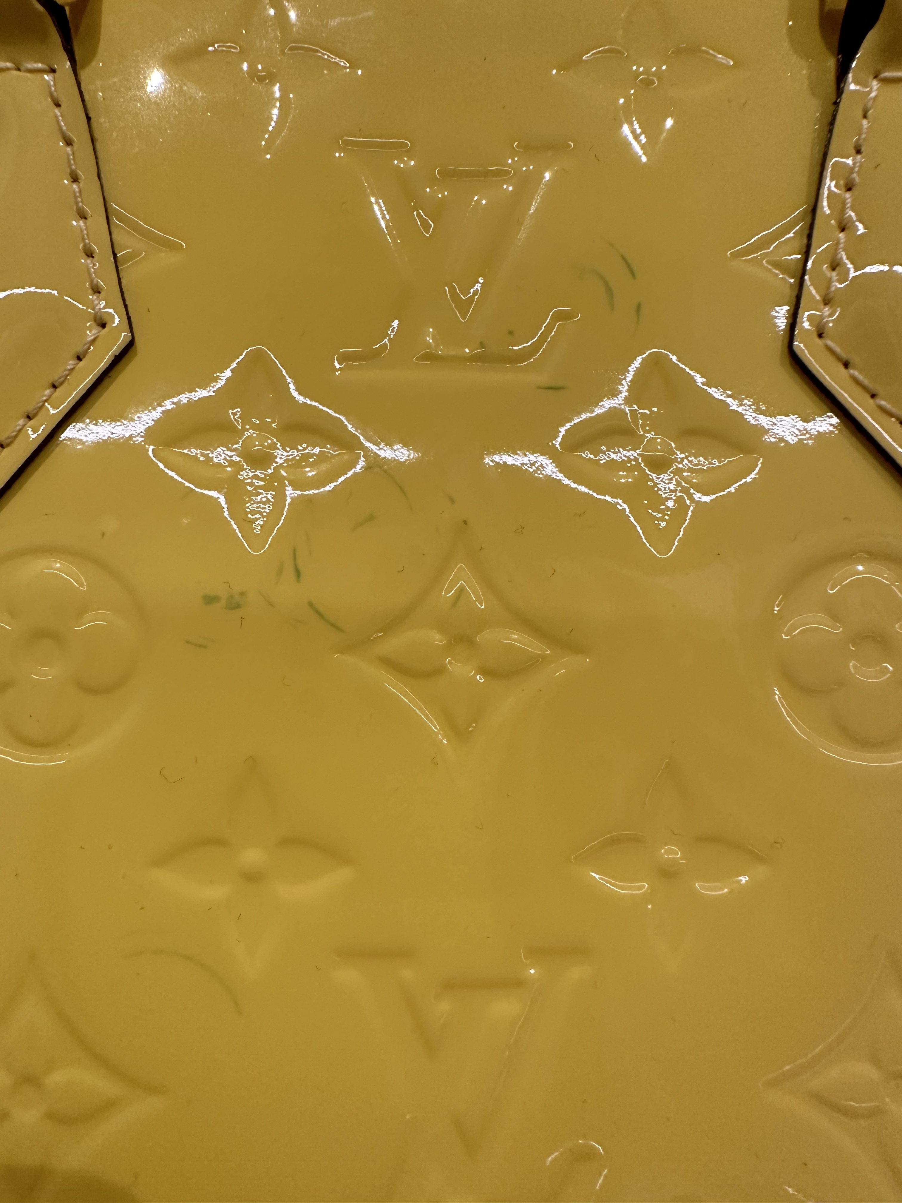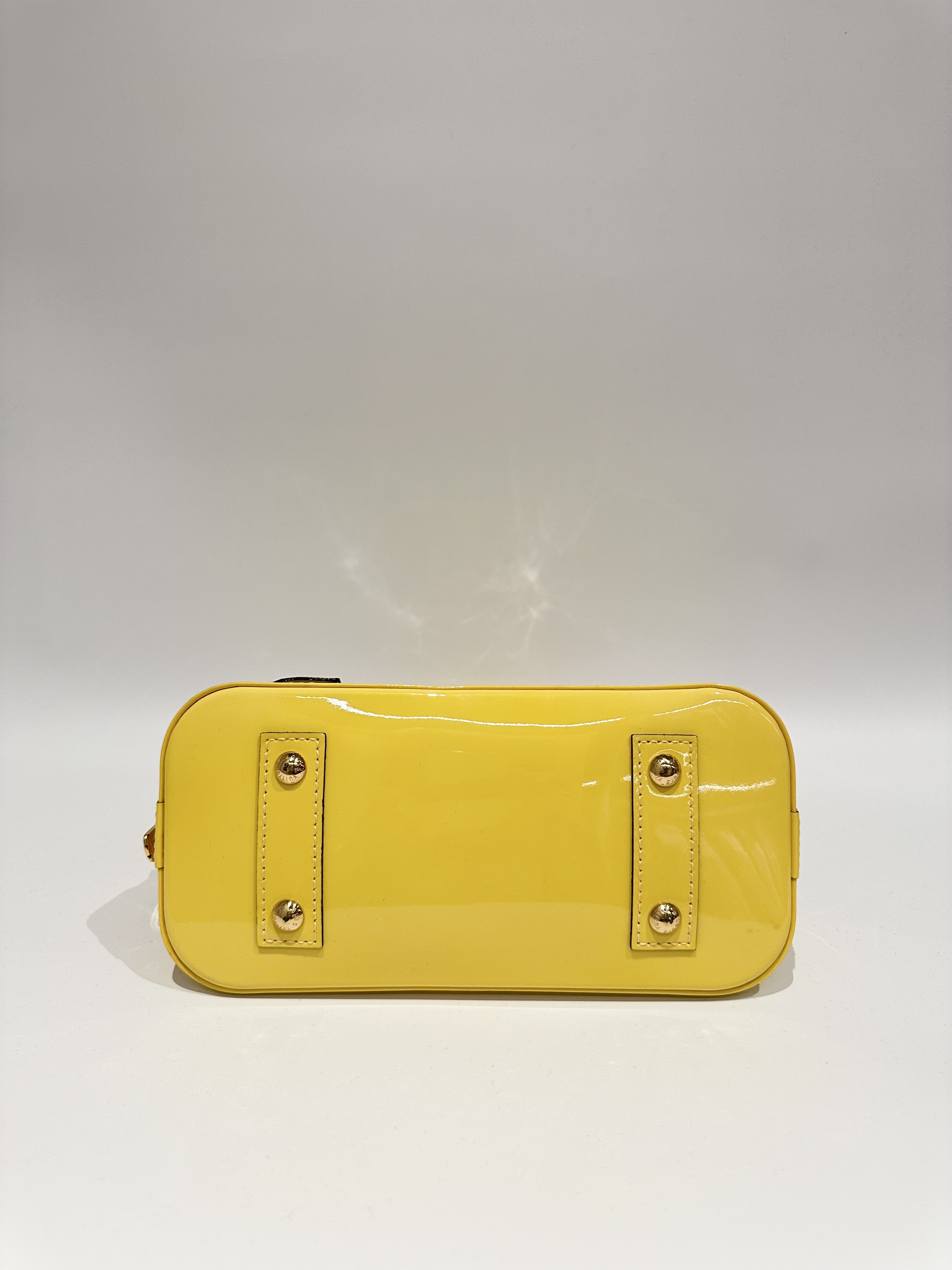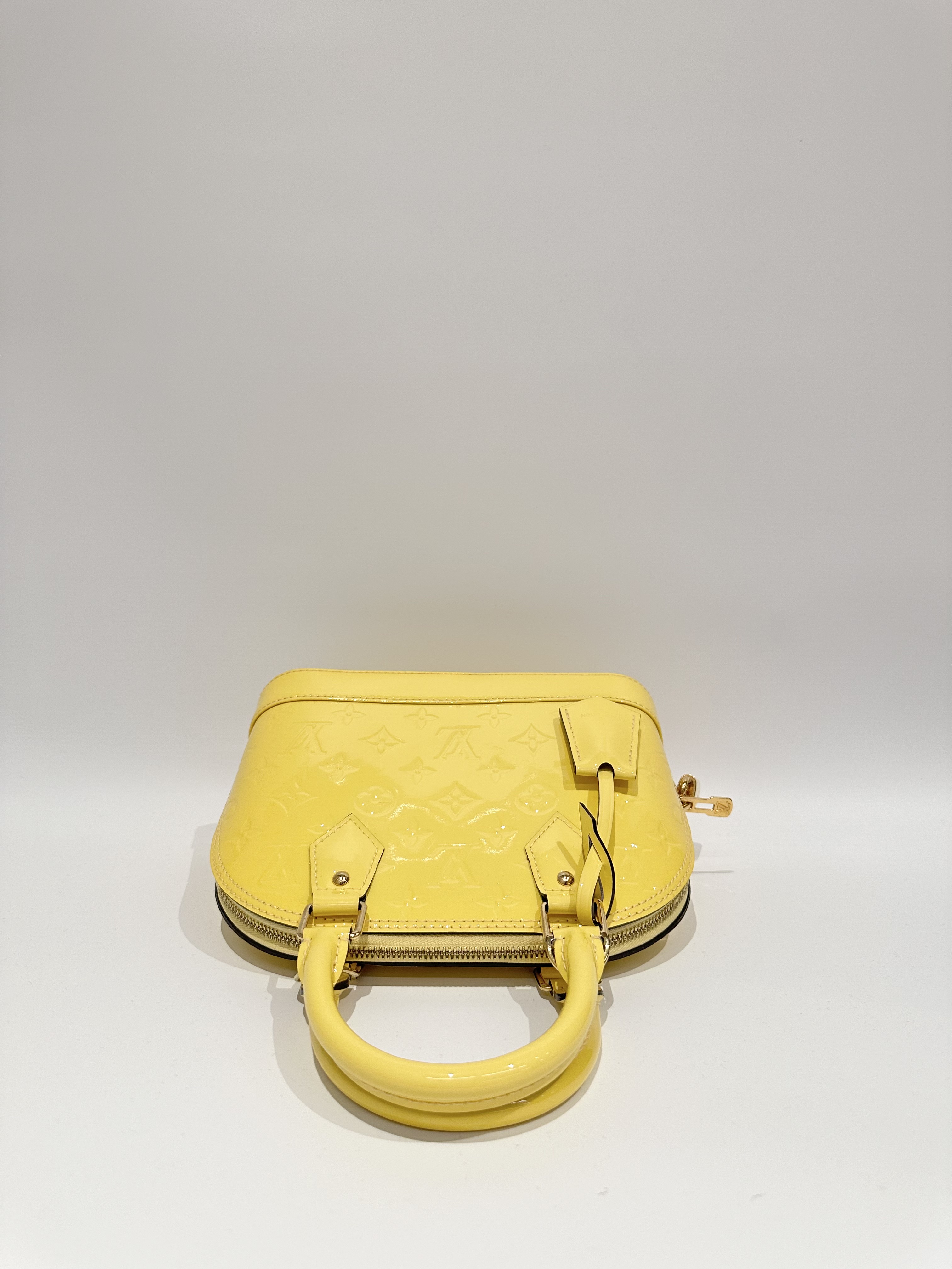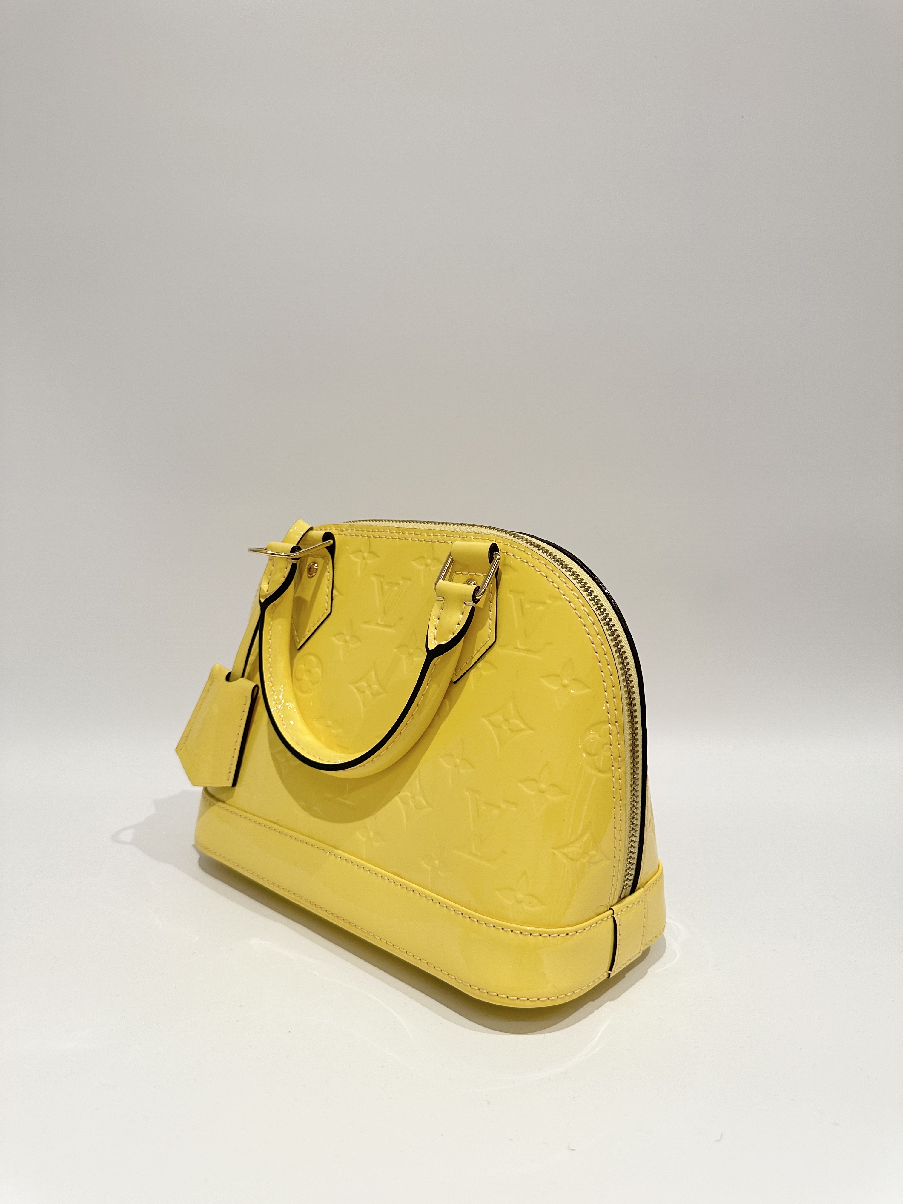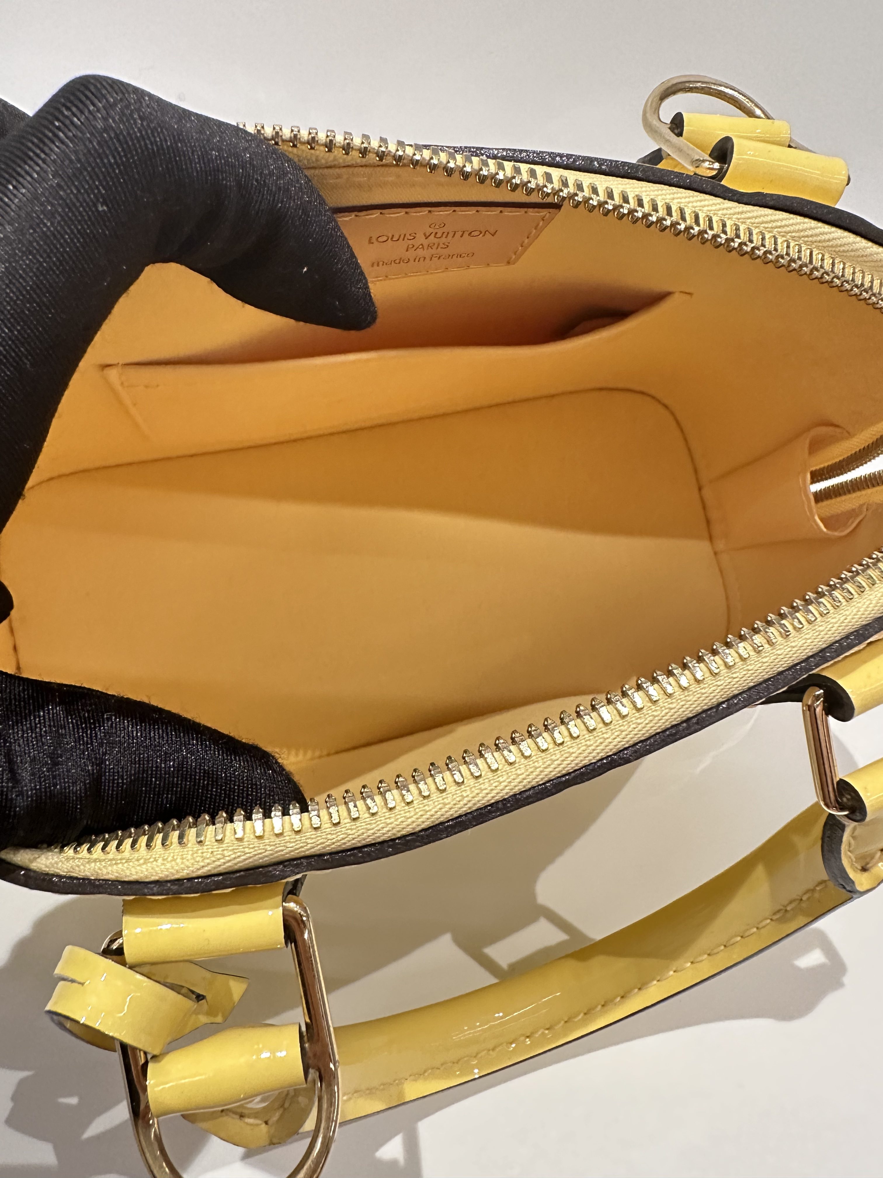 Louis vuitton yellow alma bb patent leather bag