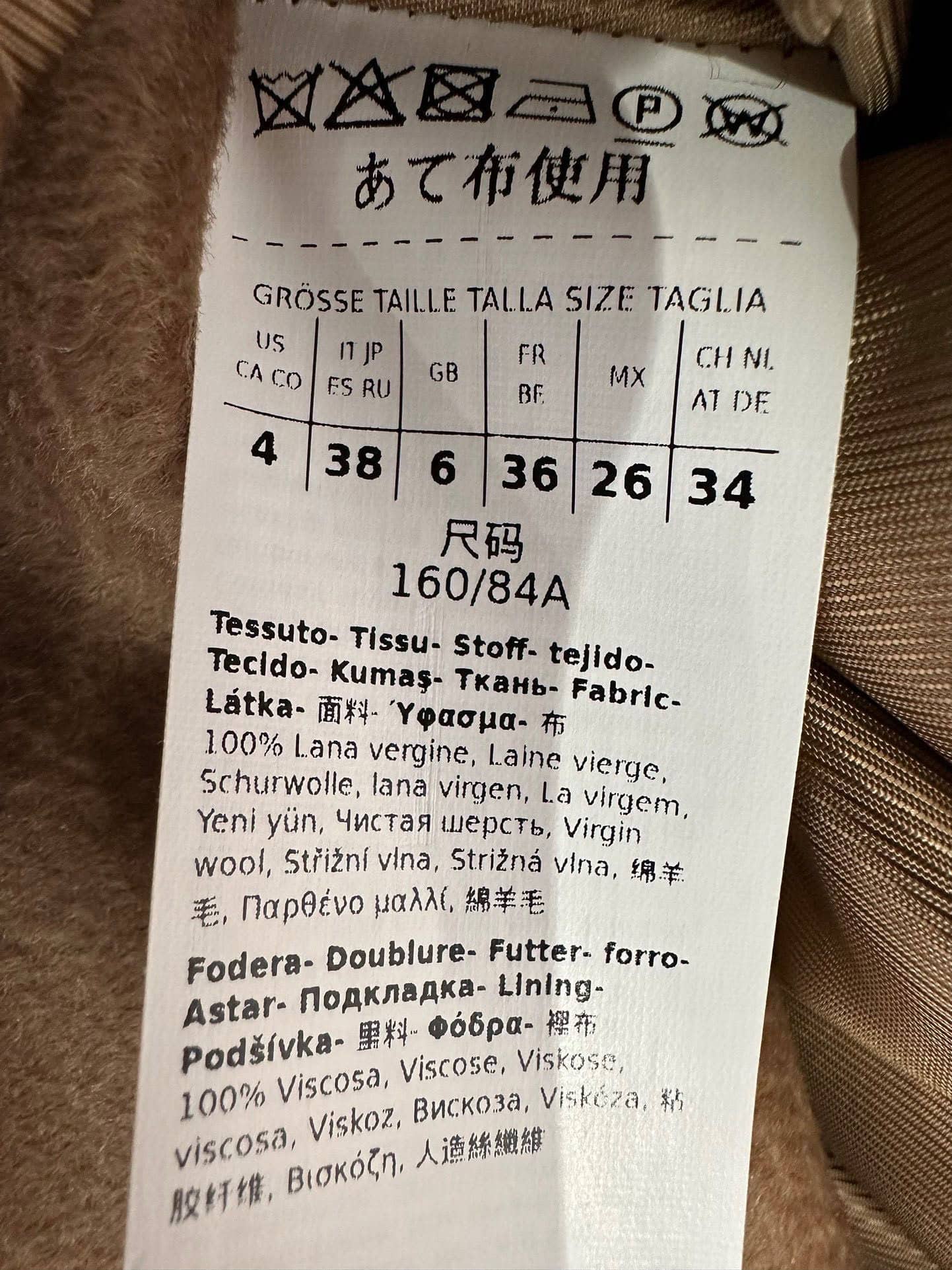 Max Mara Studio Camel Wool Coat Bcollag Size: IT38