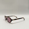 Acetate sunglasses with a sophisticated oval shape. The acetate frame has thin rims and ultra-flat lenses that highlight the extreme lightness. The vertical Miu Miu logo embellishes the temples with a refined touch.