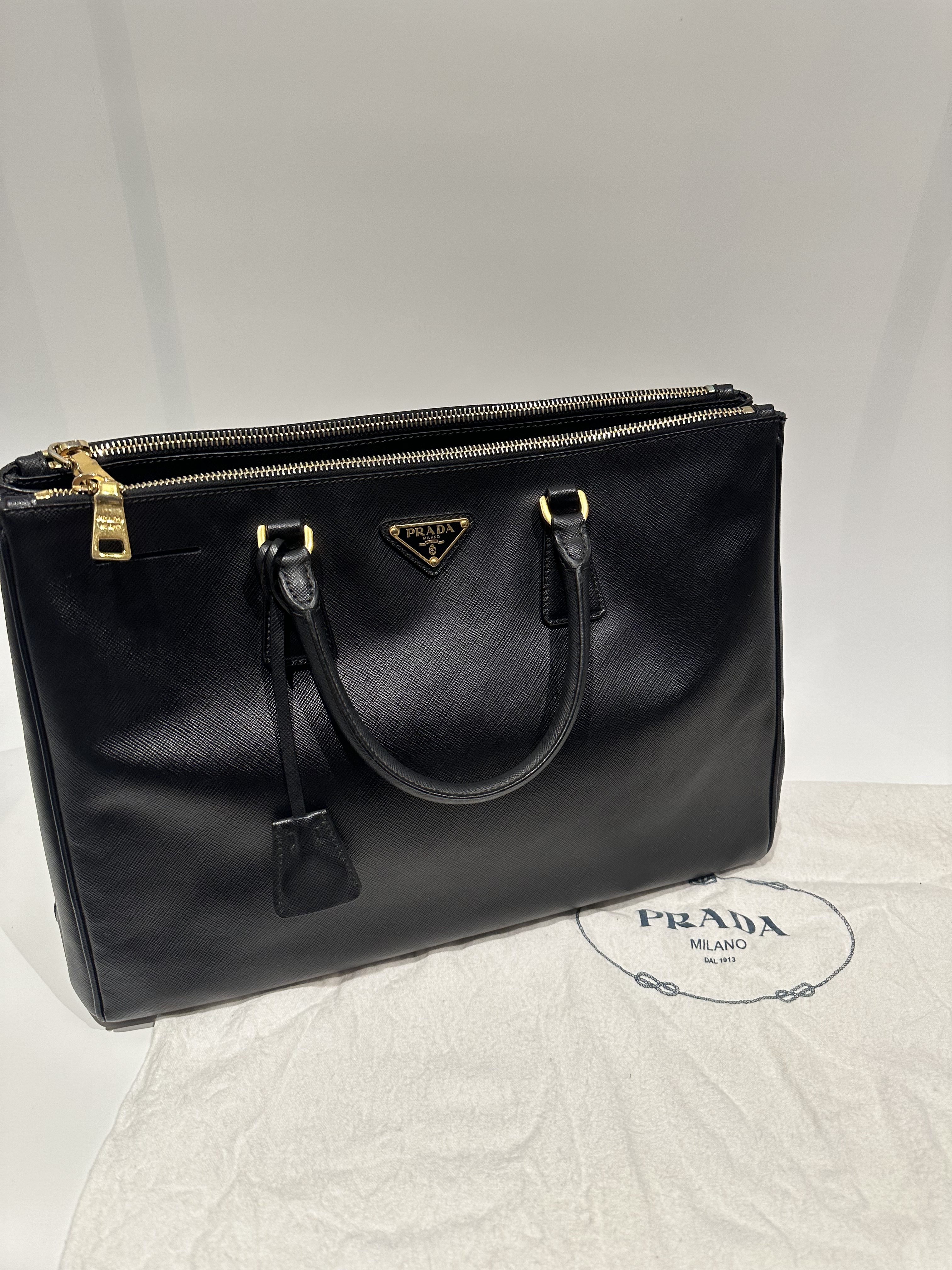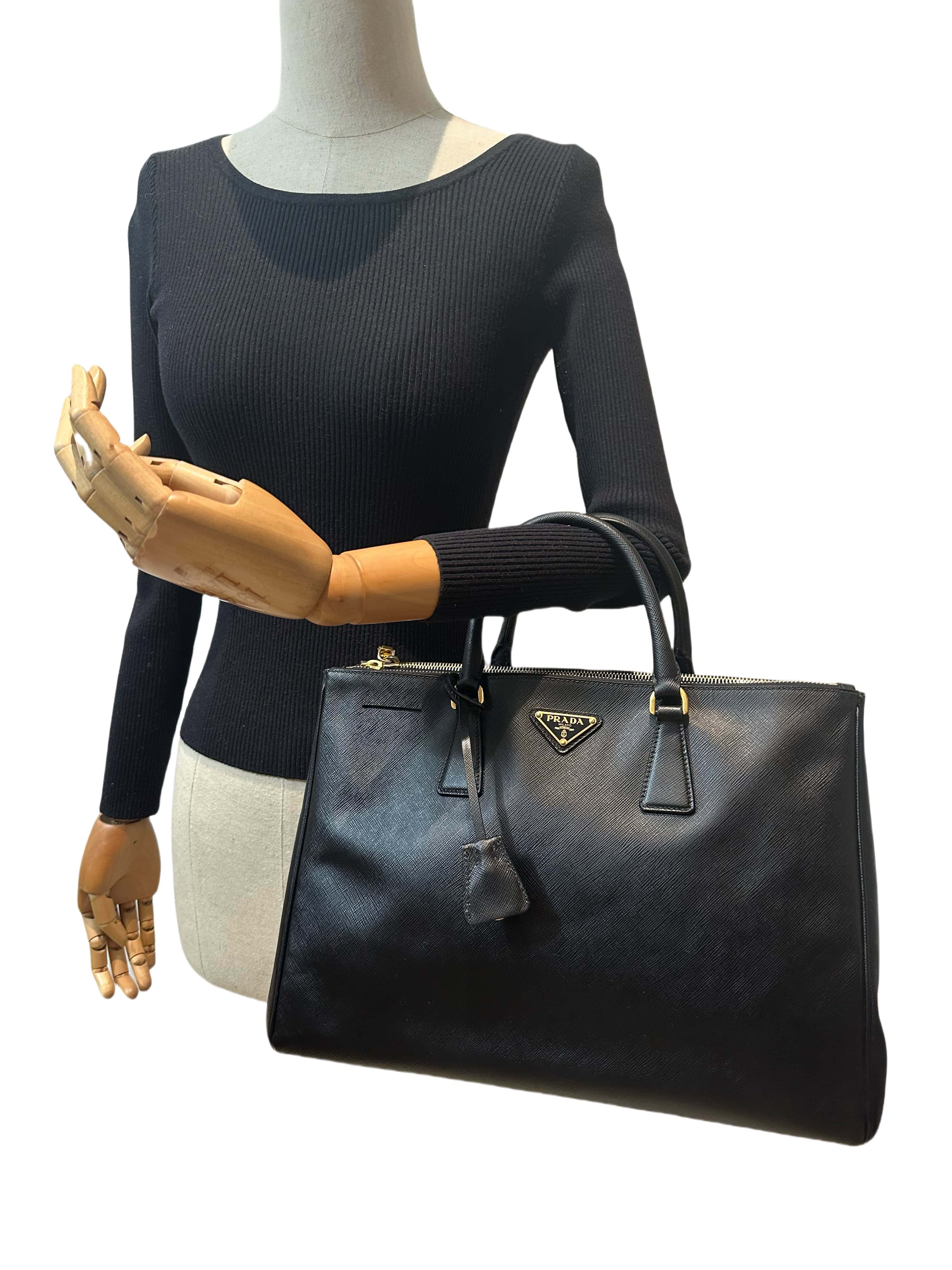 Prada Black Galleria Saffiano Leahter Handbag Large Size