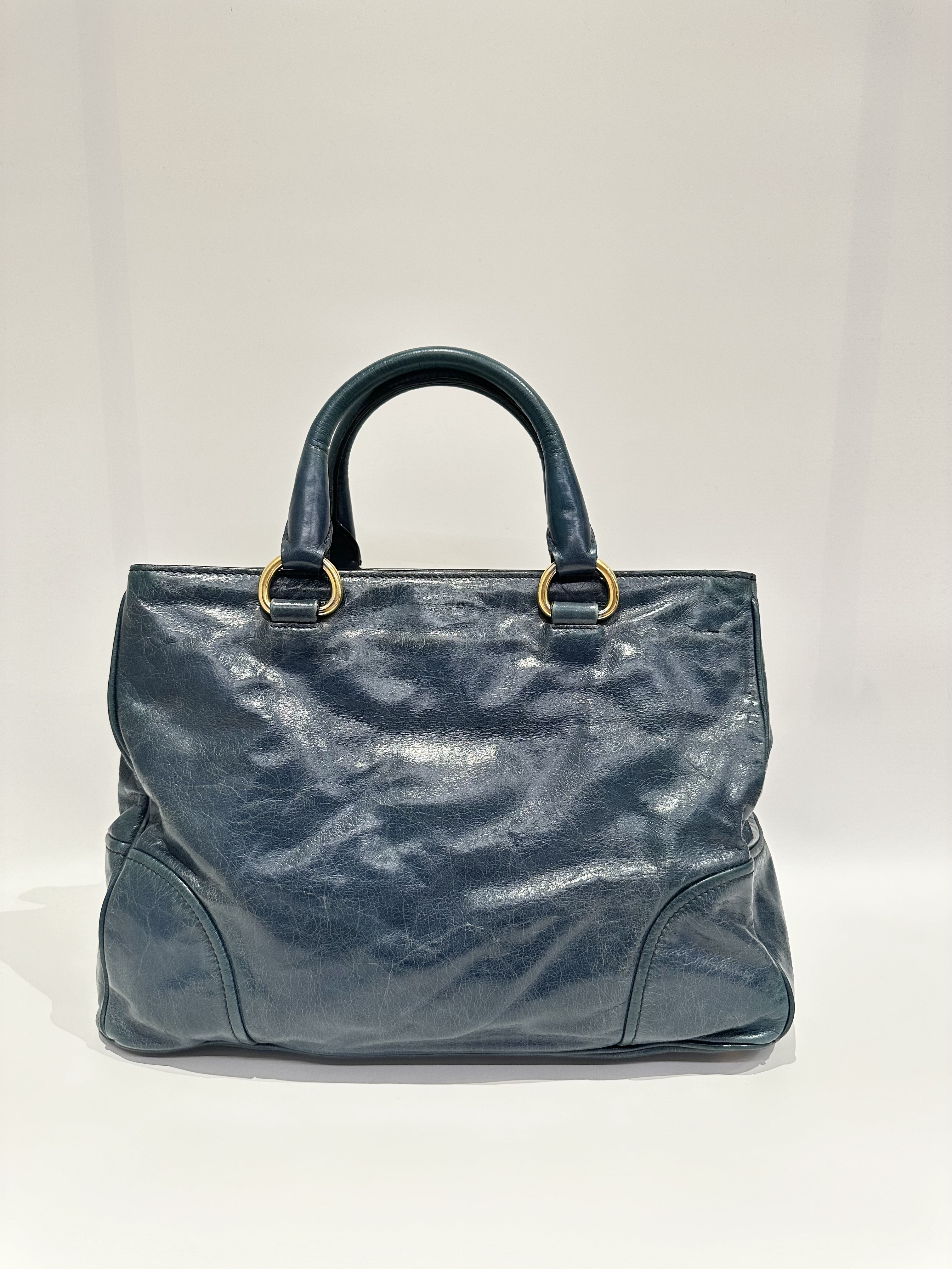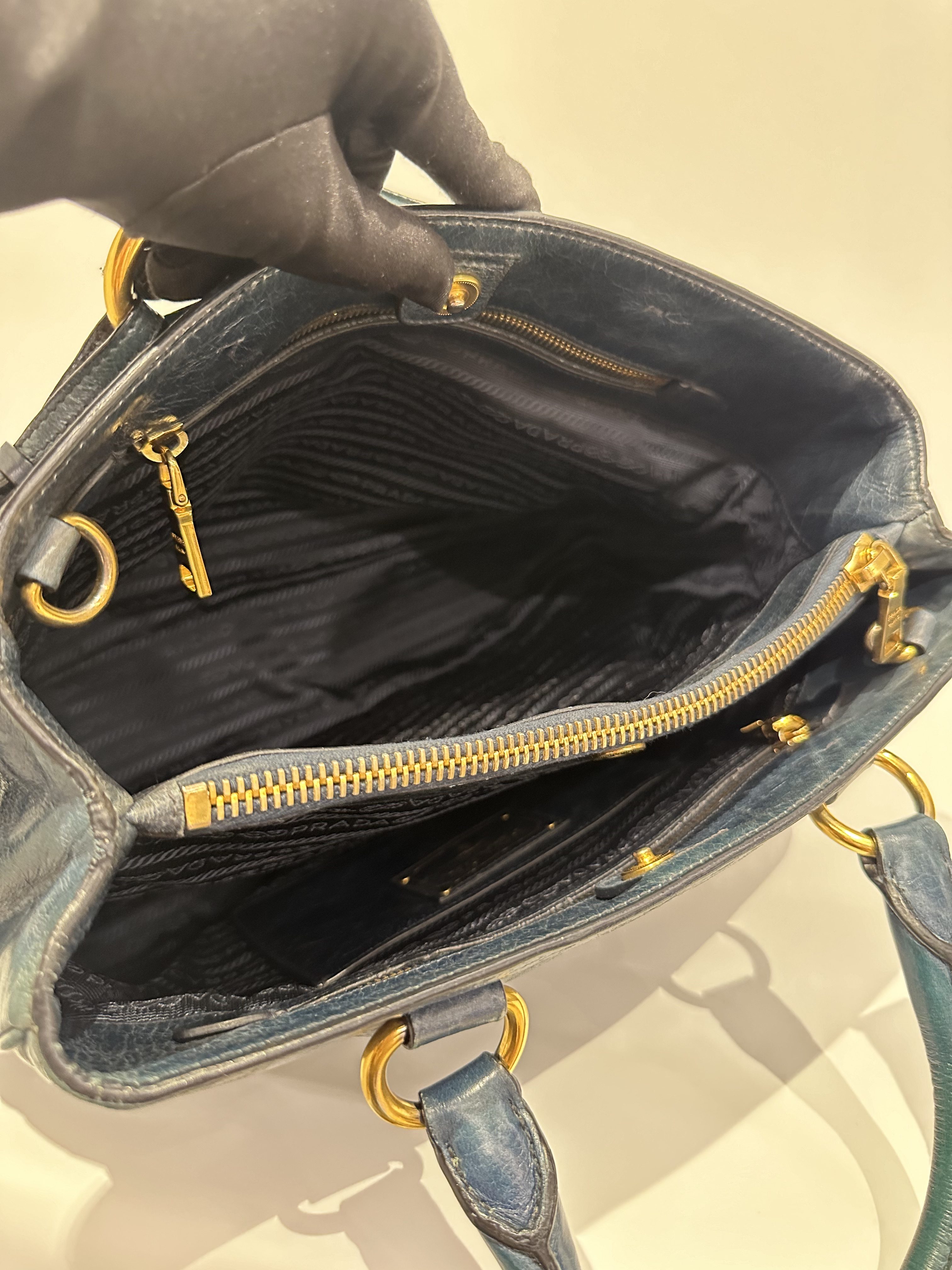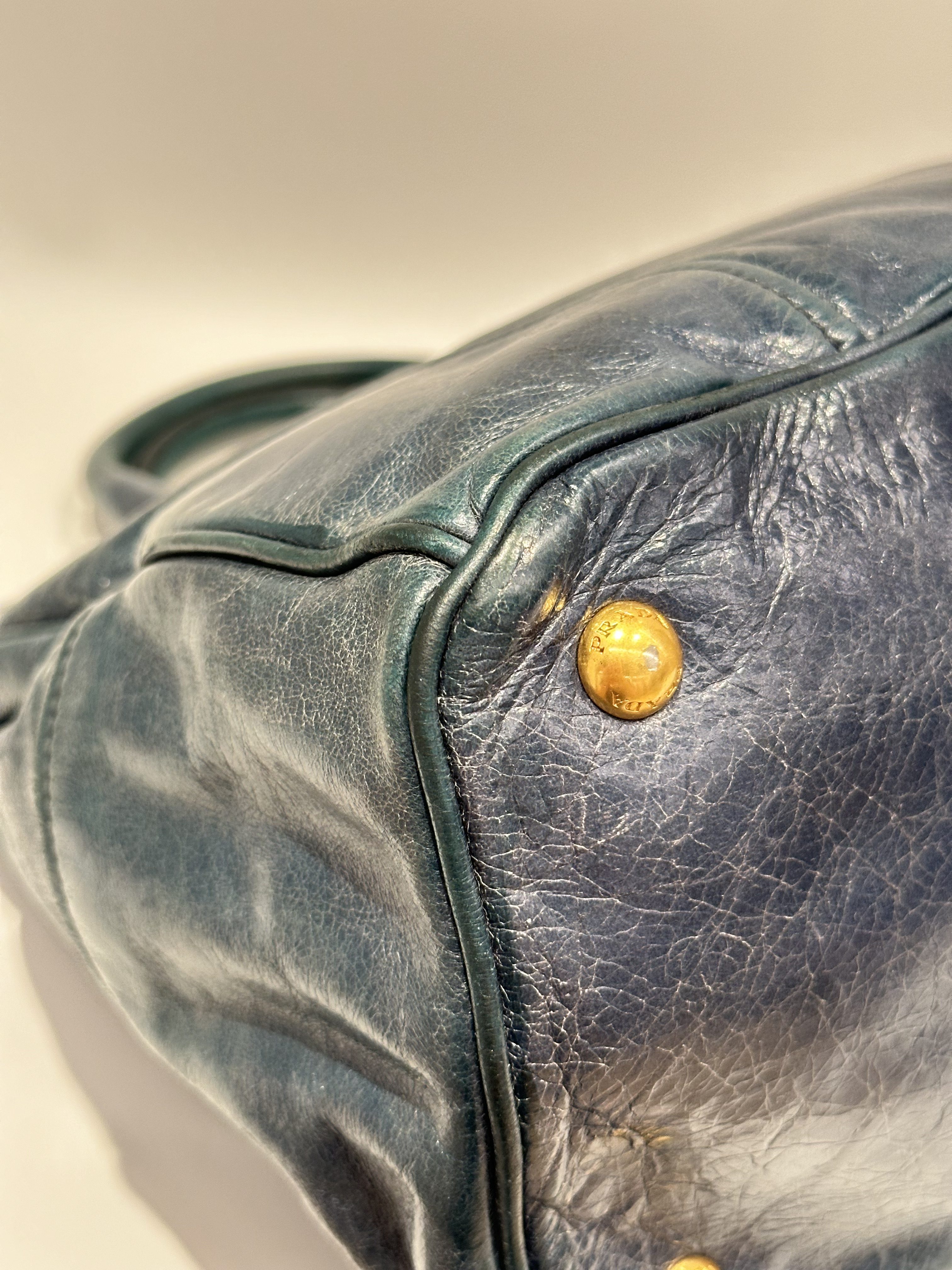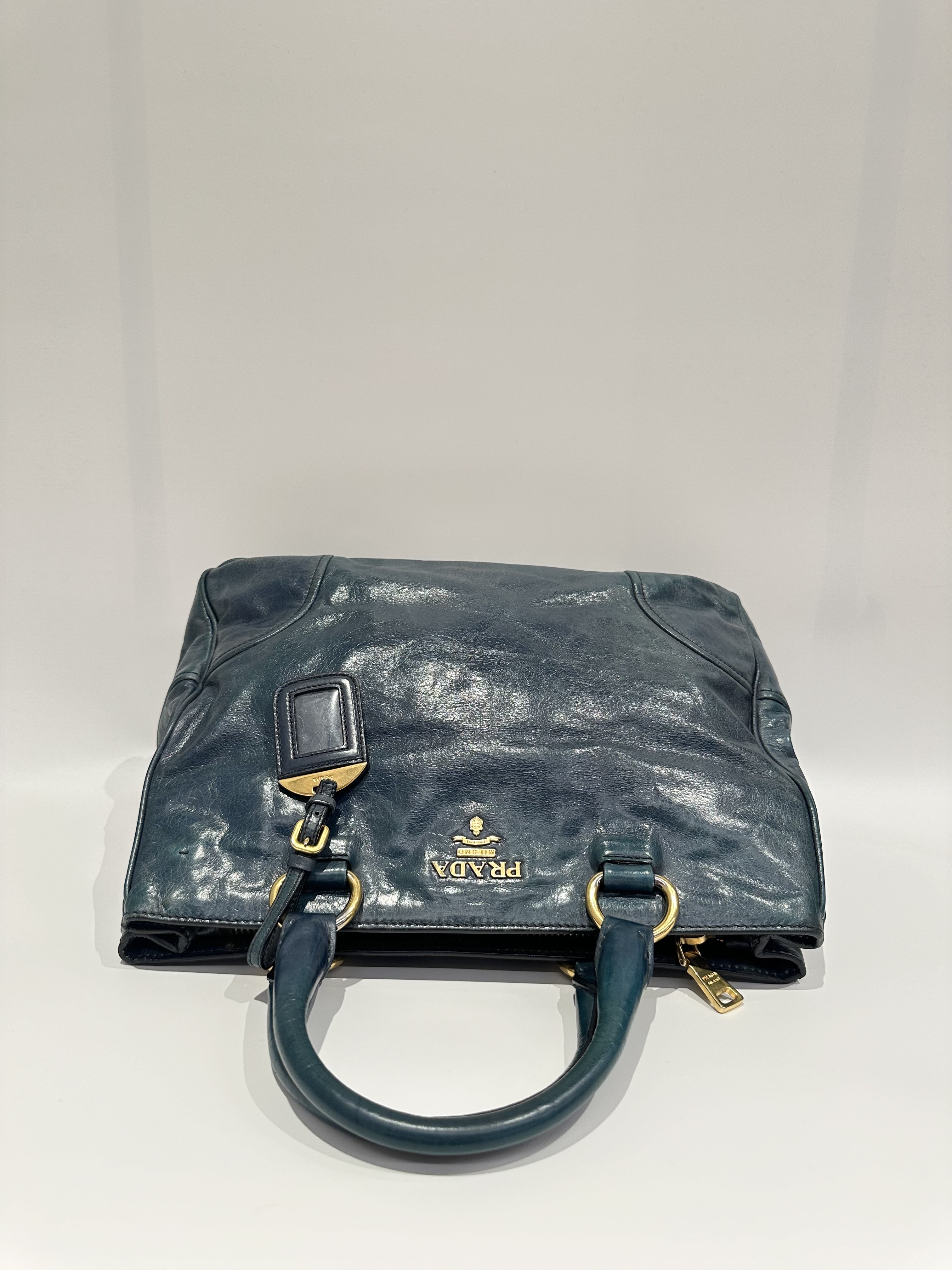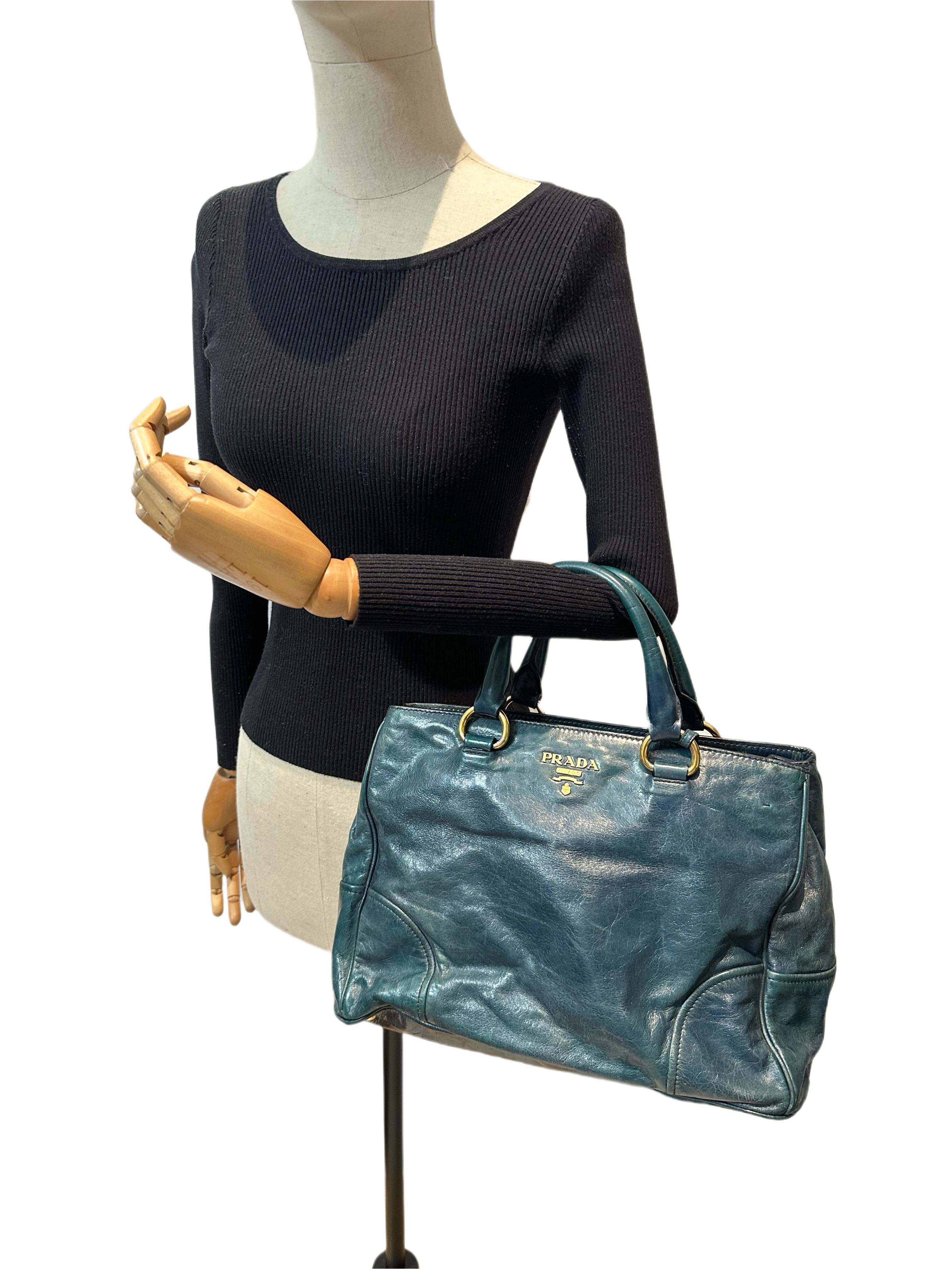 Prada Dark Green Leather Handbag