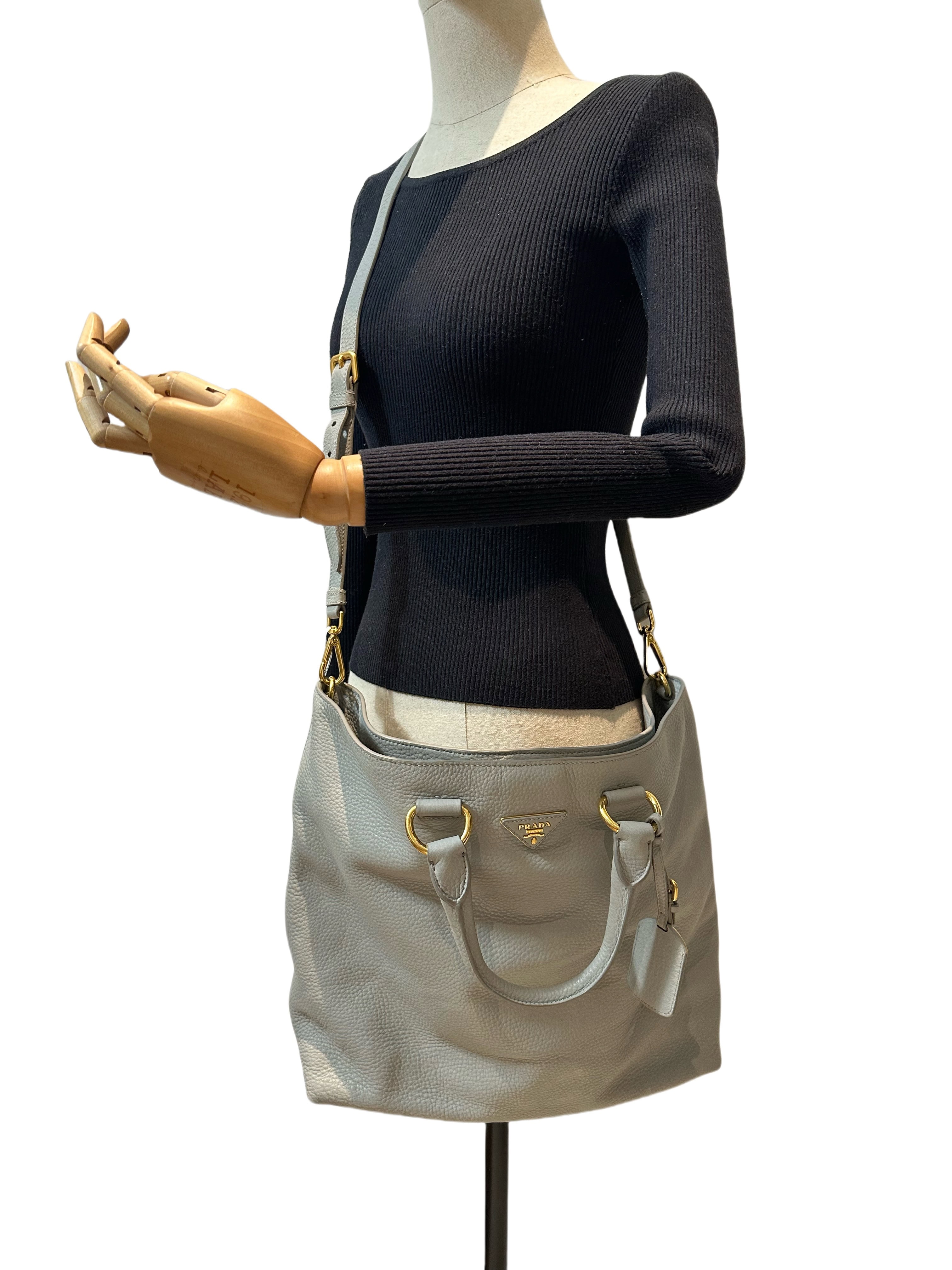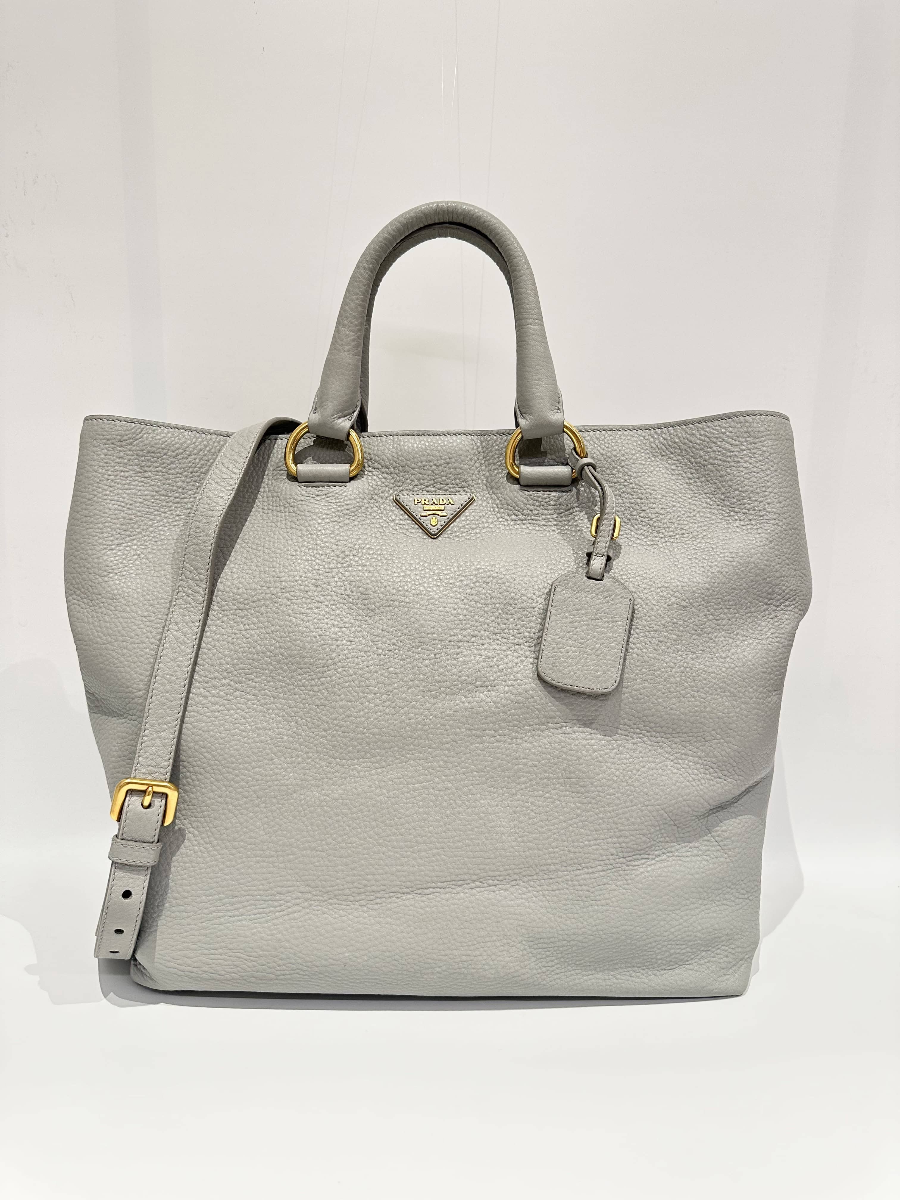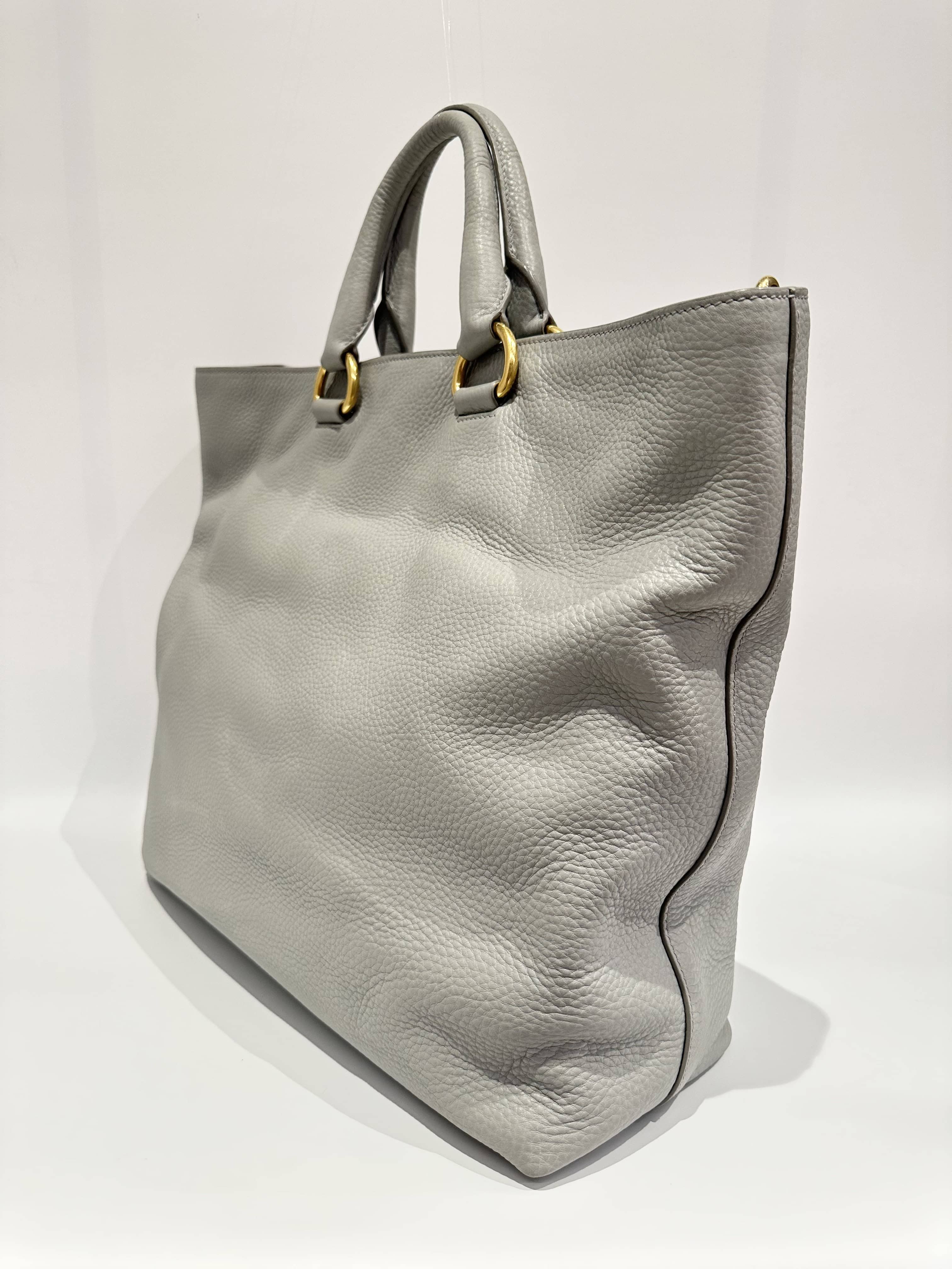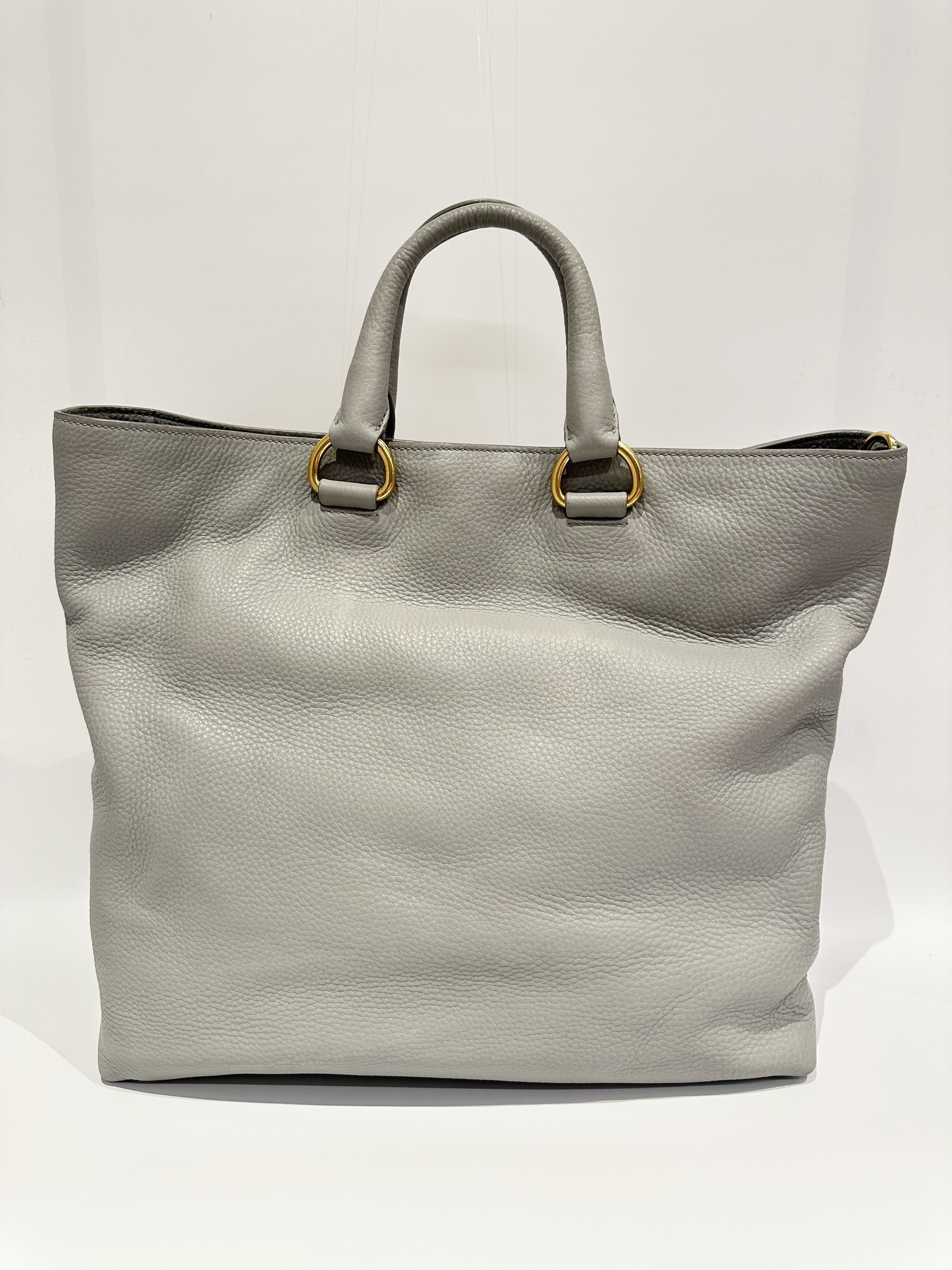 Prada Grey Two-way Leather Tote Bag