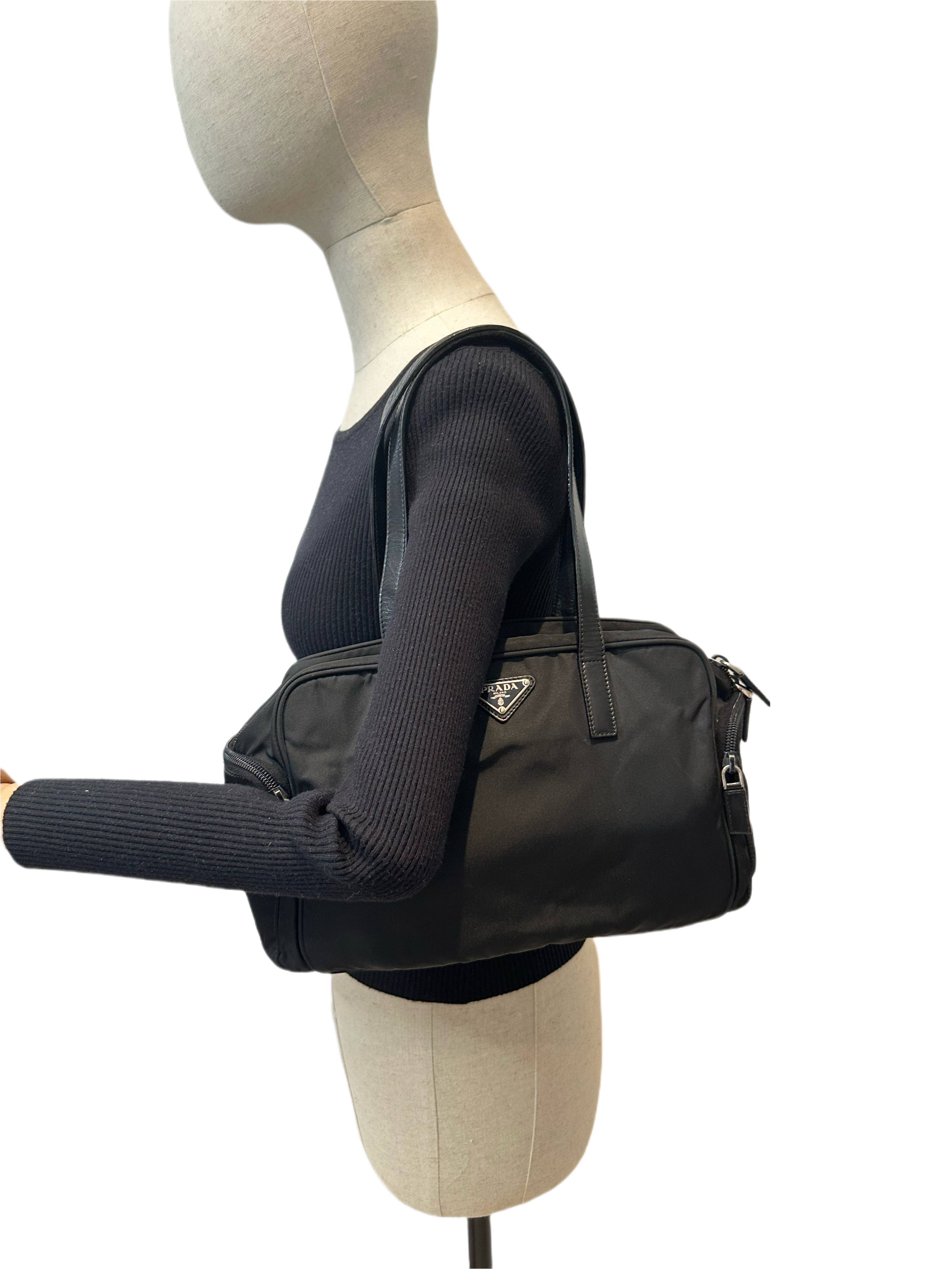 Prada Vintage Black Nylon Shoulder Bag