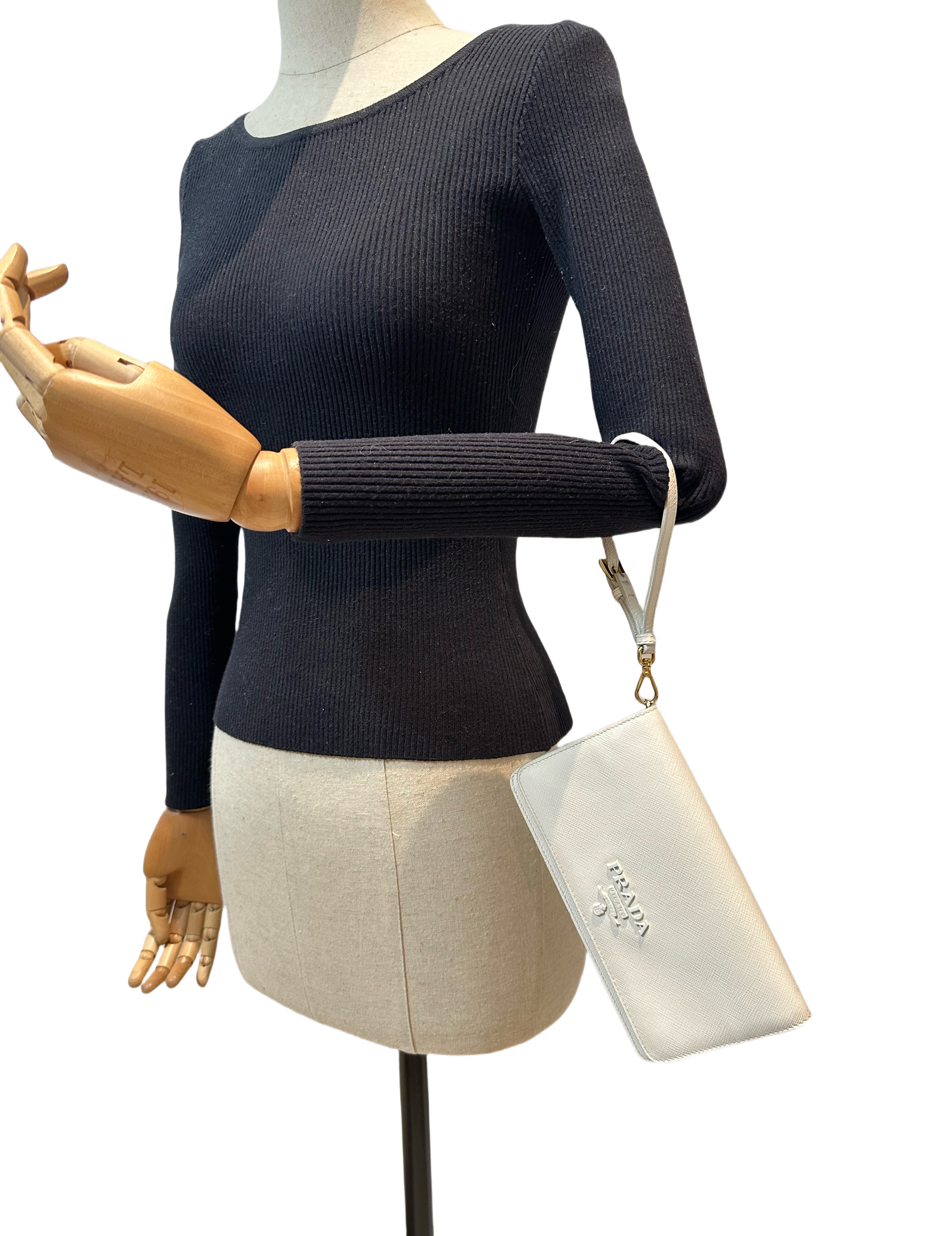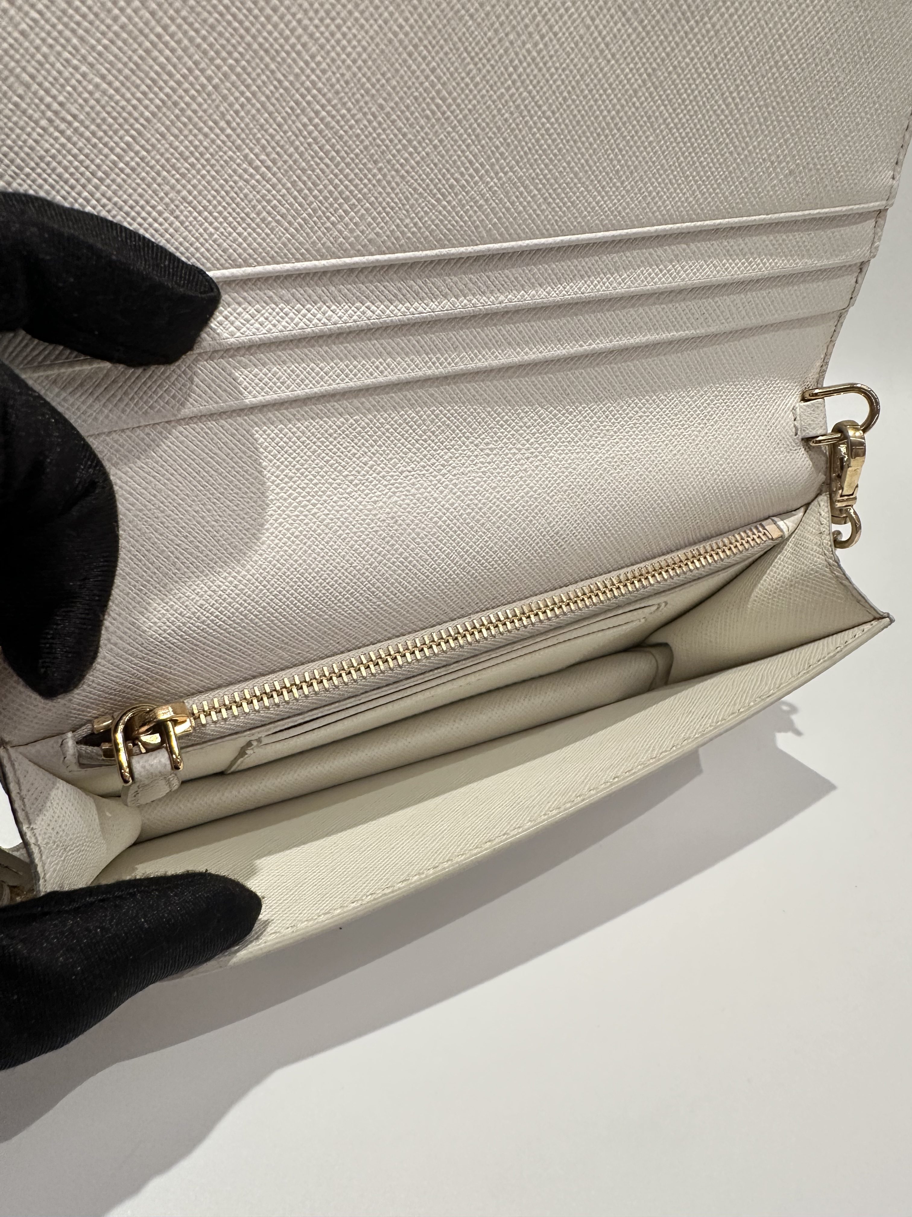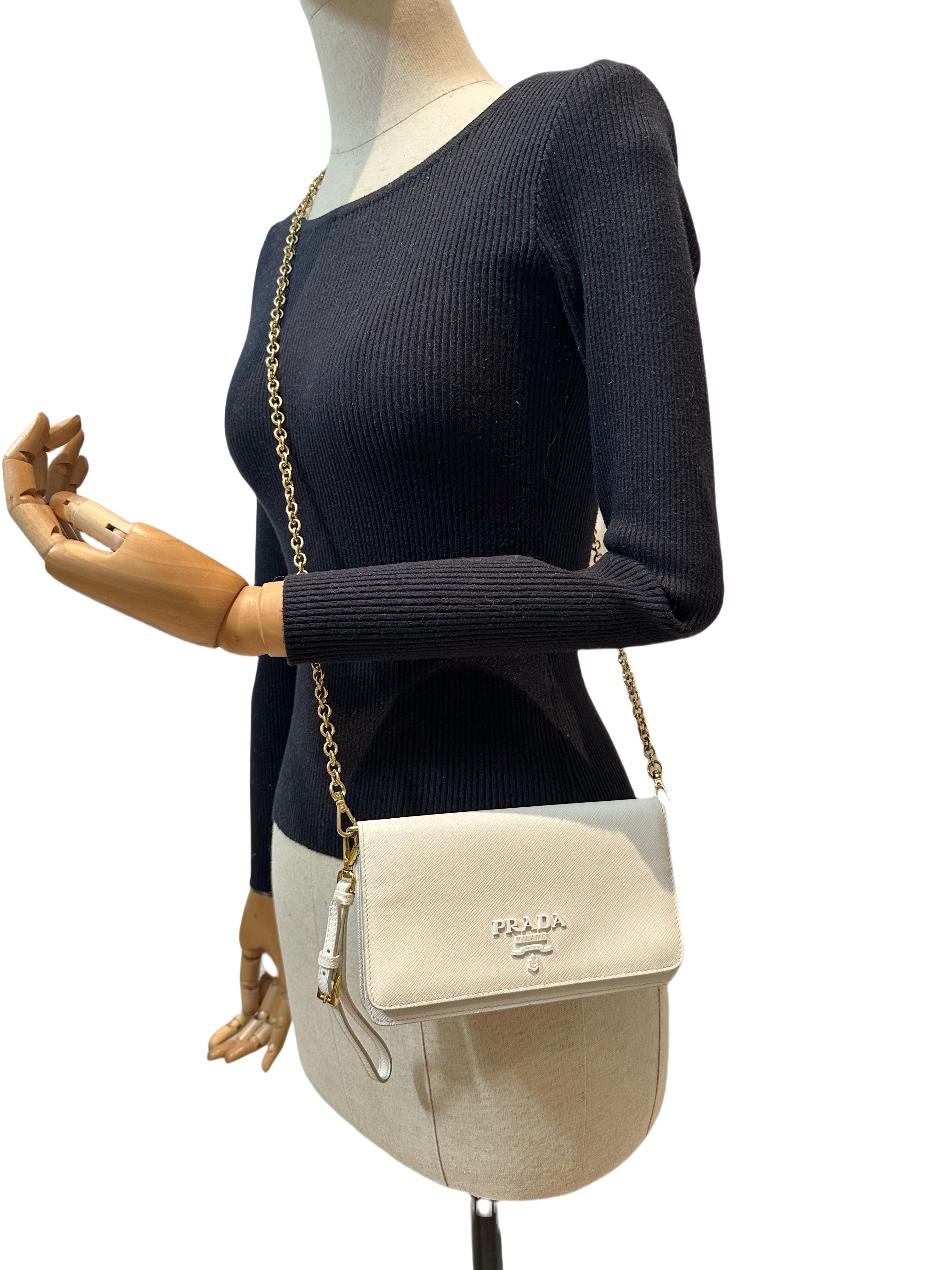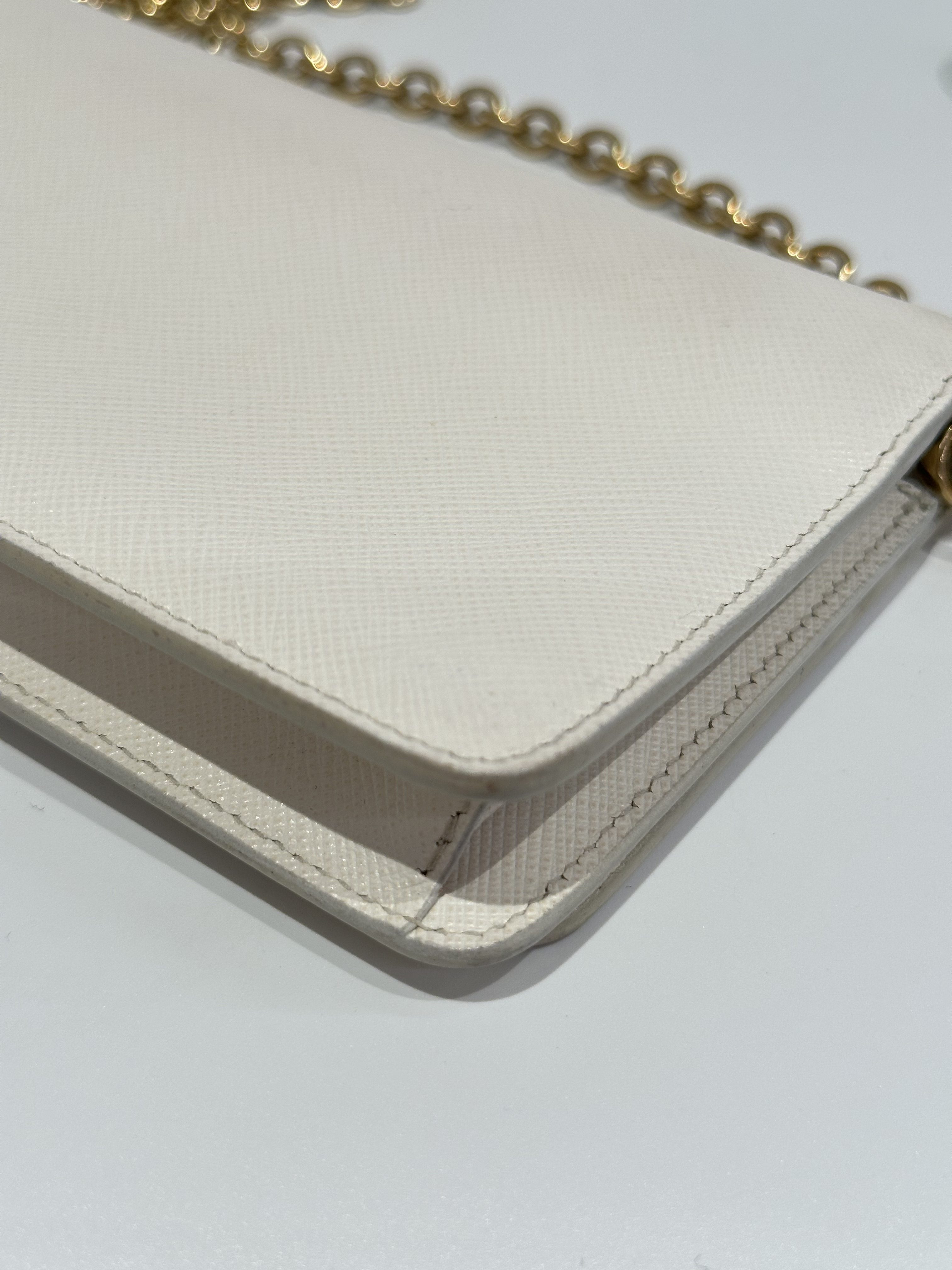 Prada White Saffiano Leather Wallet On Chain