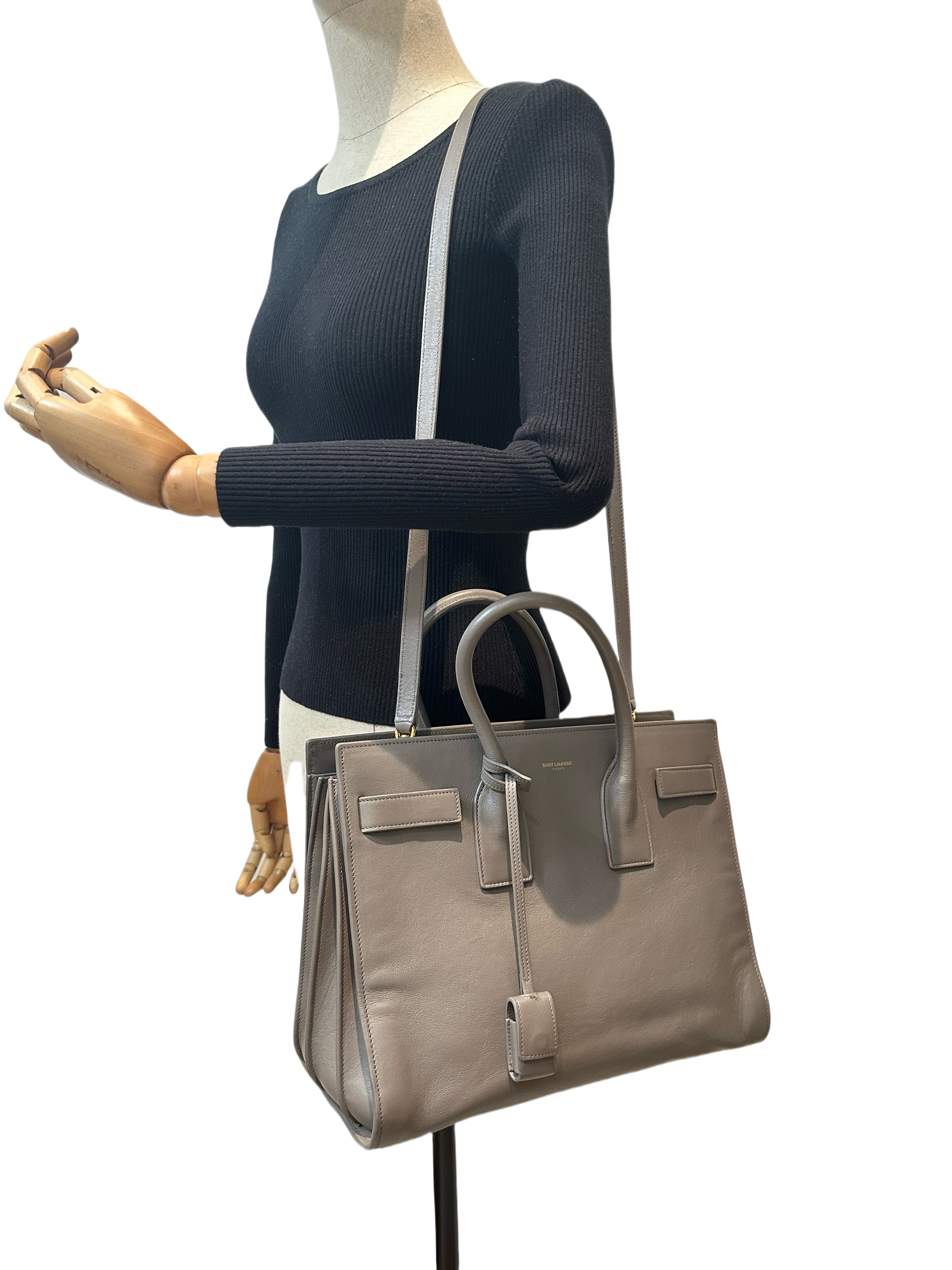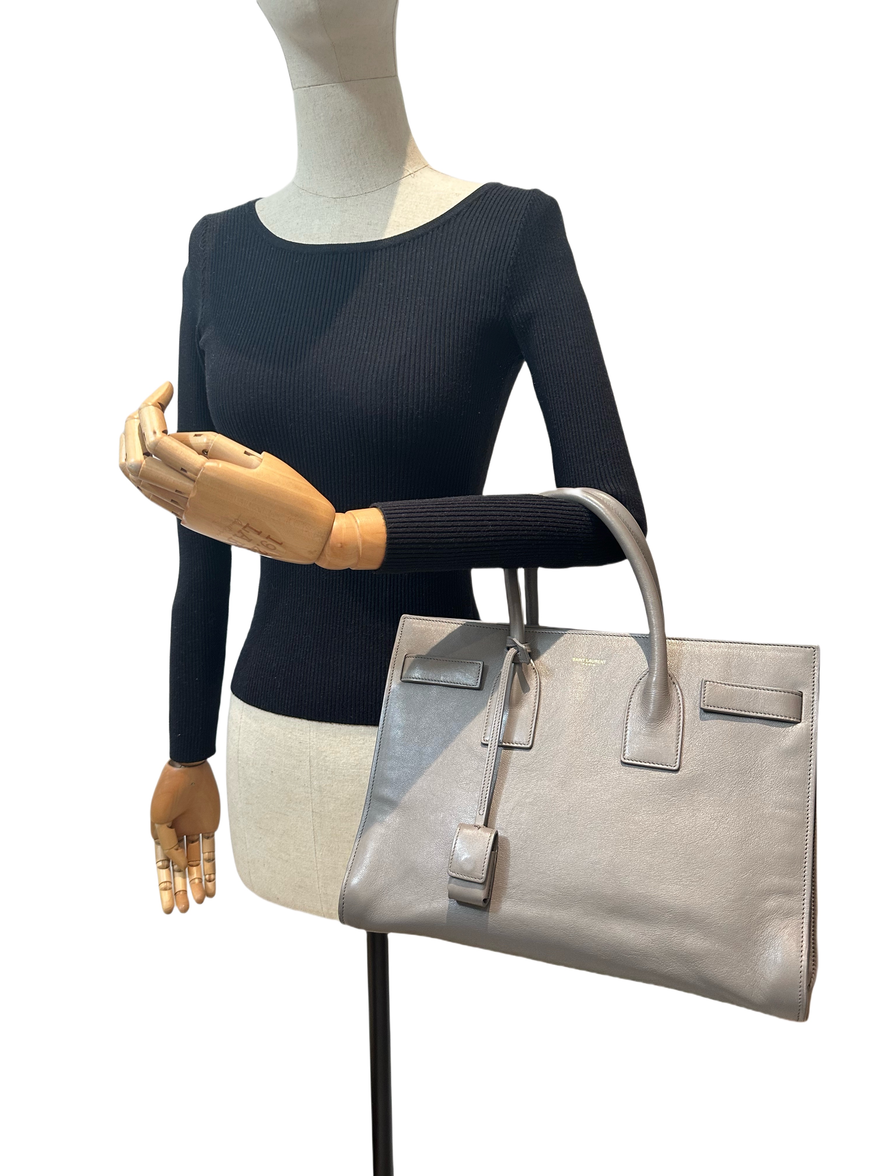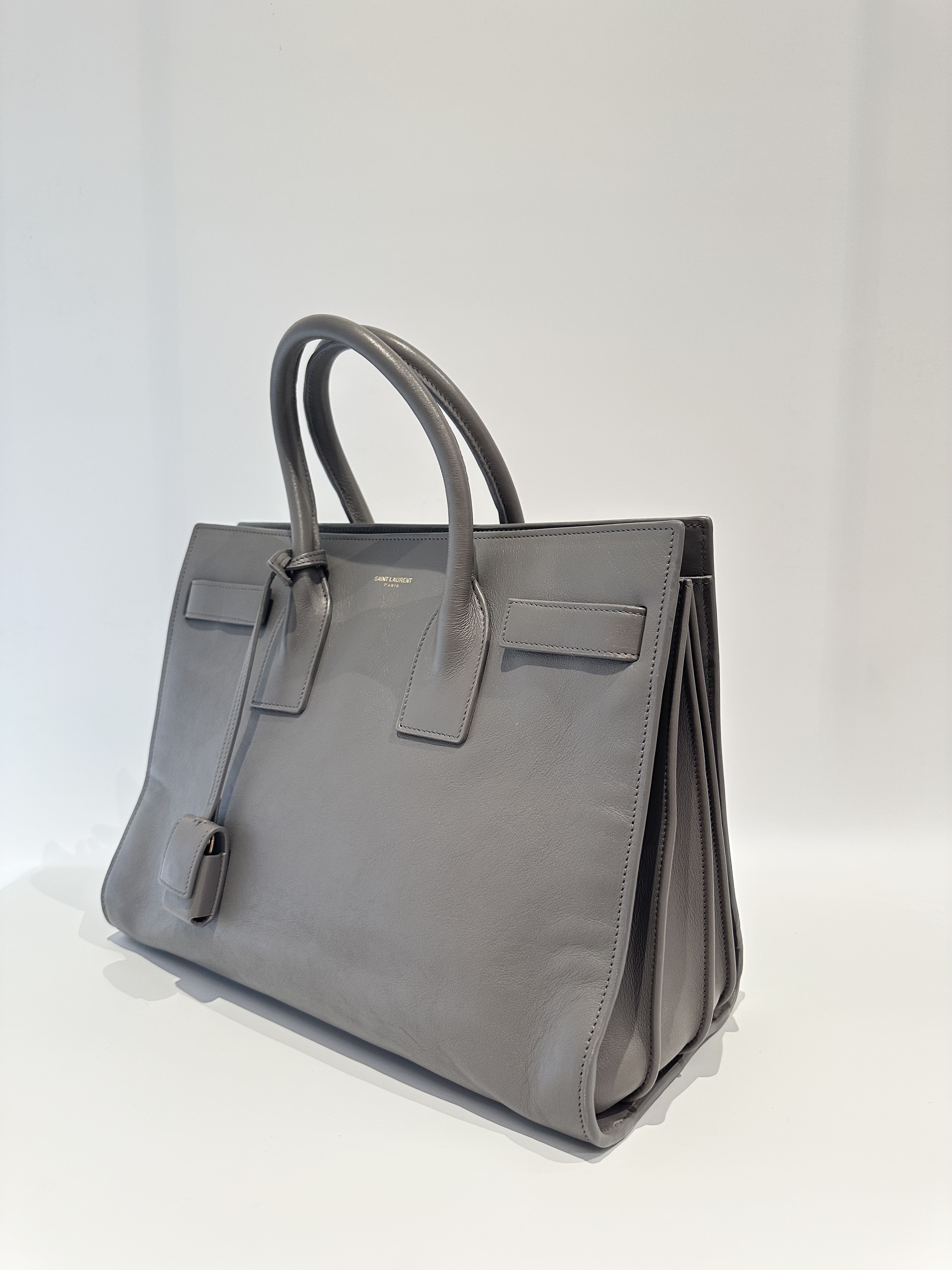 Saint Laurent Grey Sac De Jour Leather Handbag
