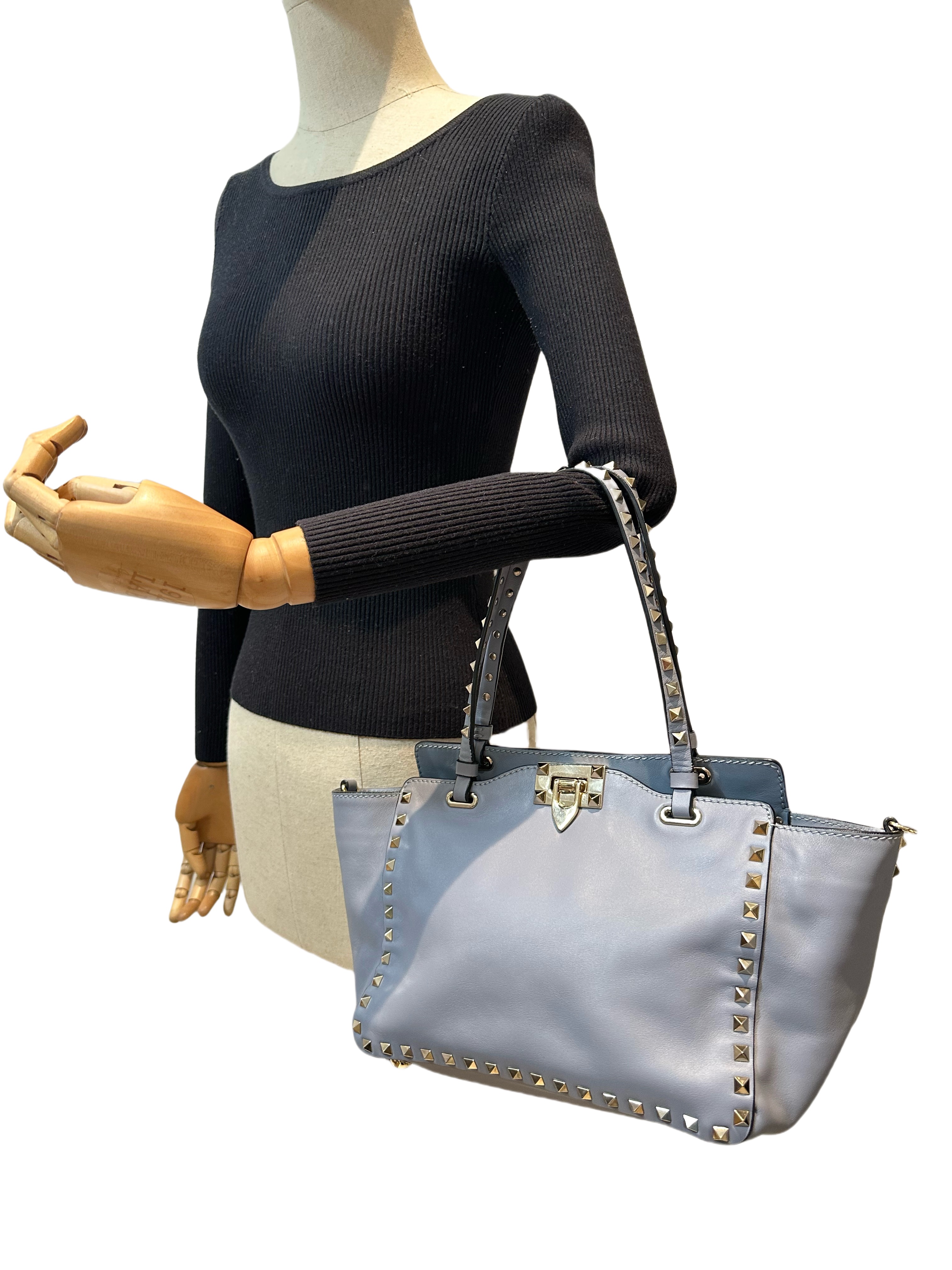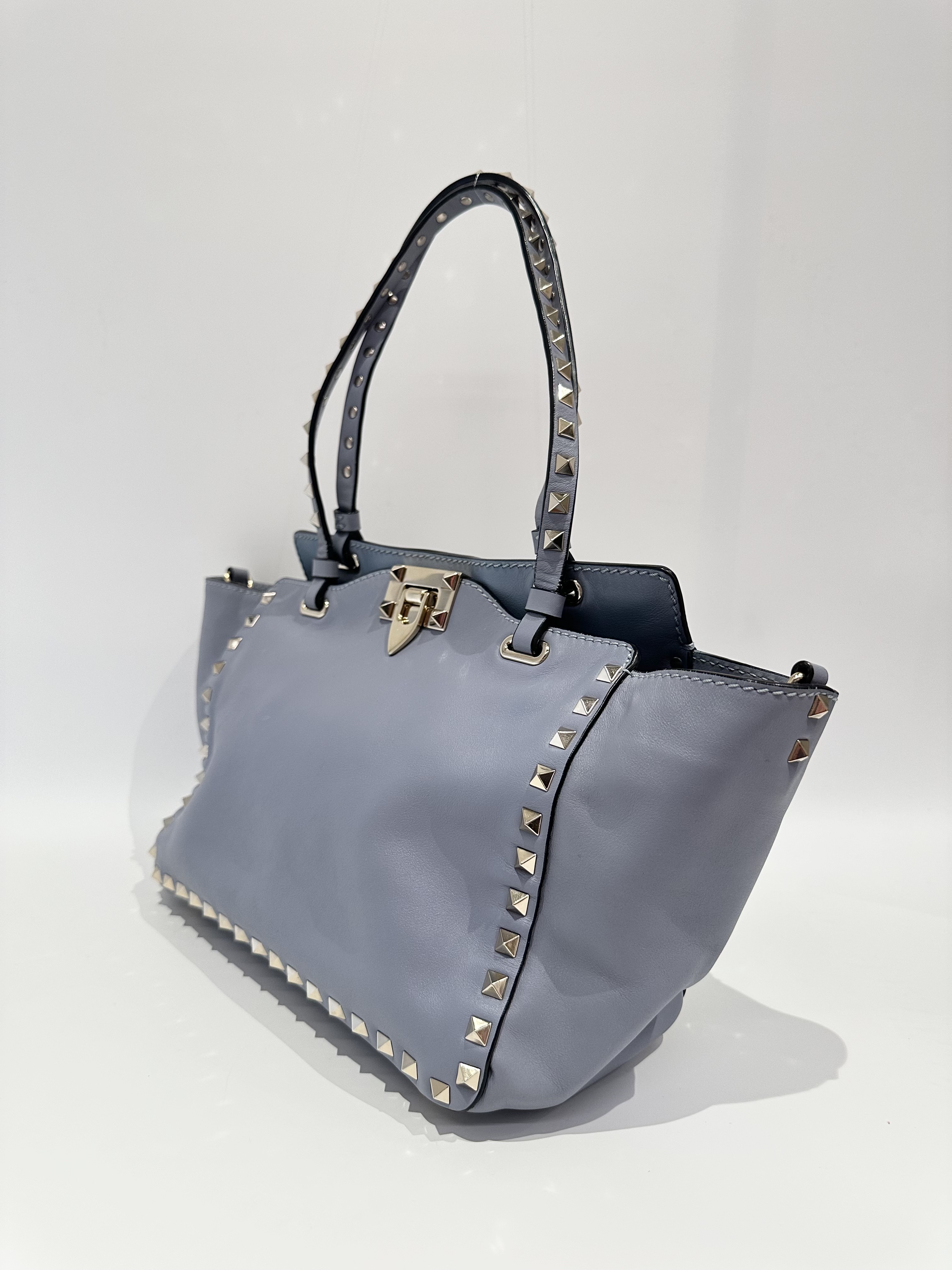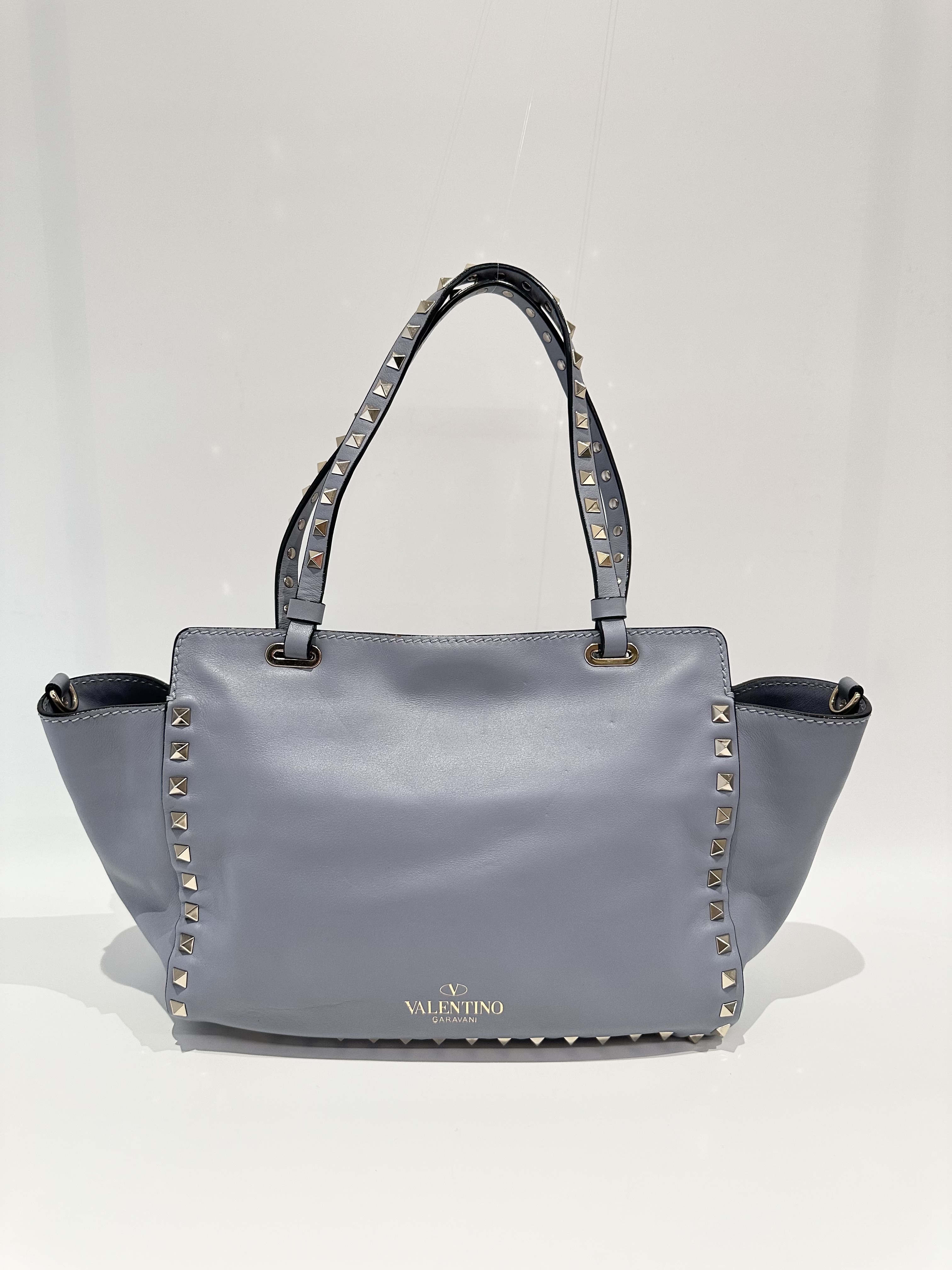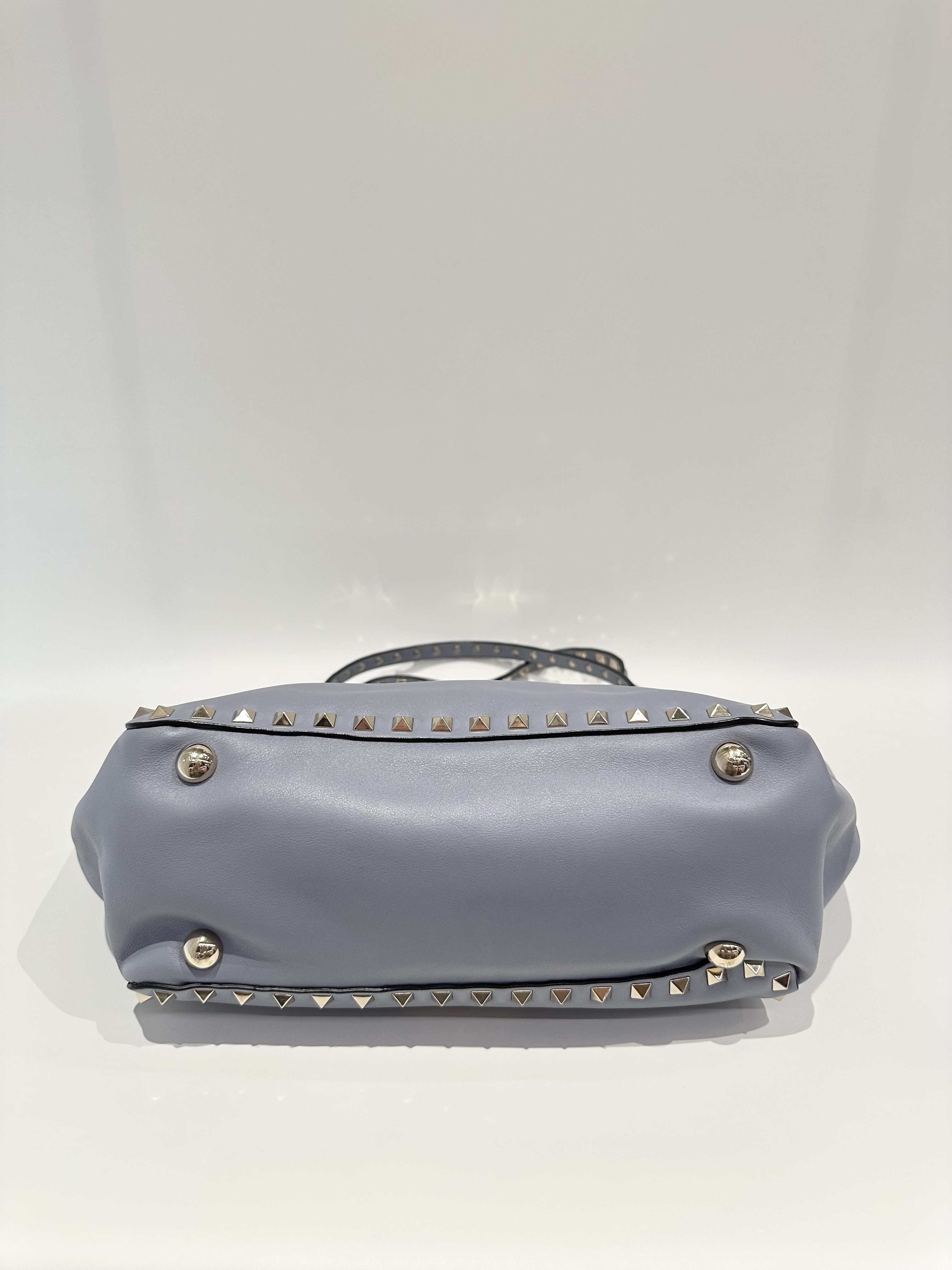 Valentino Blue Rockstud Leather Tote Bag With Strap