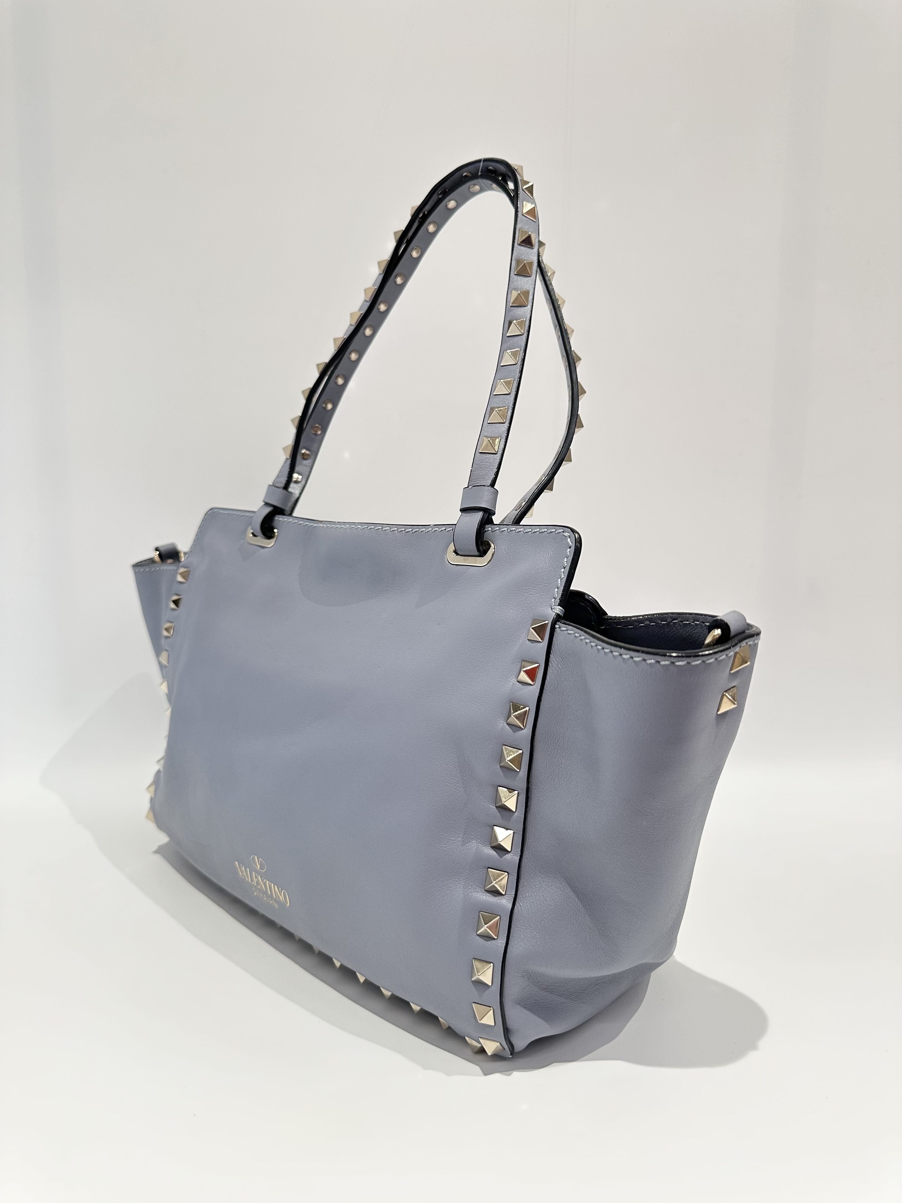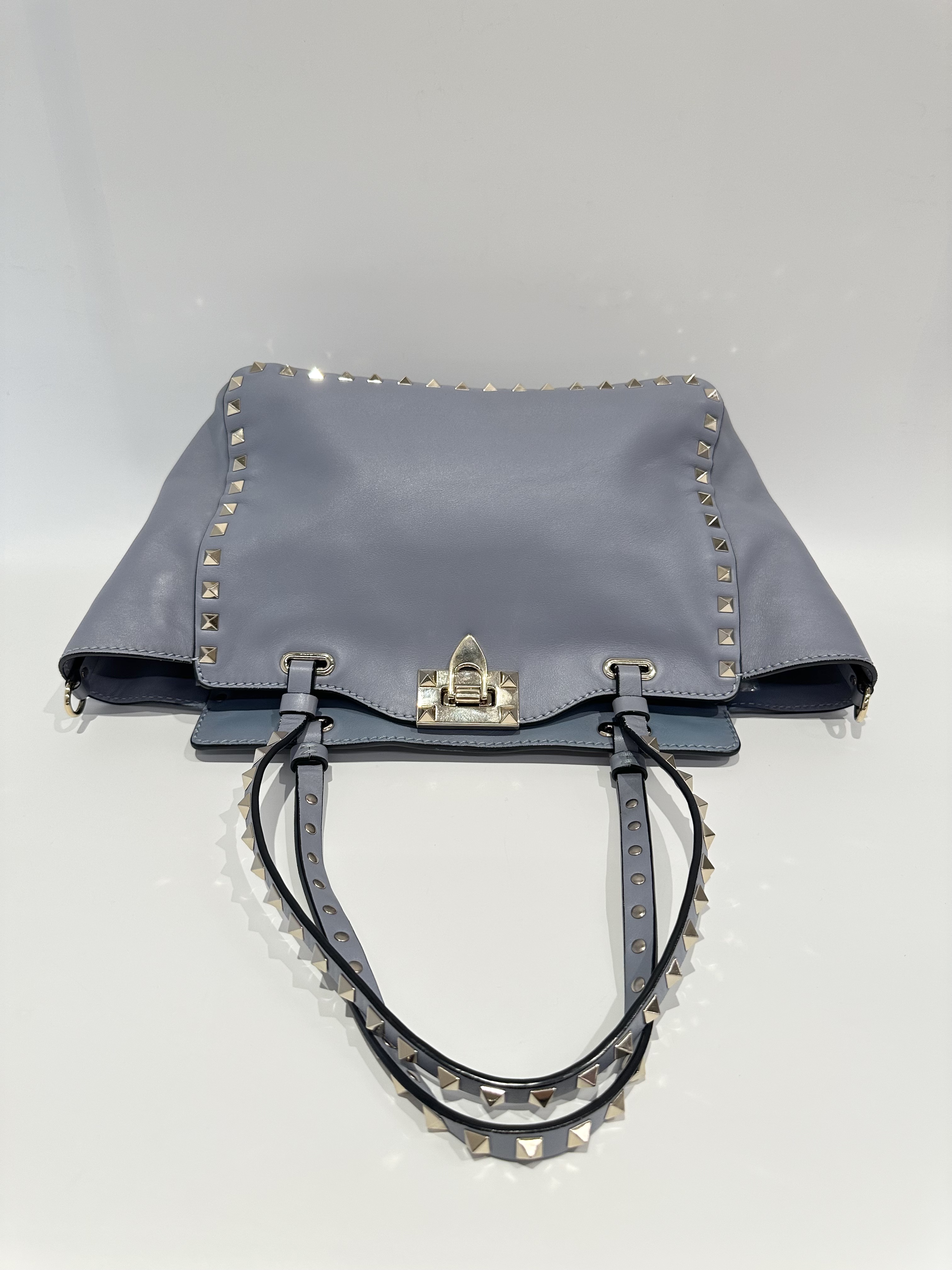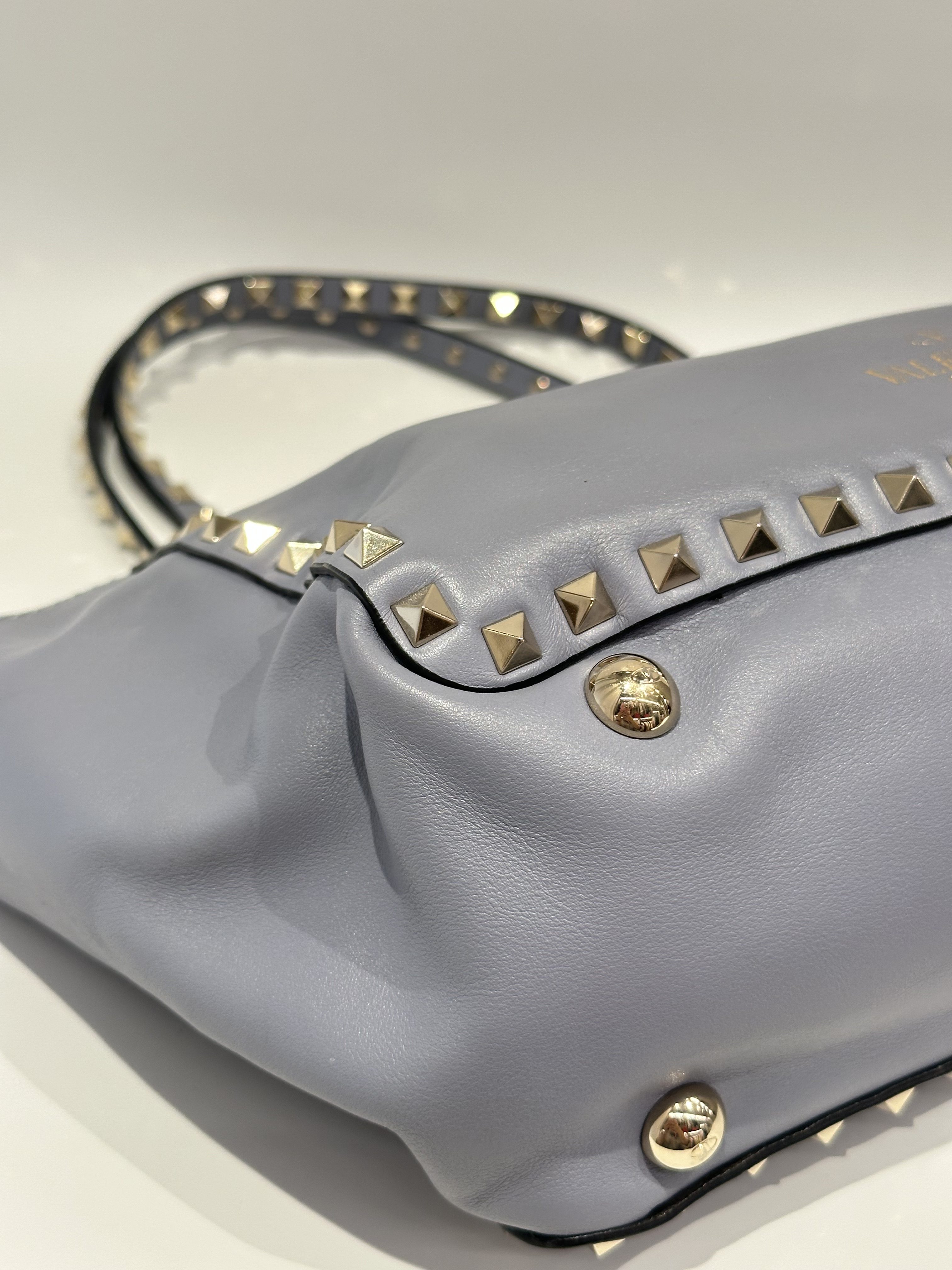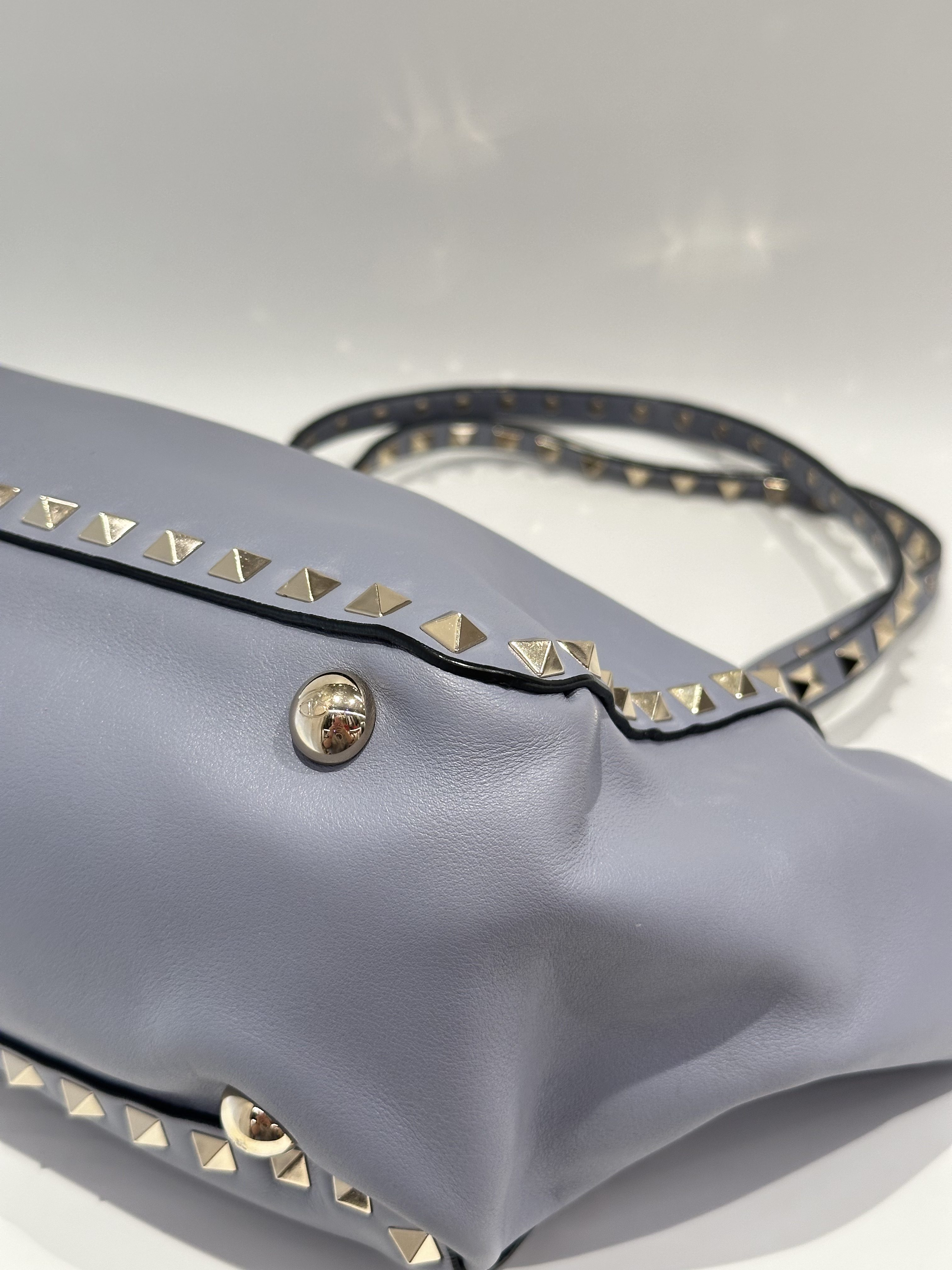 Valentino Blue Rockstud Leather Tote Bag With Strap