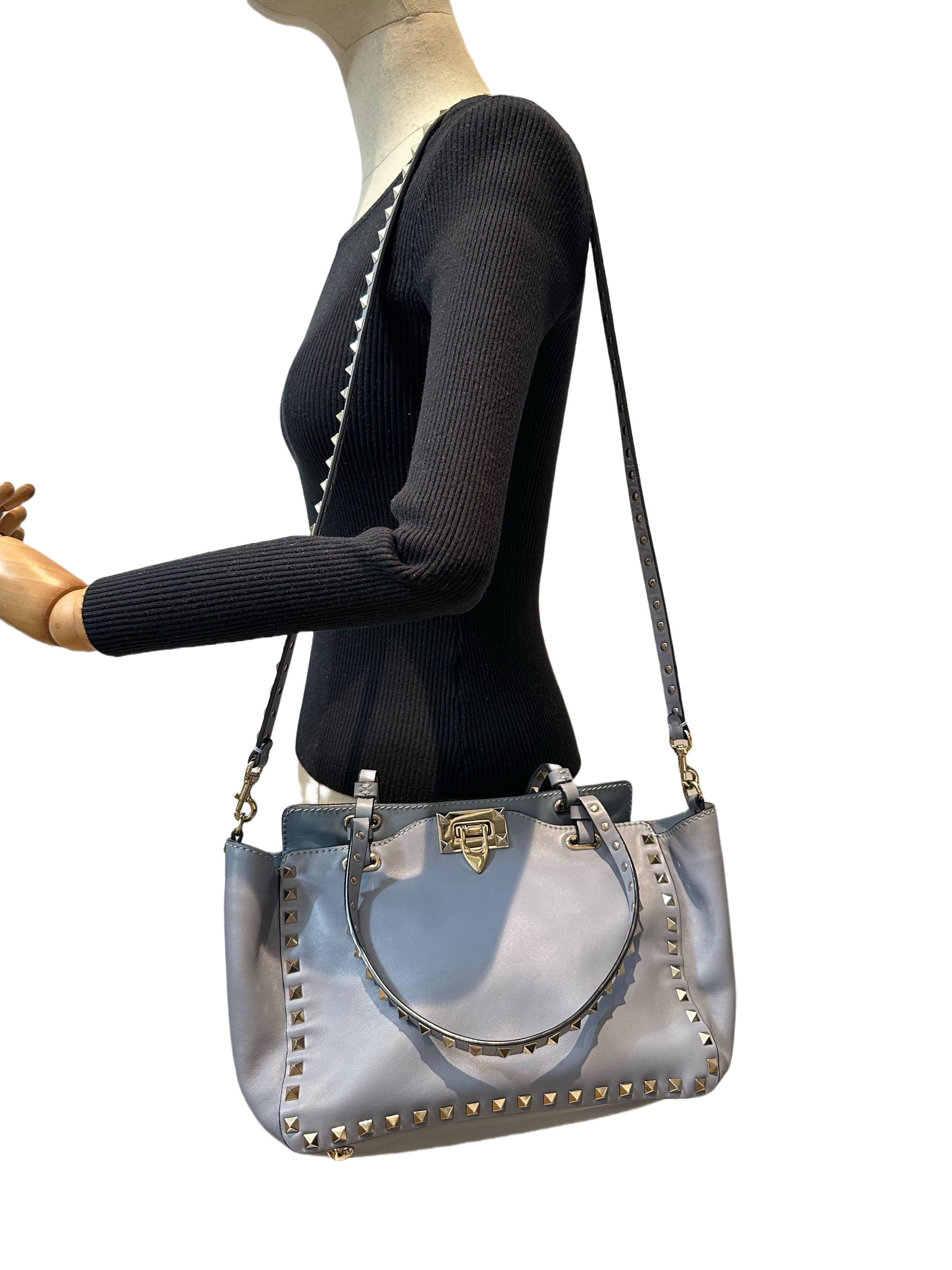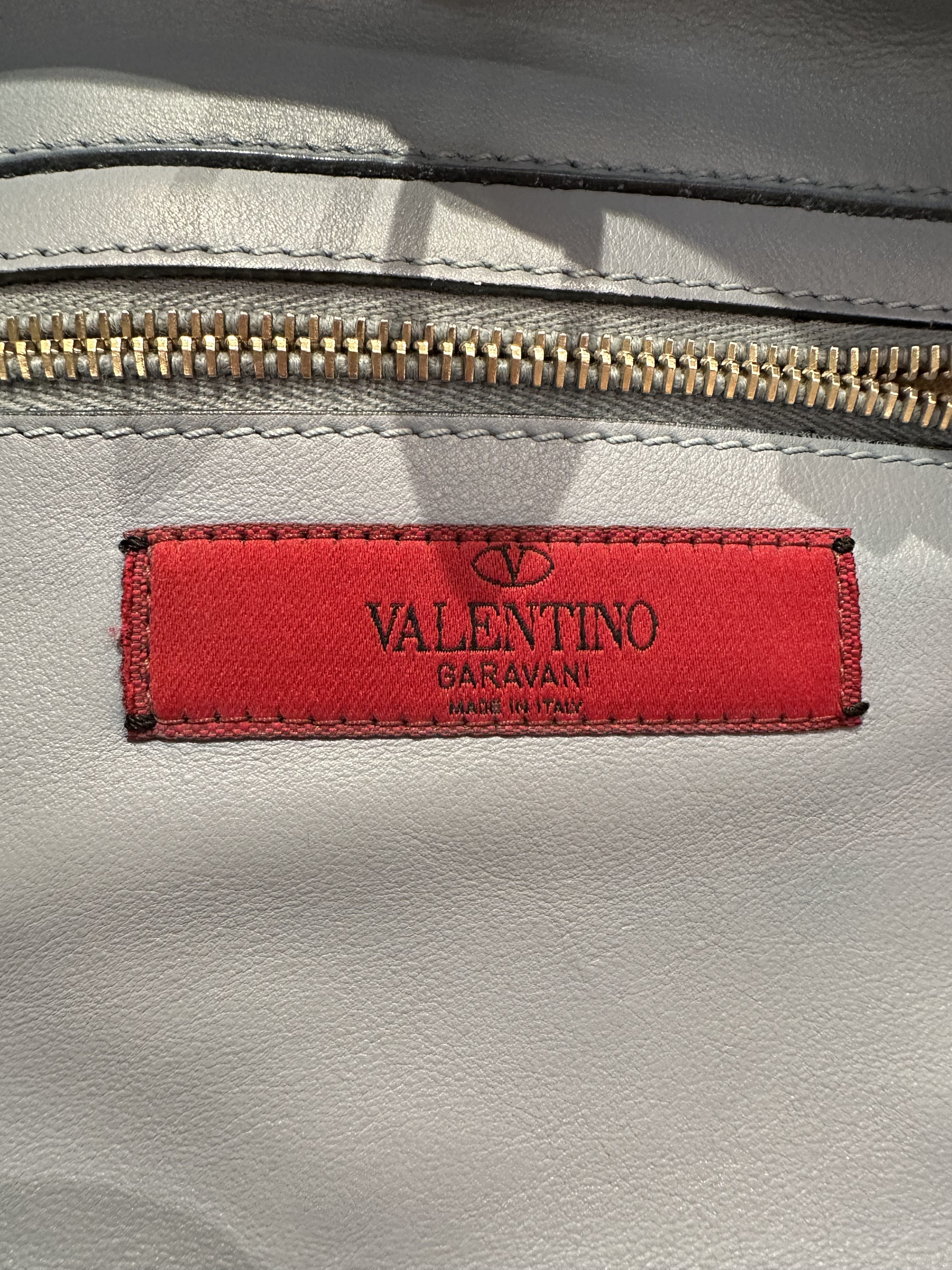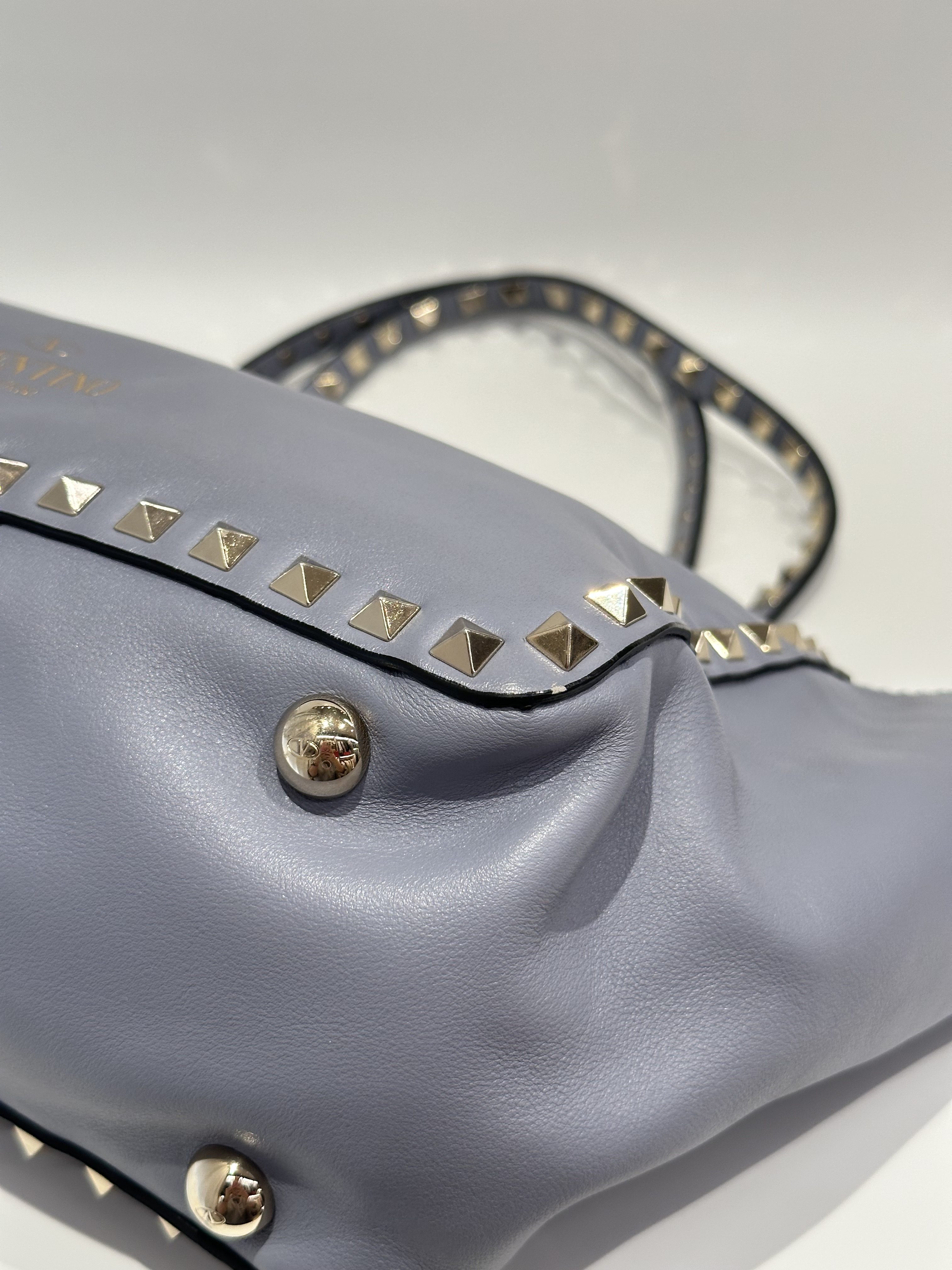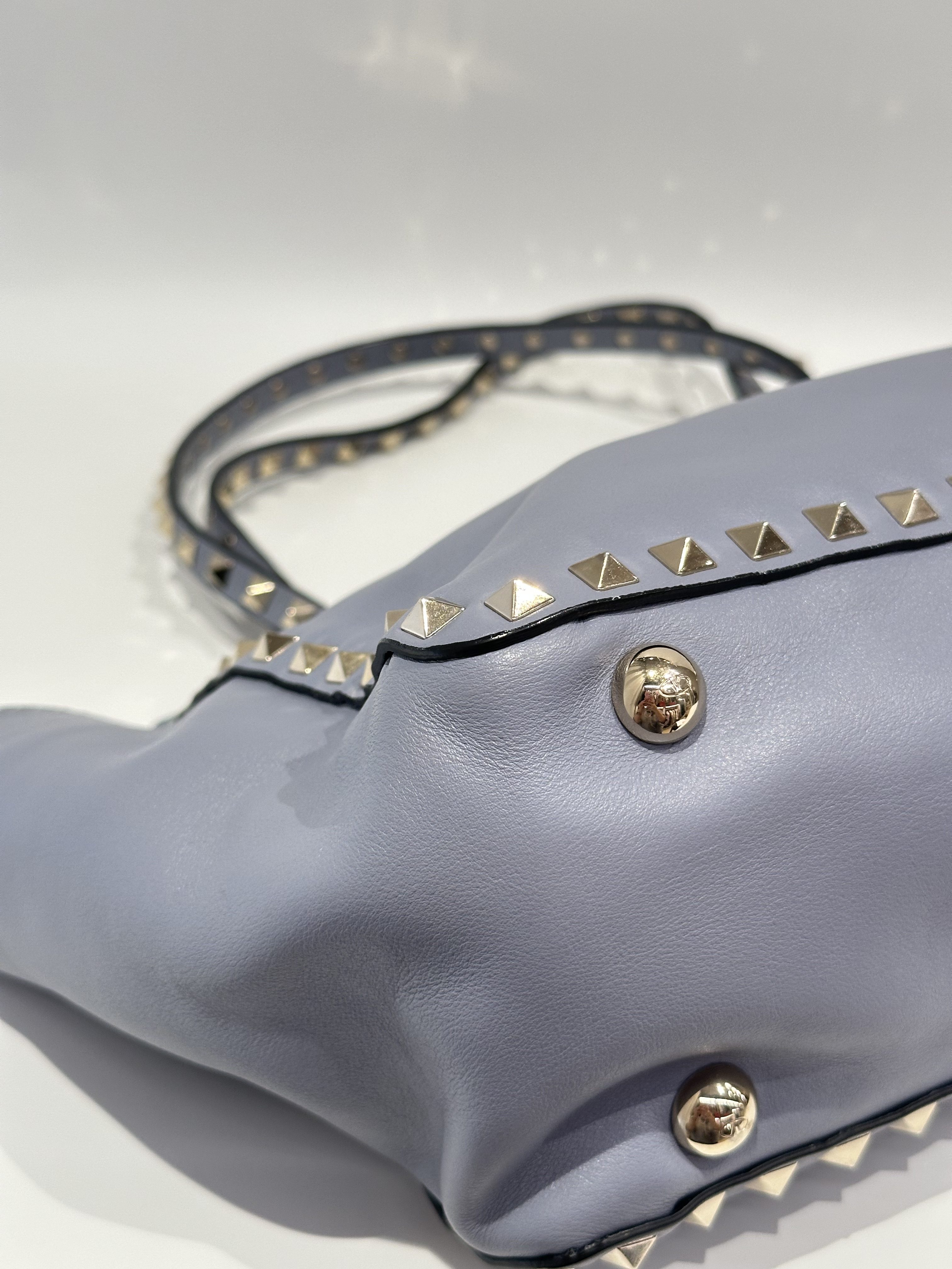 Valentino Blue Rockstud Leather Tote Bag With Strap