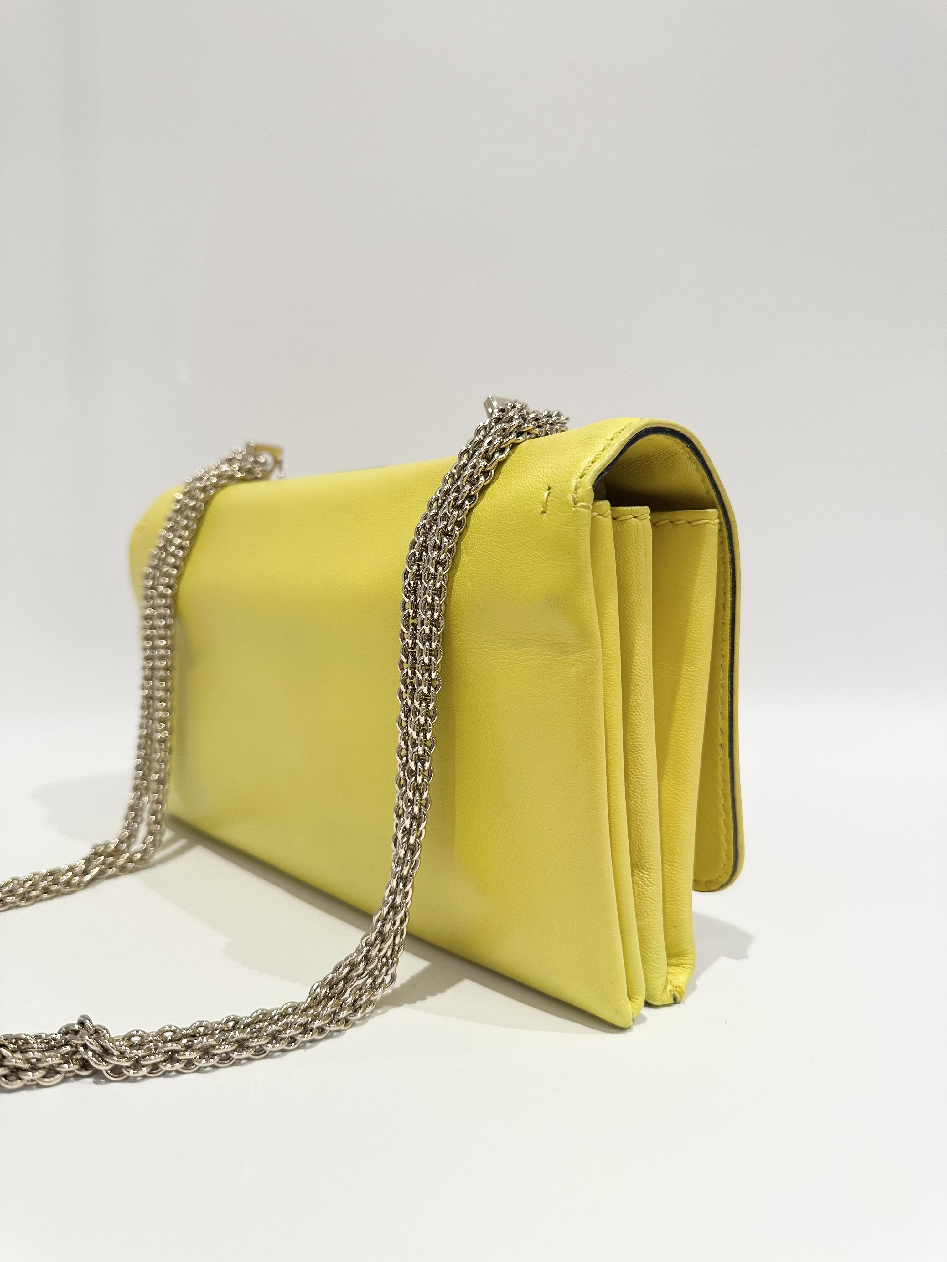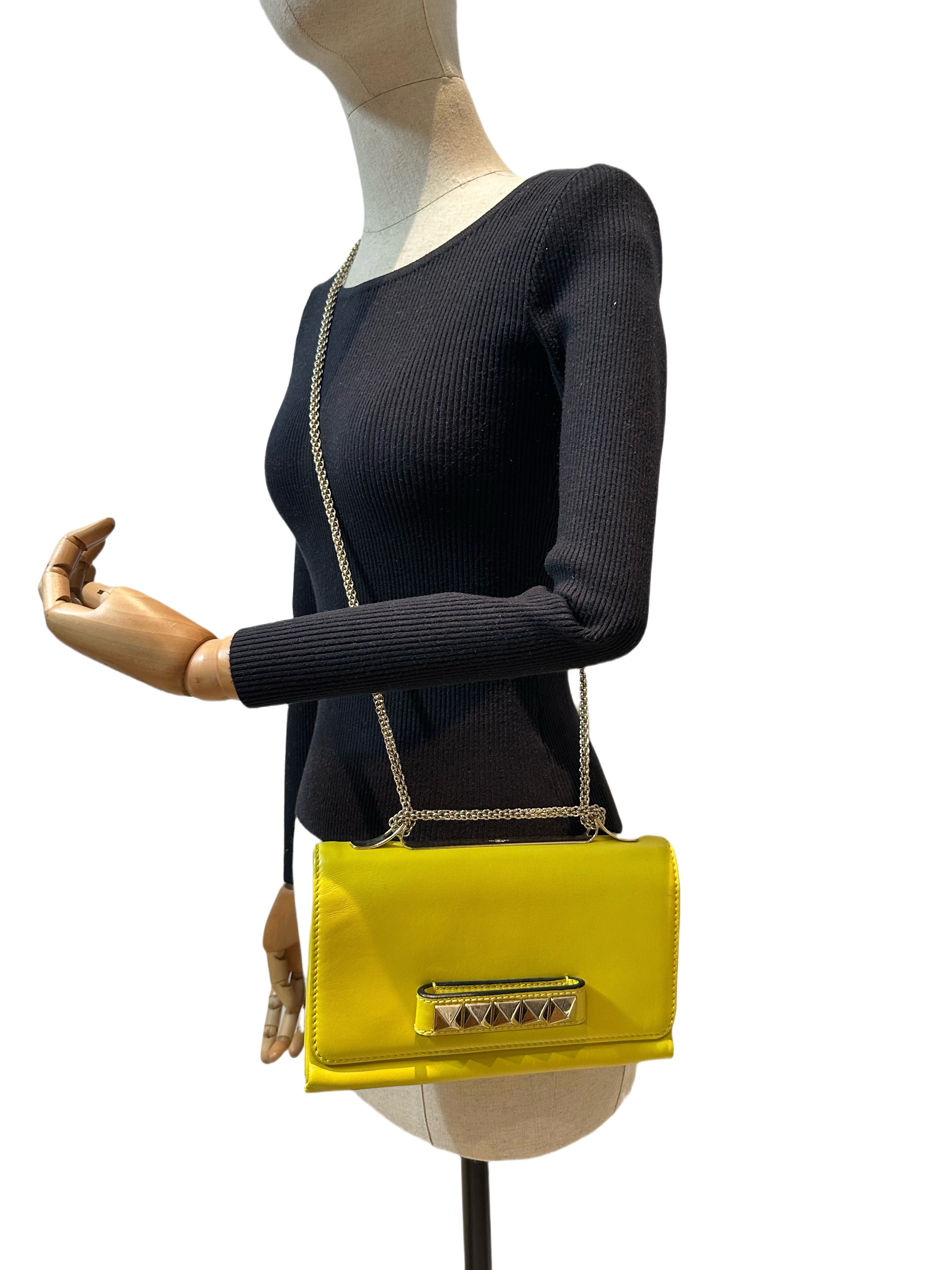 Valentino Lemon Yellow Vavavoom Leather Clutch Bag