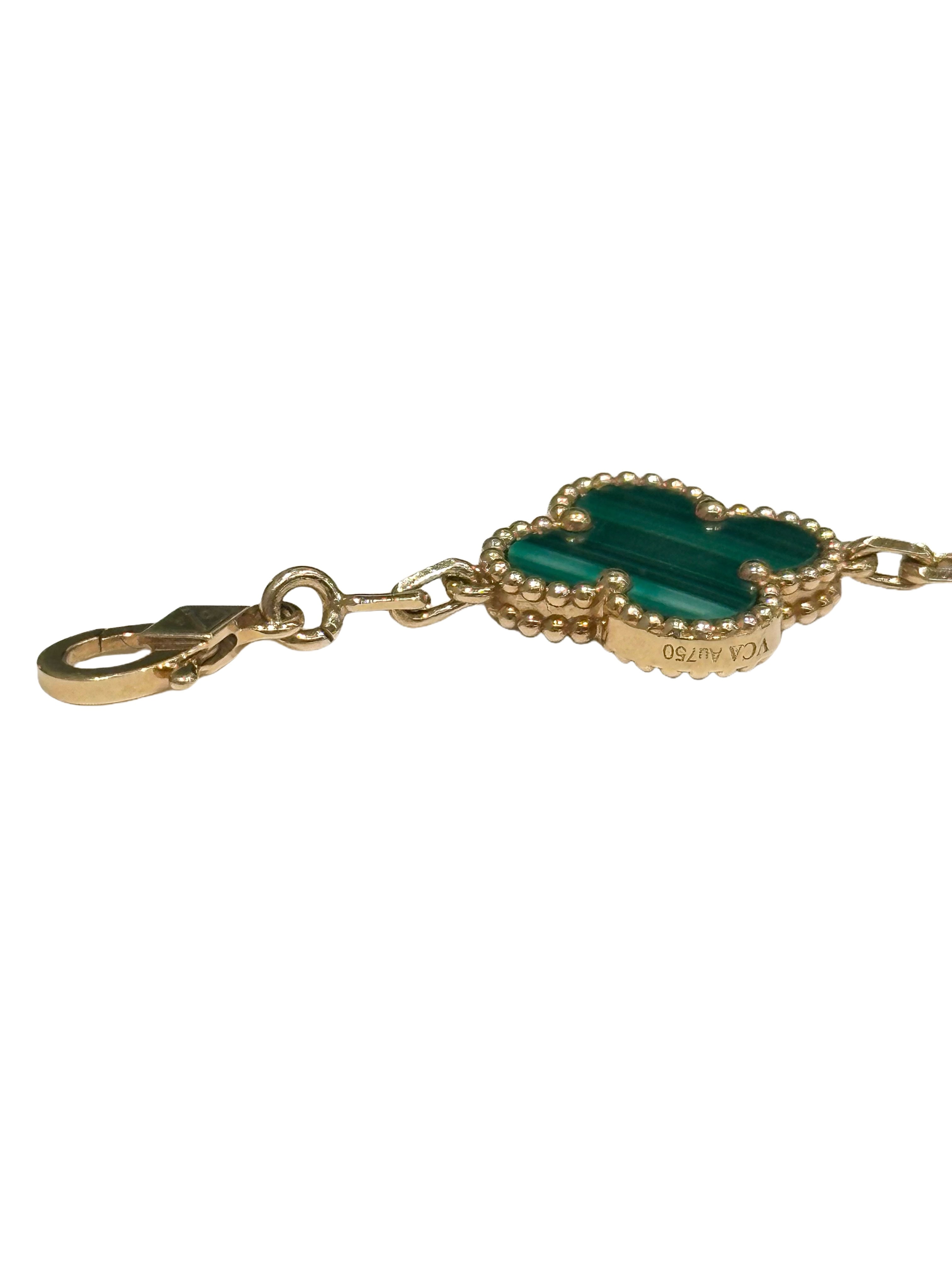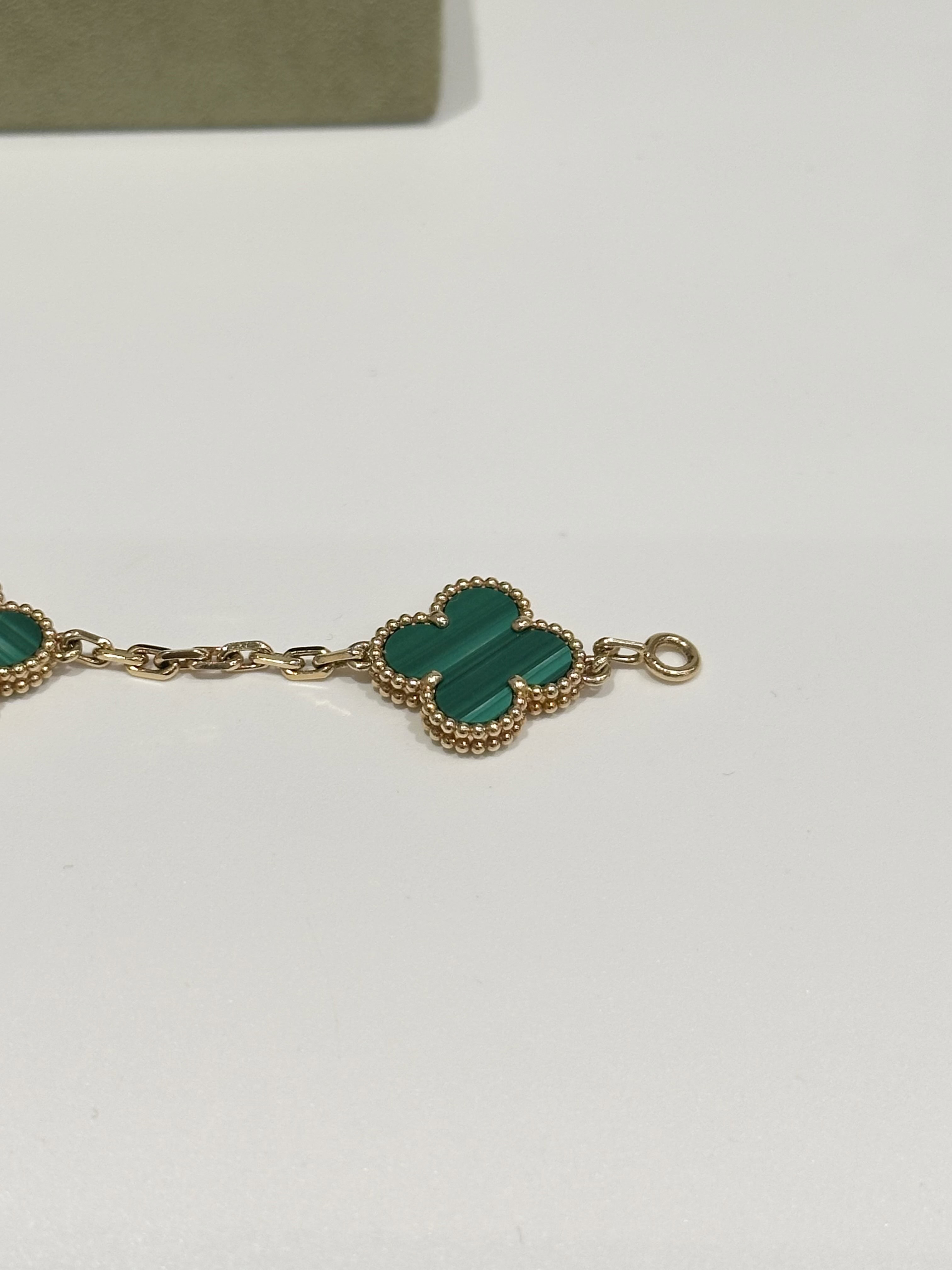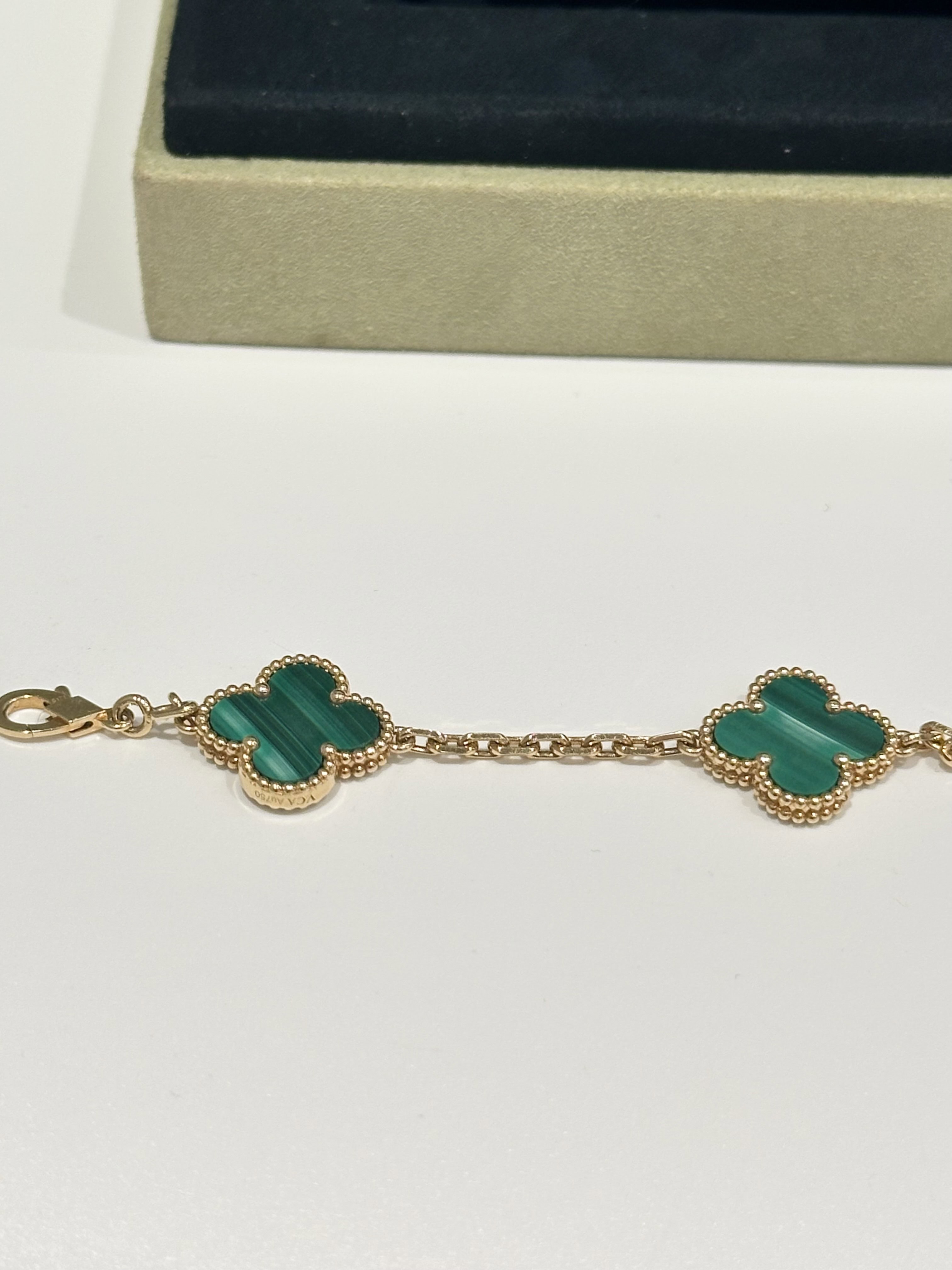 Vintage Alhambra bracelet, 5 motifs, 18K yellow gold, malachite.