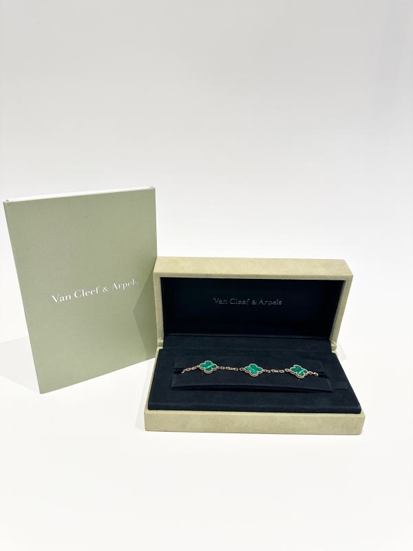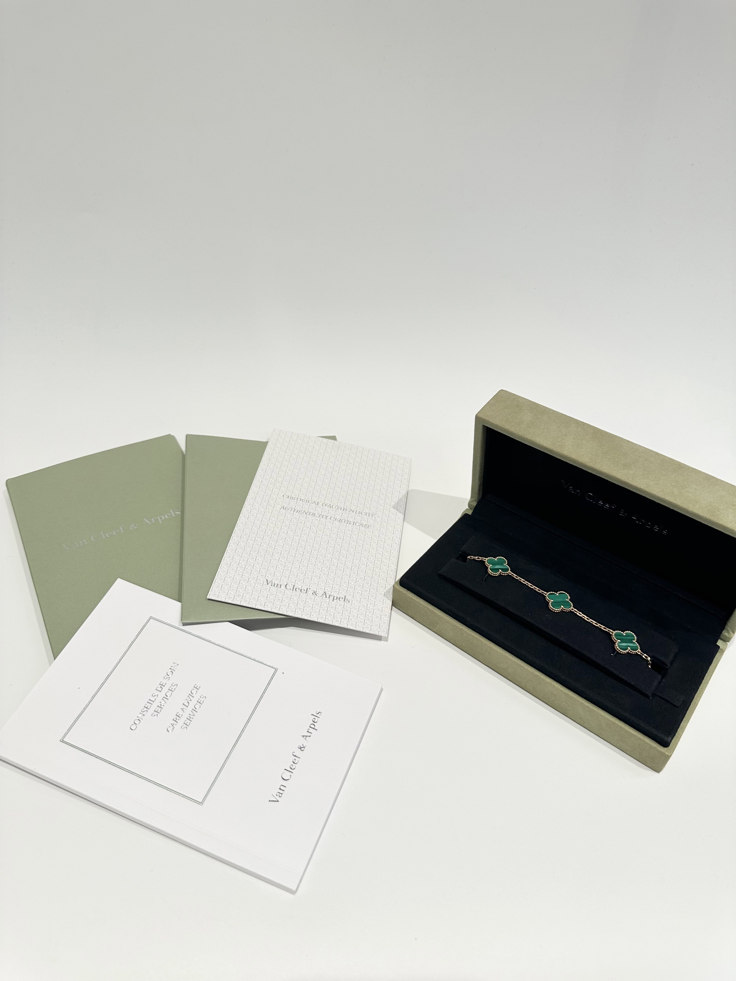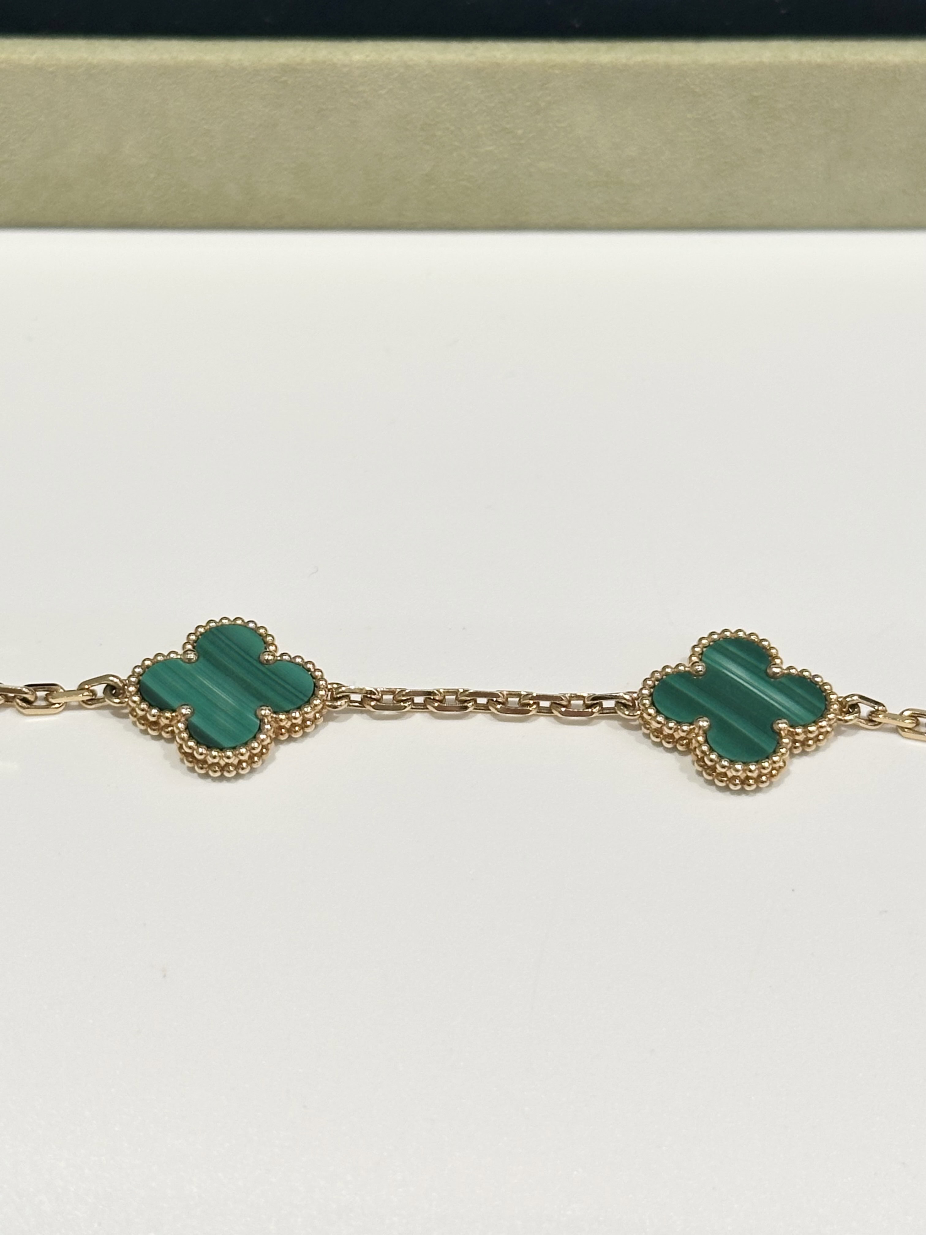 Vintage Alhambra bracelet, 5 motifs, 18K yellow gold, malachite.